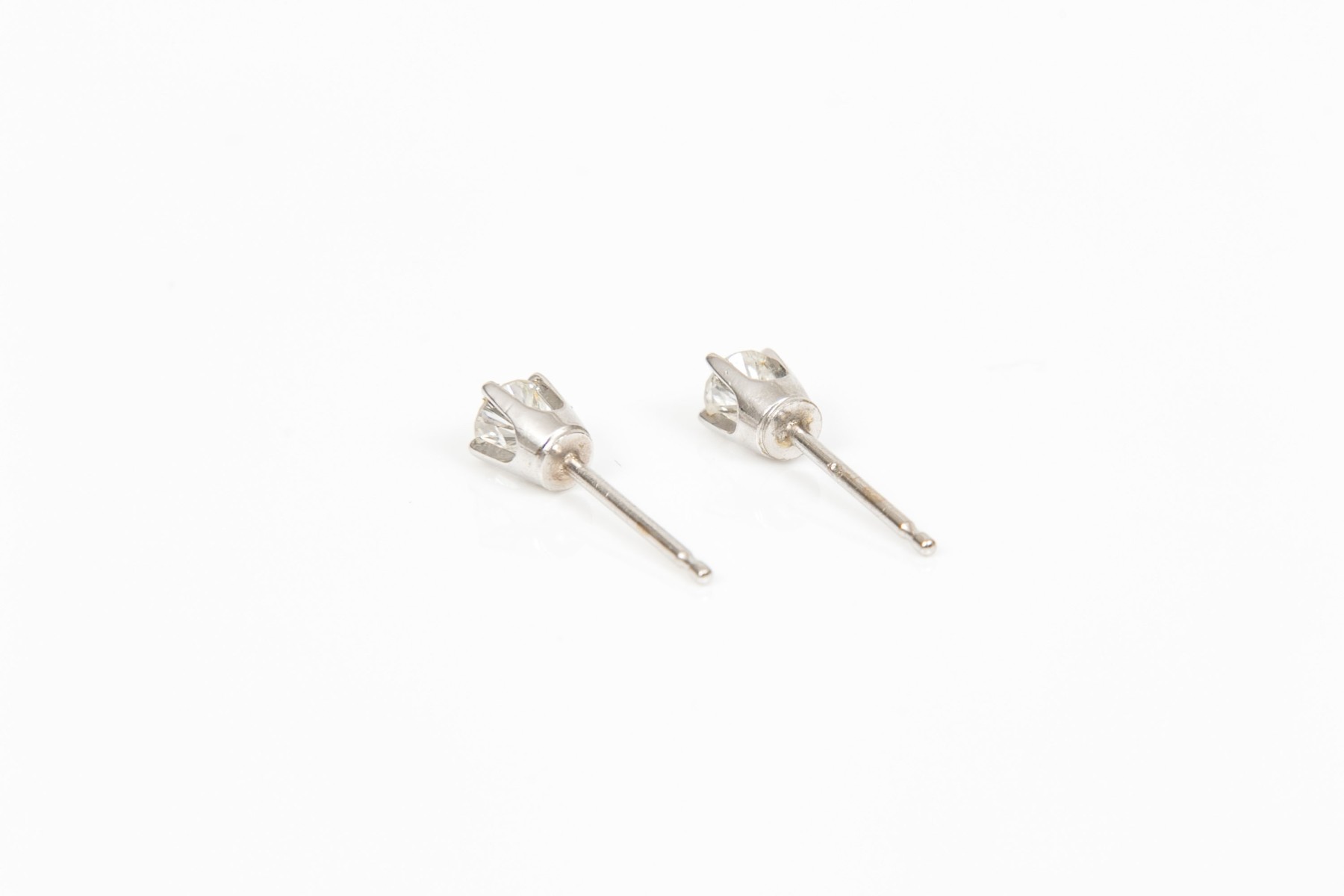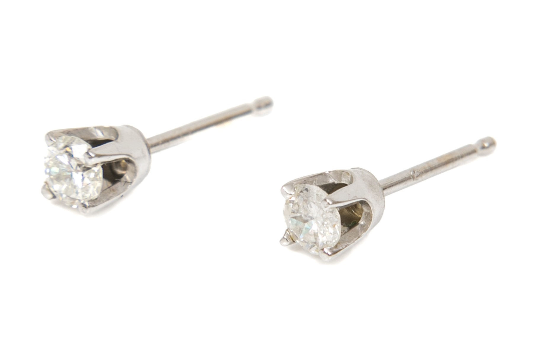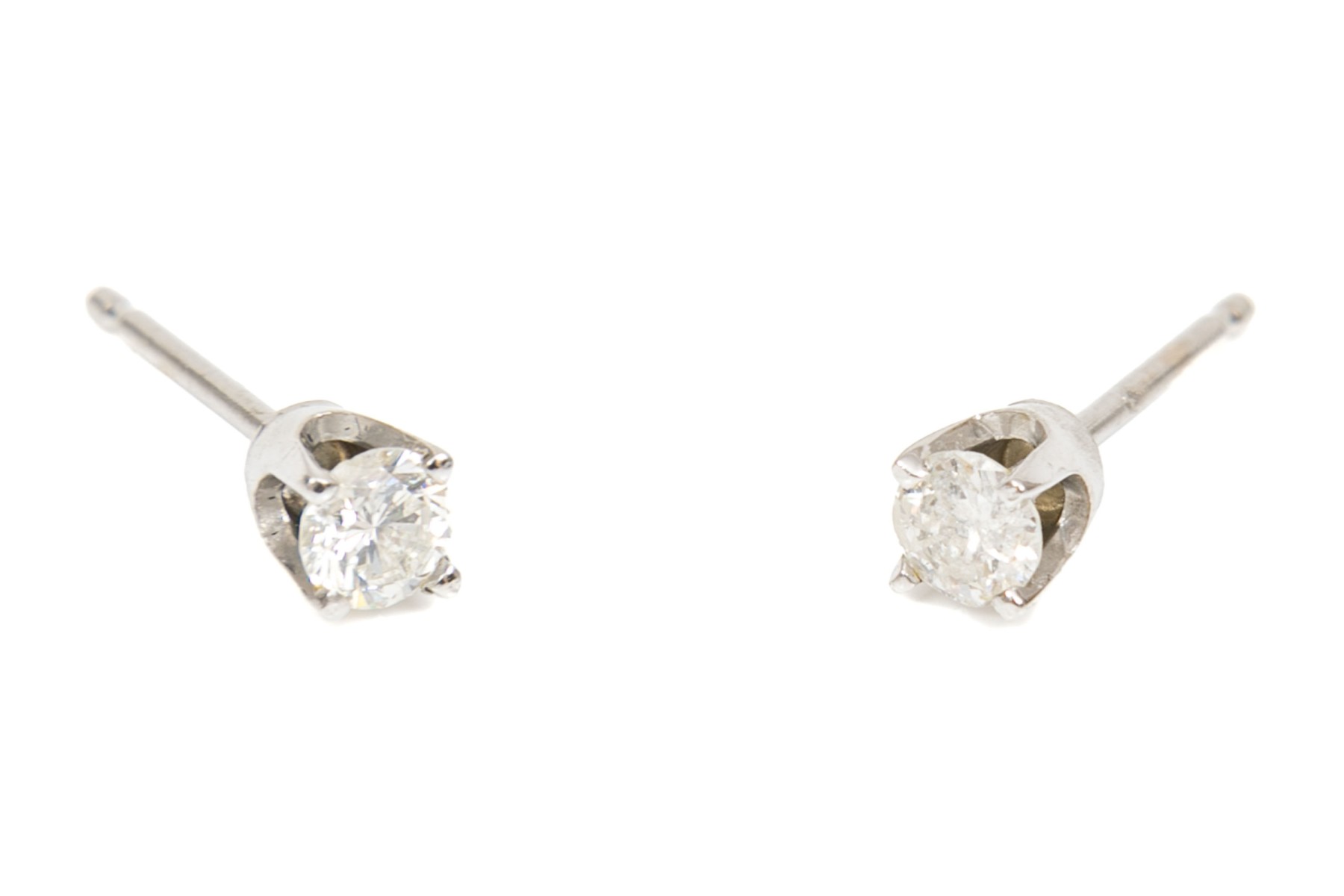 10k white gold simple diamond stud earrings, app. 0.20 TCW, finished with posts and missing clutches
