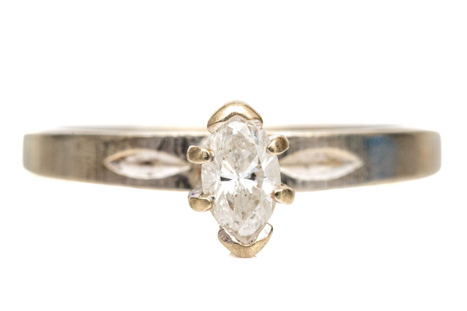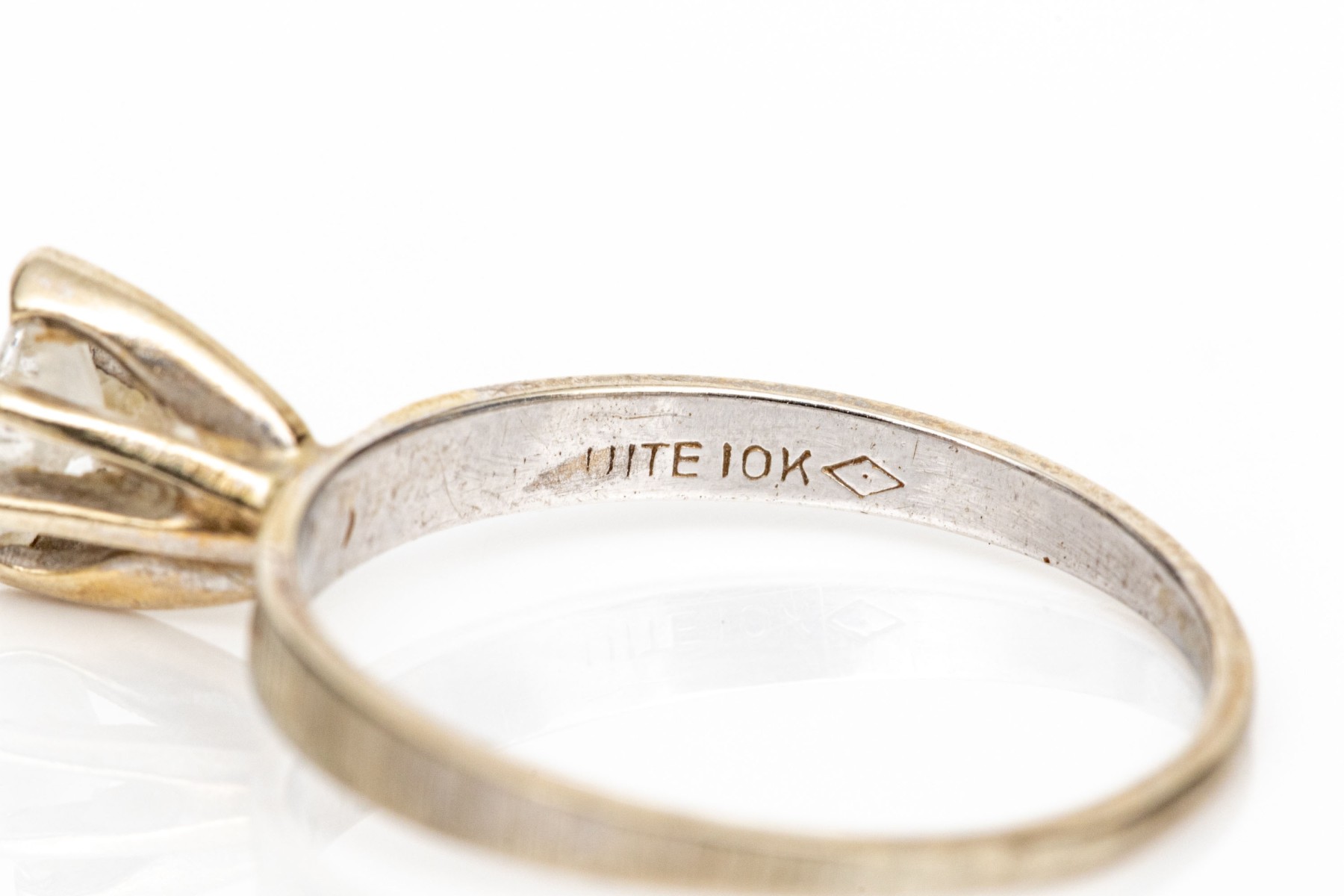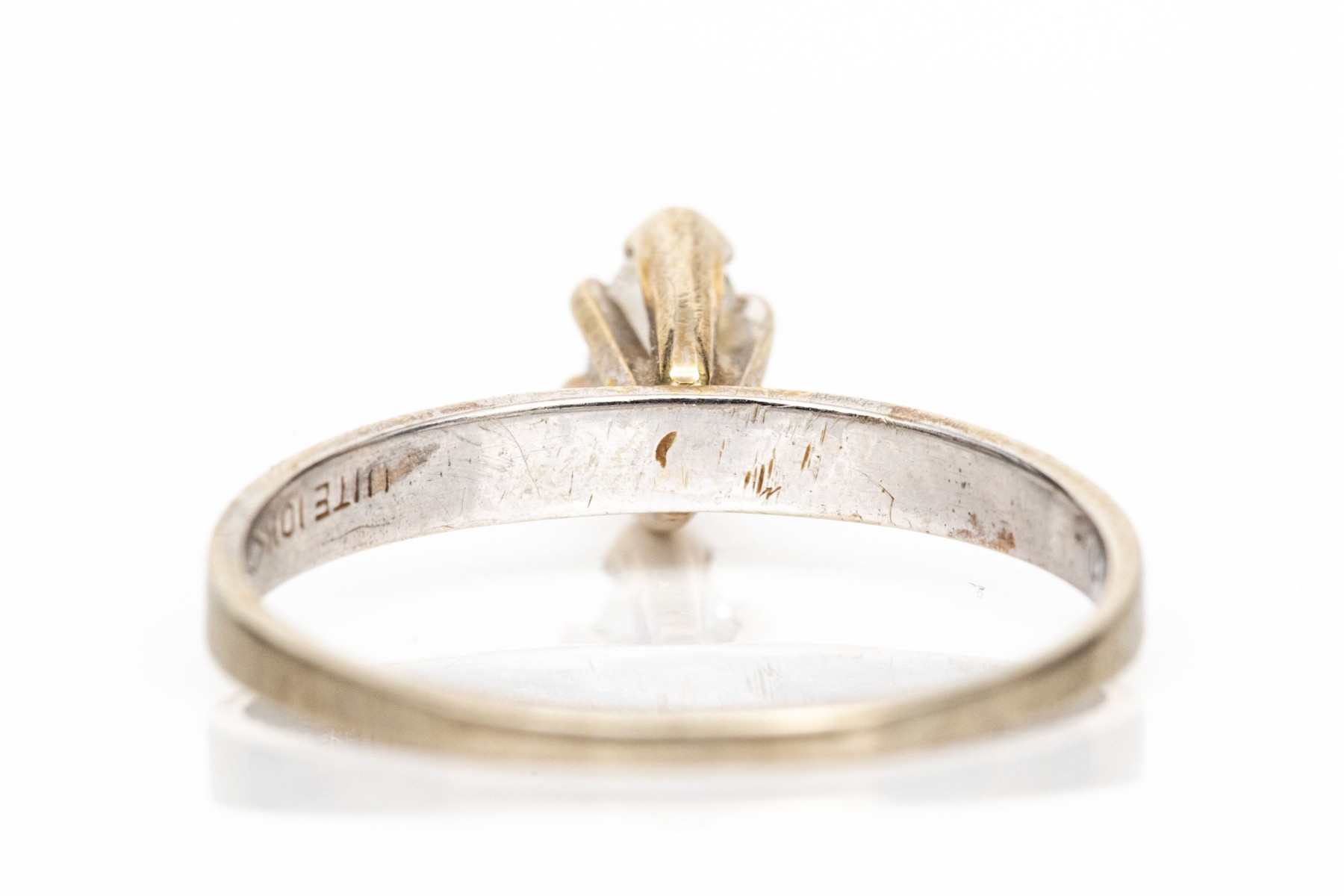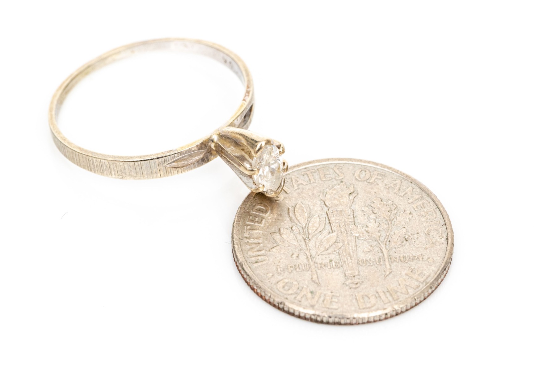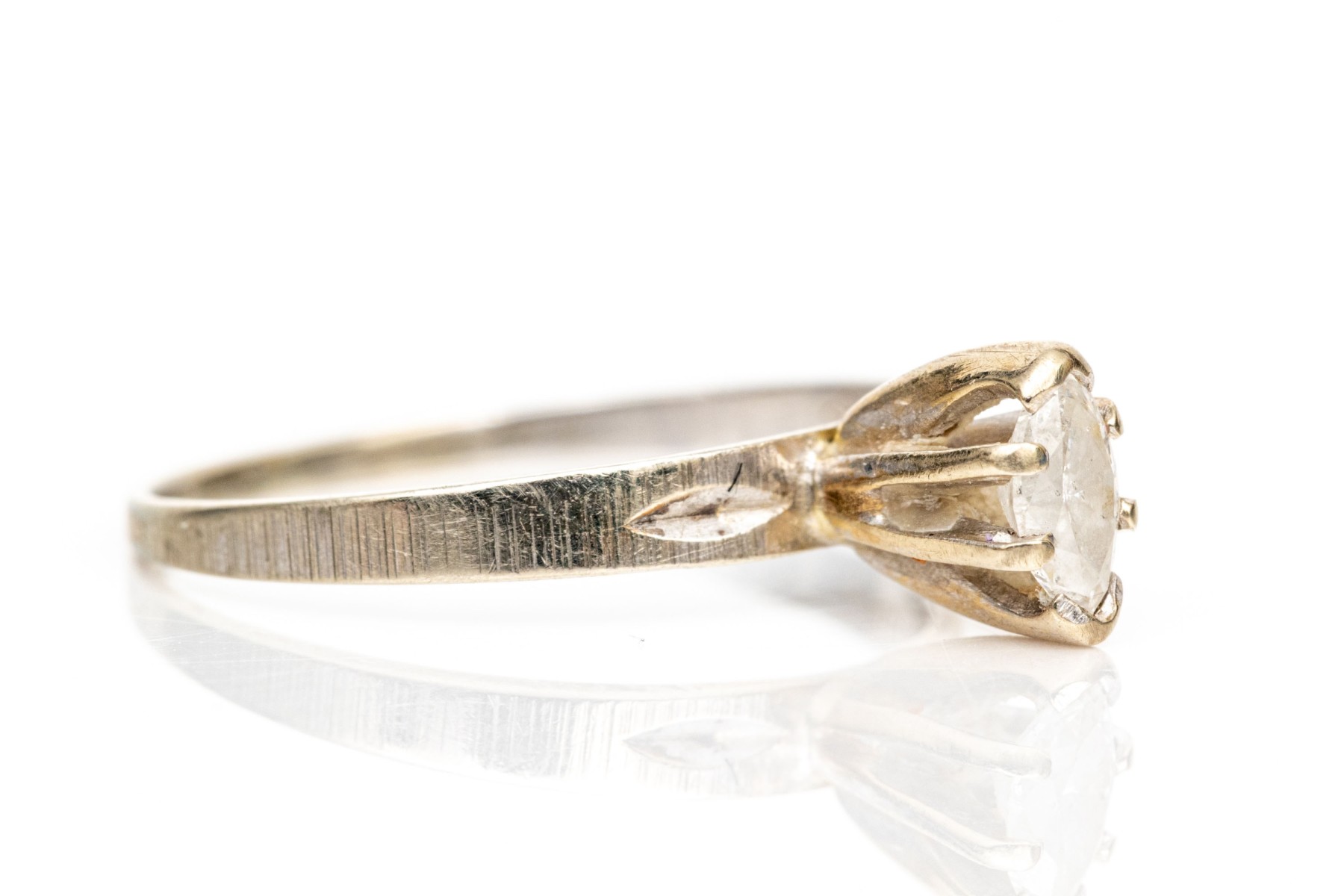 10k white gold simple marquise diamond solitaire ring, app. 0.15 CTS, size 5