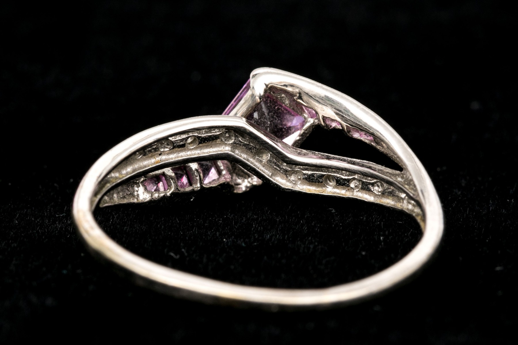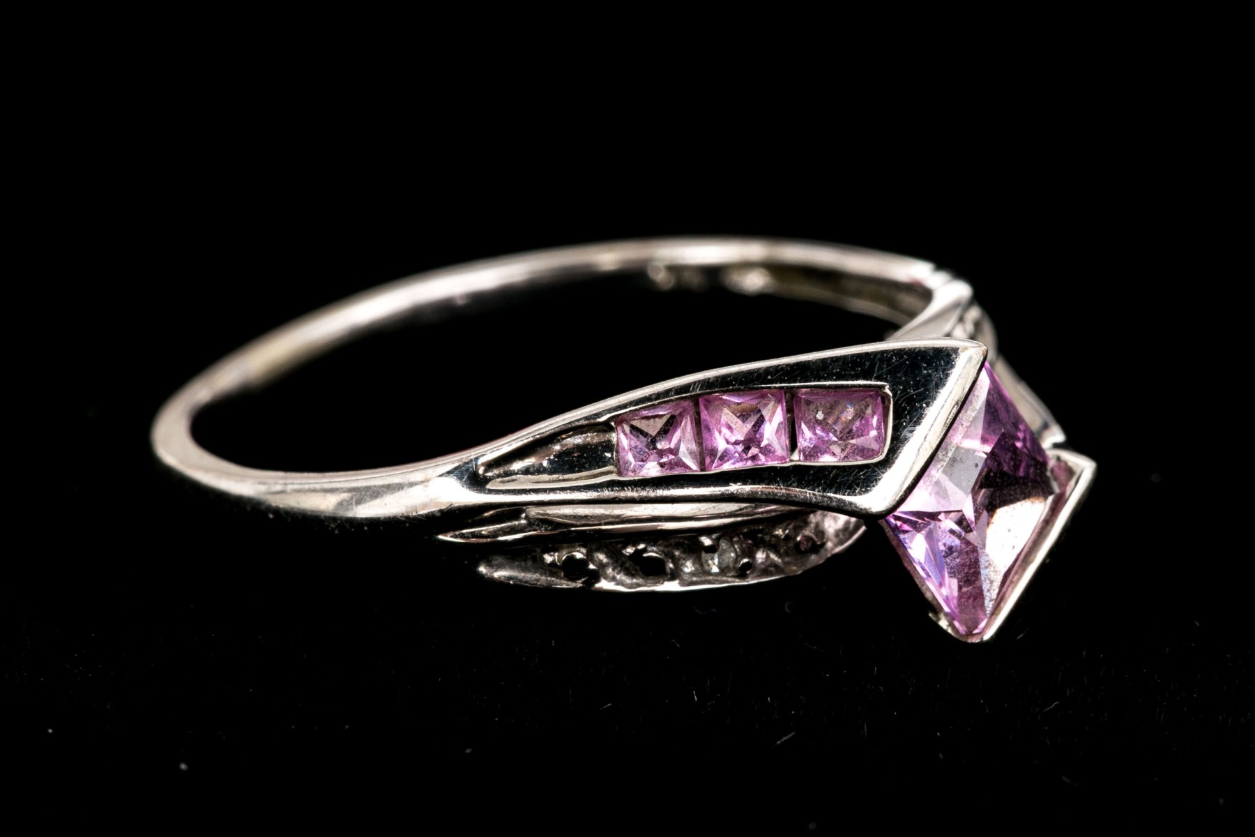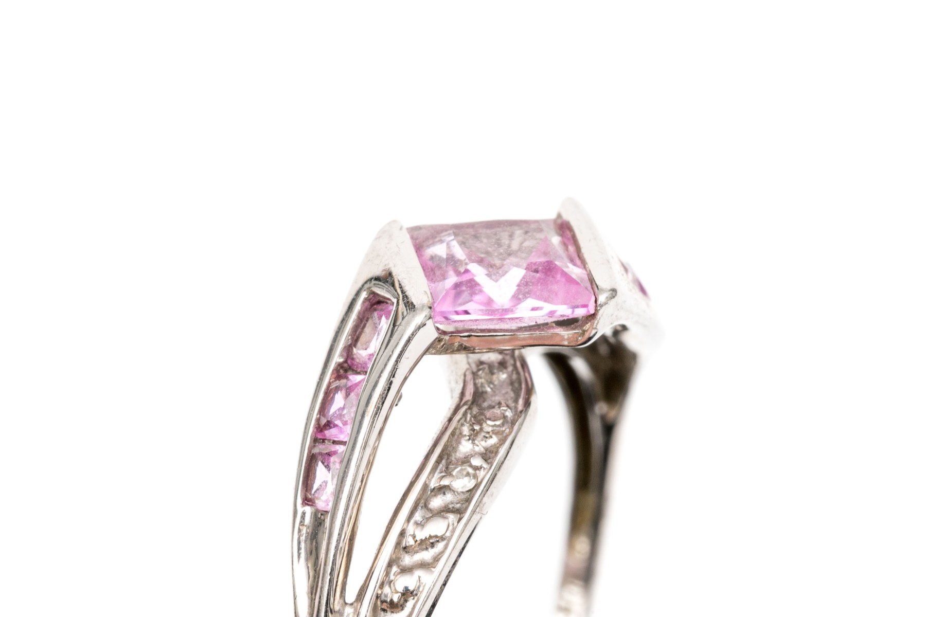10k white gold synthetic pink and white sapphire set bypass ring, size 8.25