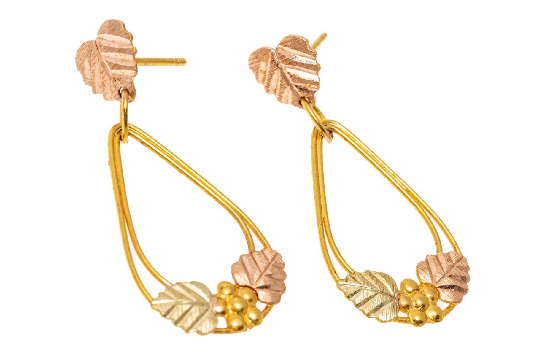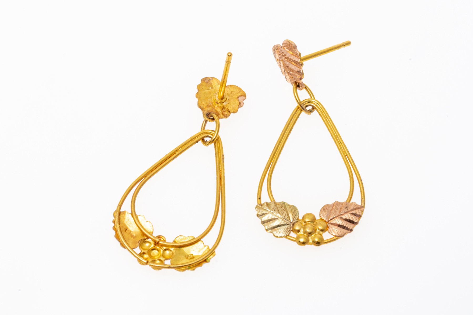 10k yellow and rose gold drop pendant earrings with 14k clutches