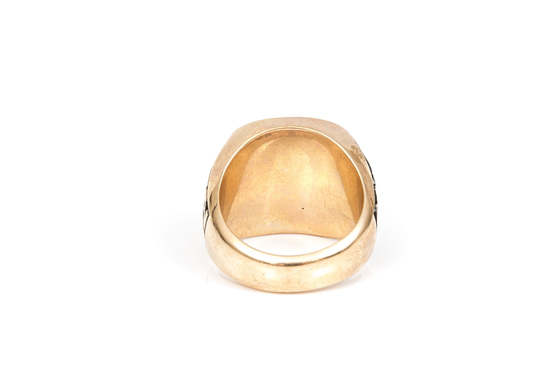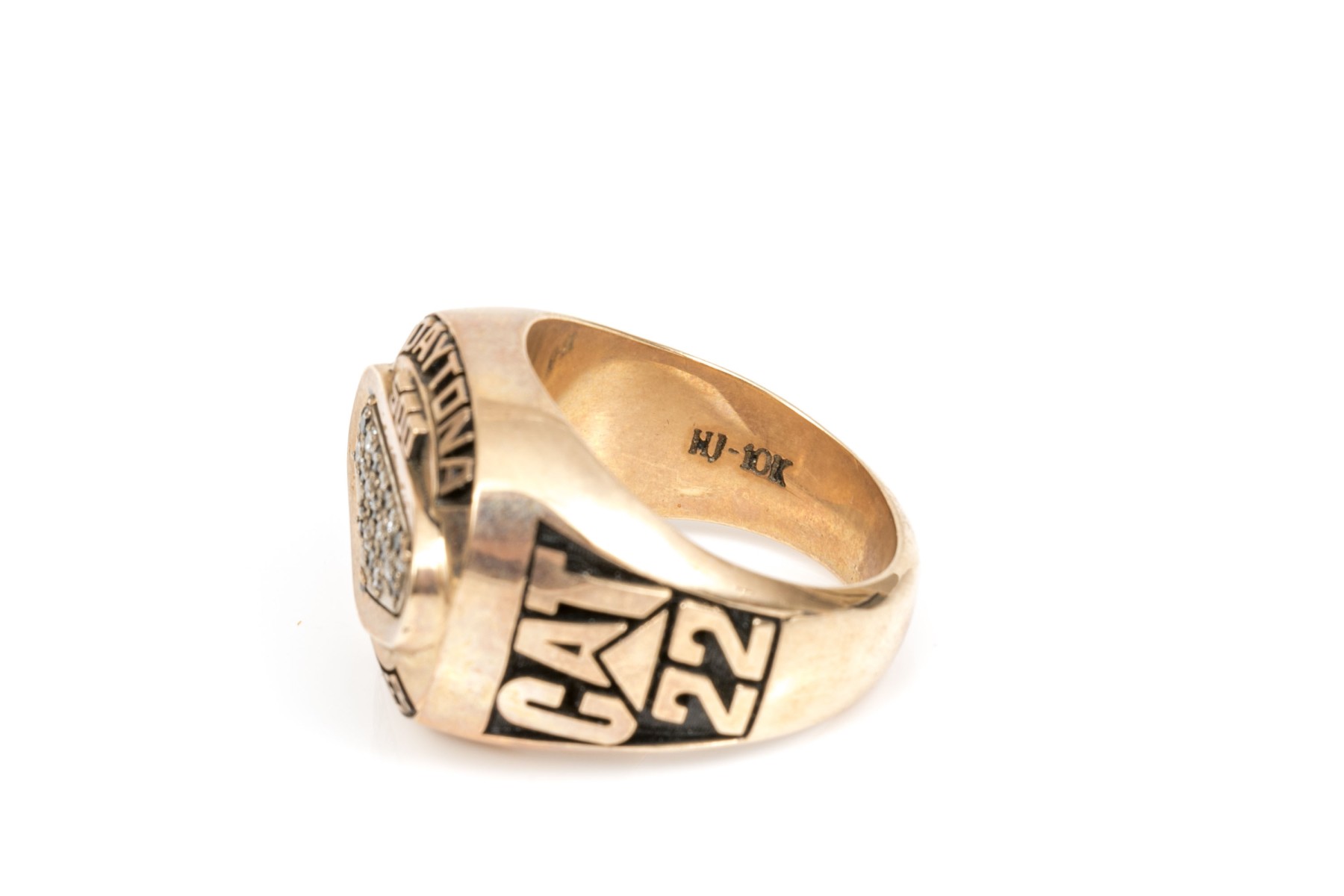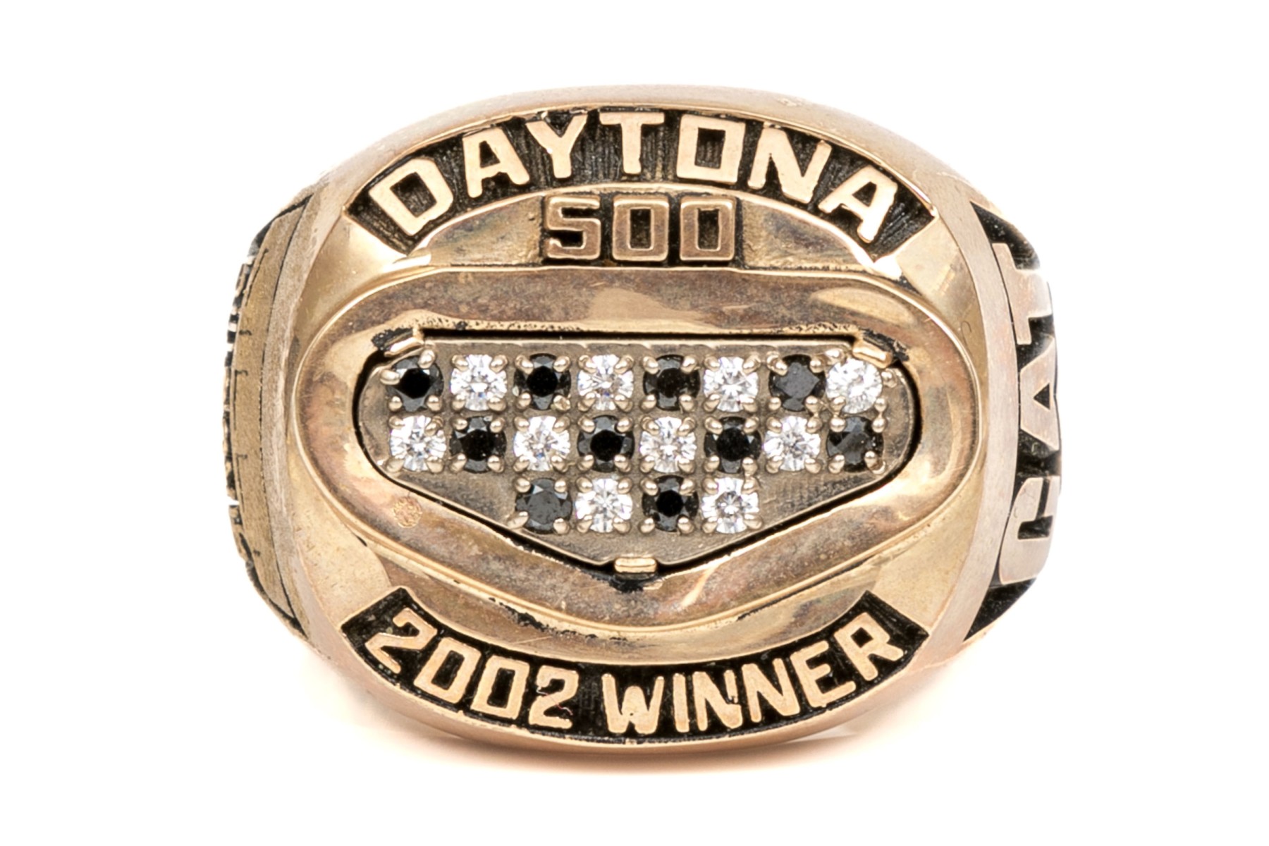 10k yellow gold fabulous Daytona 500 2002 black and white diamond winners ring, size 12.5, for Bill Davis Racing, app. 0.20 TCW, prong set