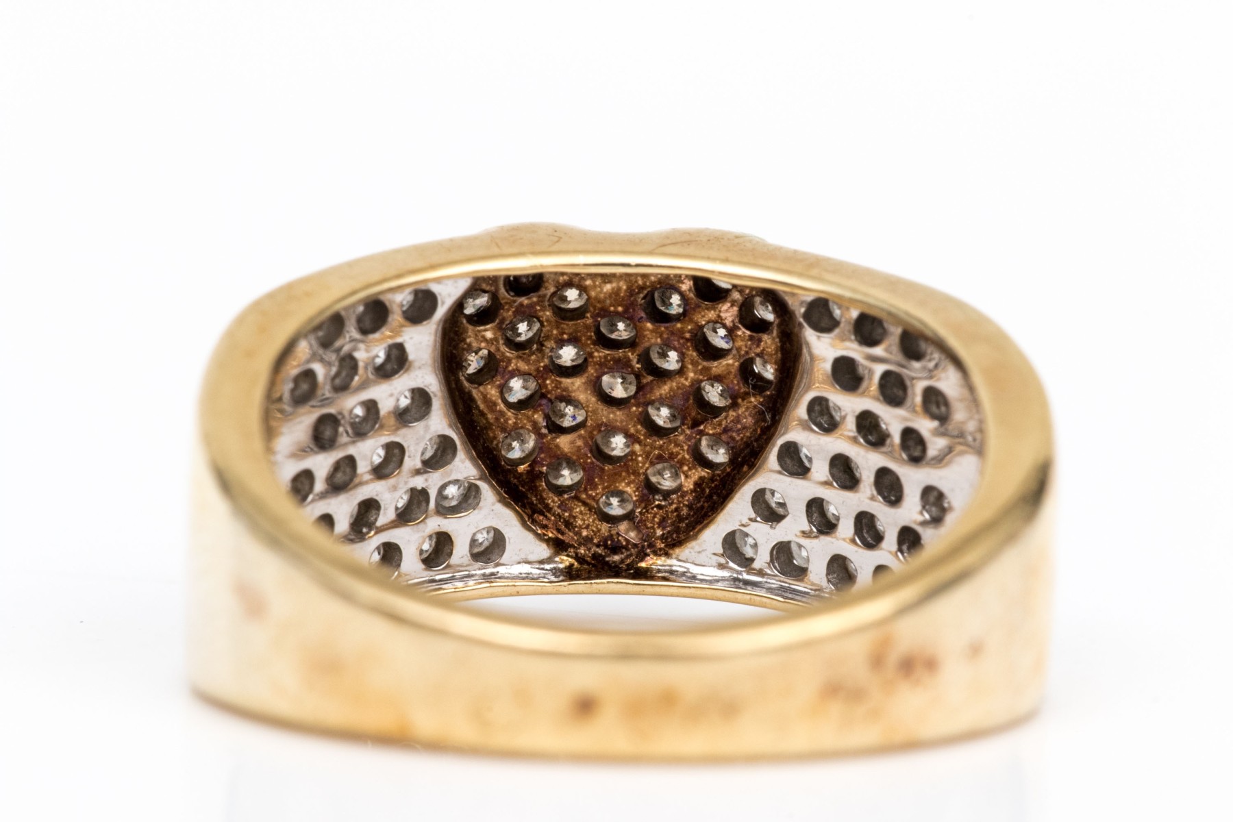 10k yellow gold fun brown and white pave diamond heart motif ring, app. 0.98 TCW, size 6.75+