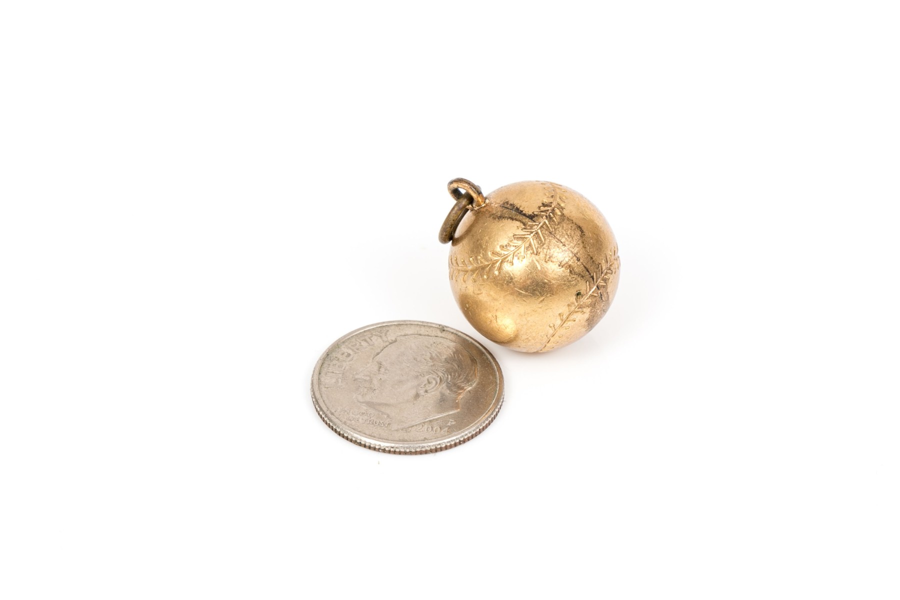 10k yellow gold fun chased large 15.9mm baseball motif charm pendant, finished with a jump ring style bale