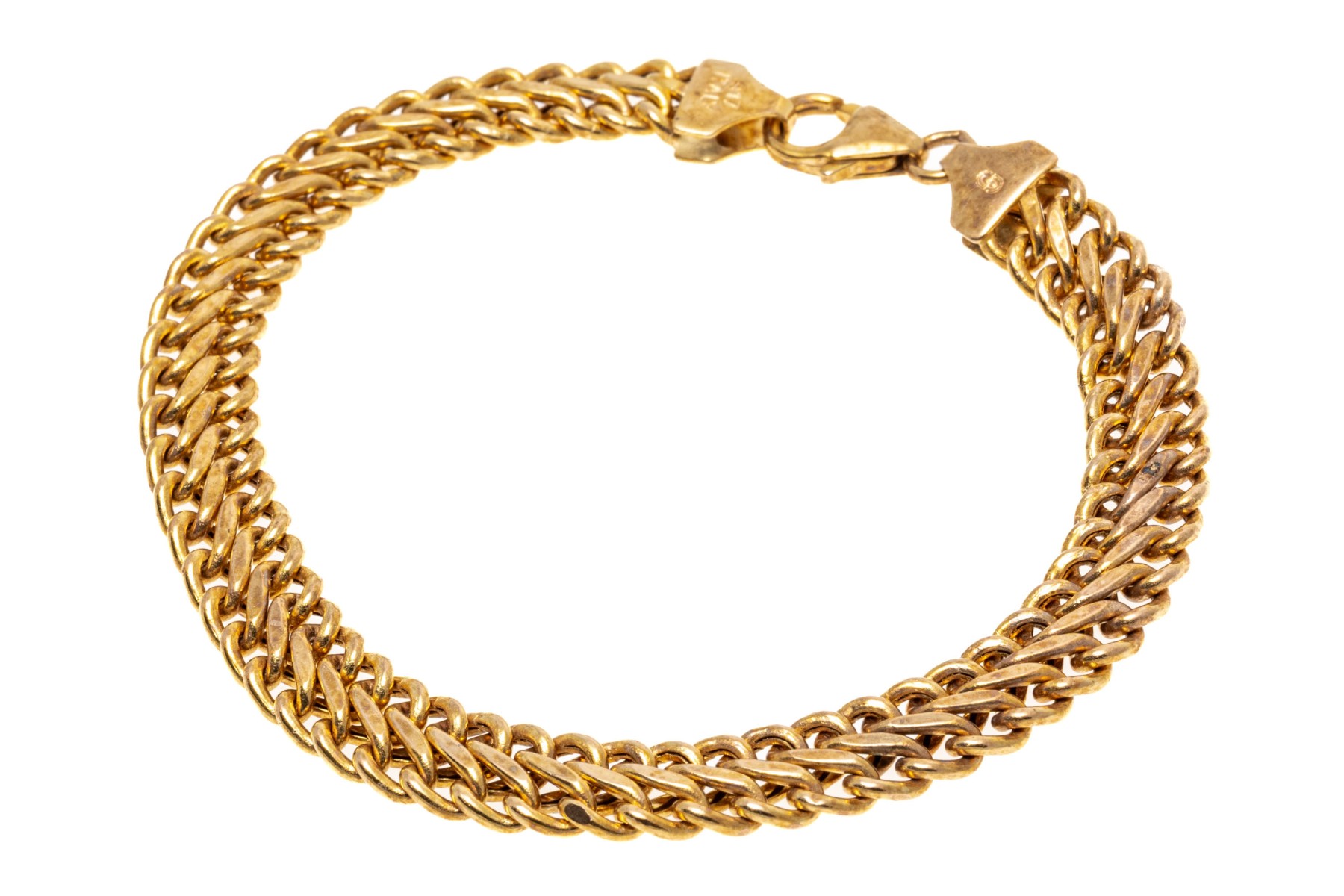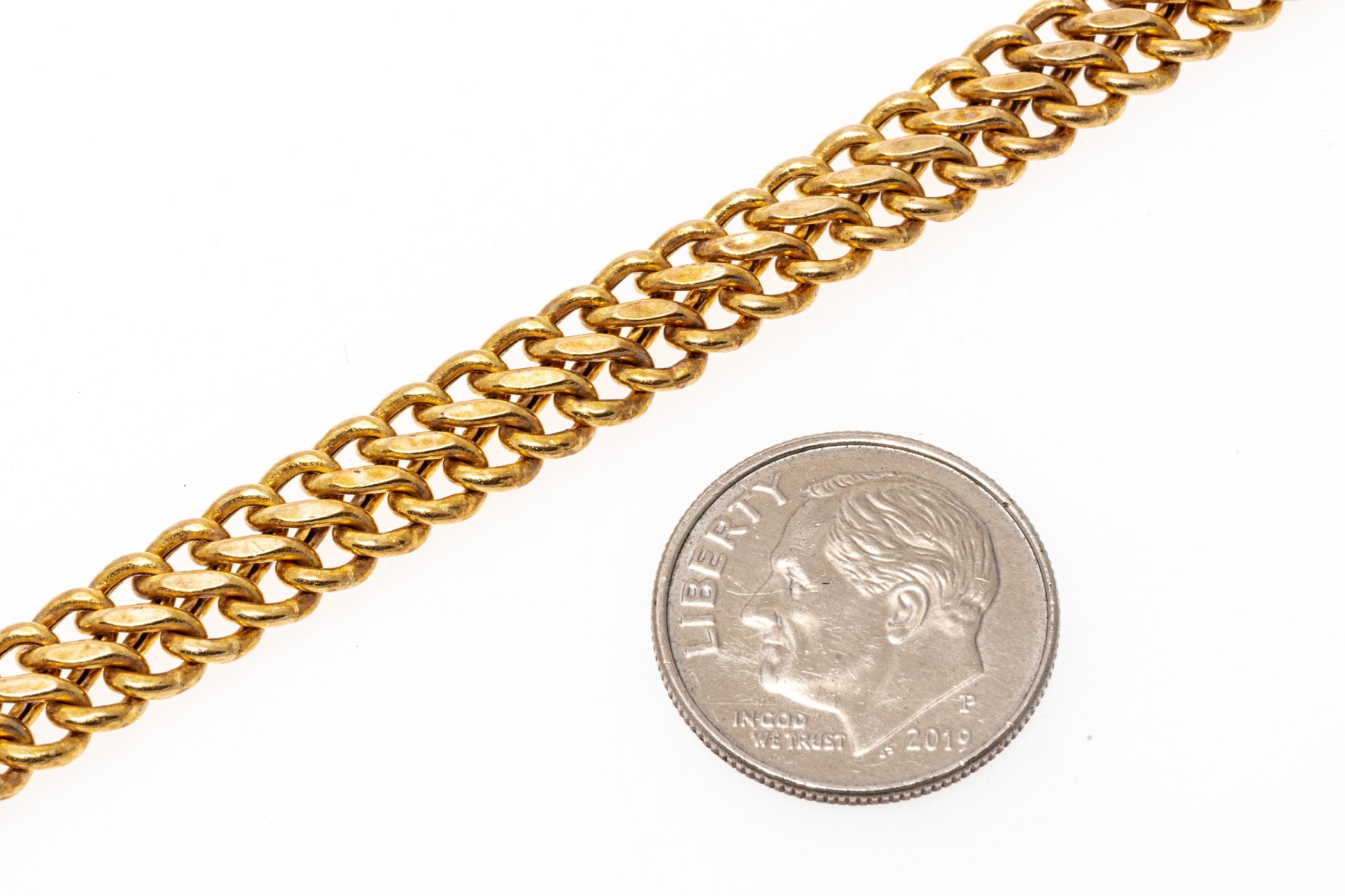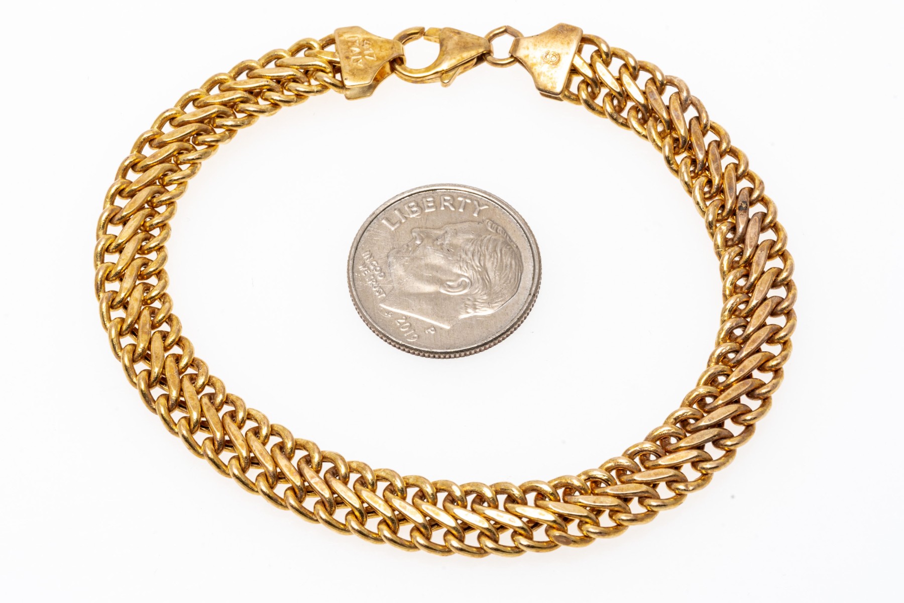 10k yellow gold hollow woven link bracelet, high polished. The bracelet is finished with a lobster claw style clasp