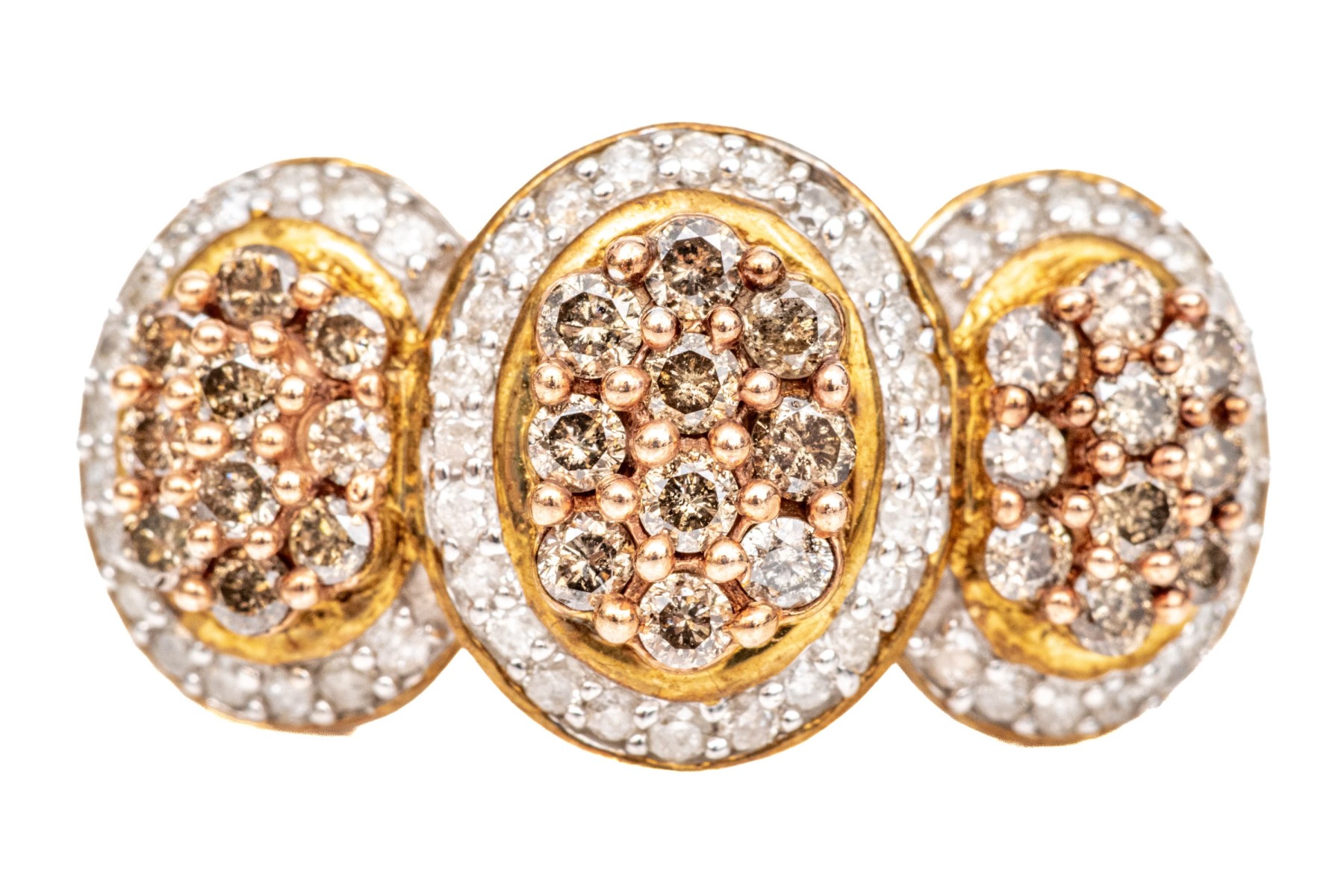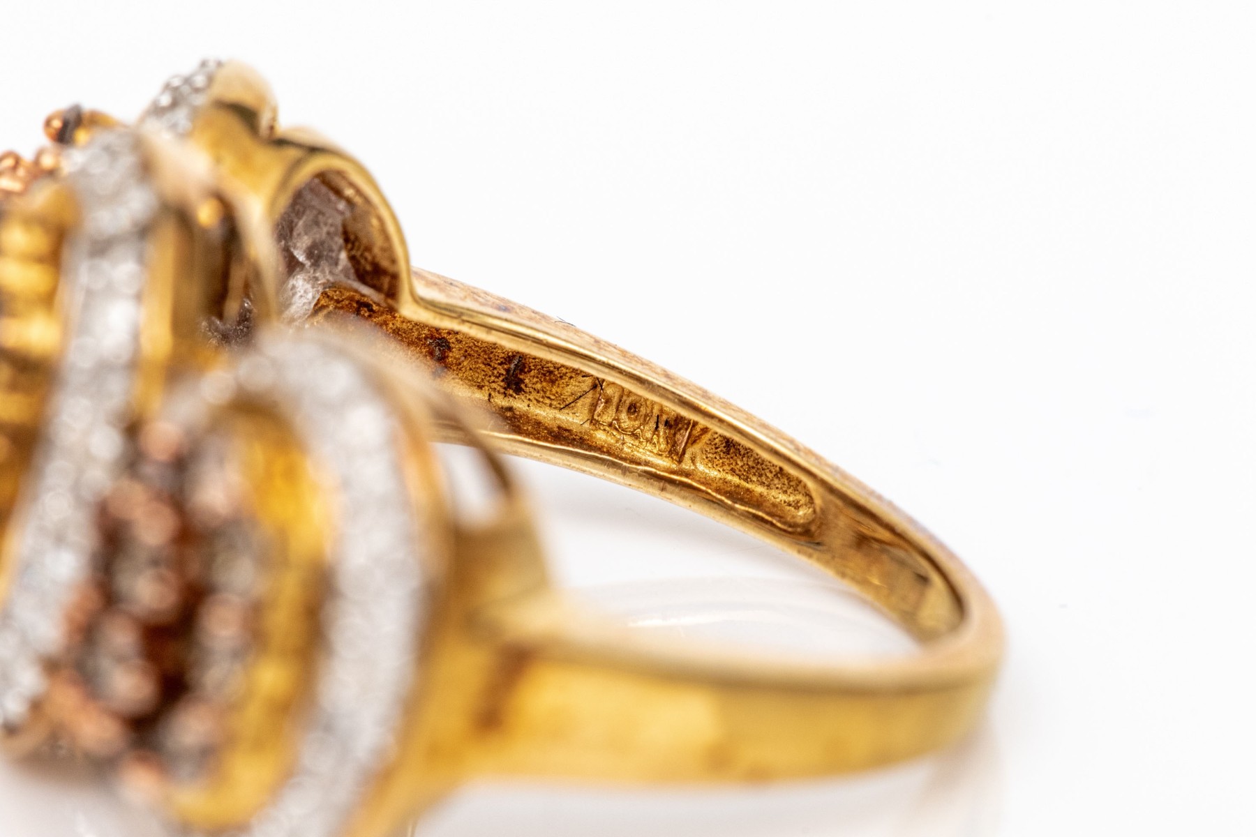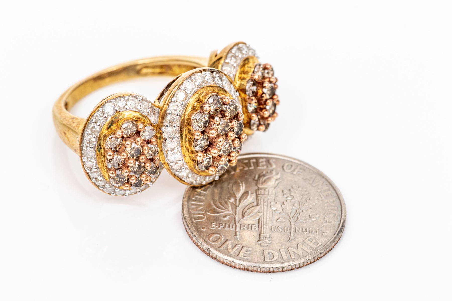 10k yellow gold impactful brown and white diamond cluster dome ring, app. 0.76 TCW, size 6