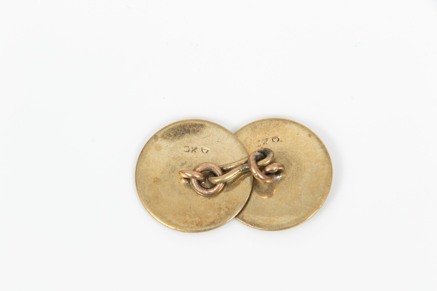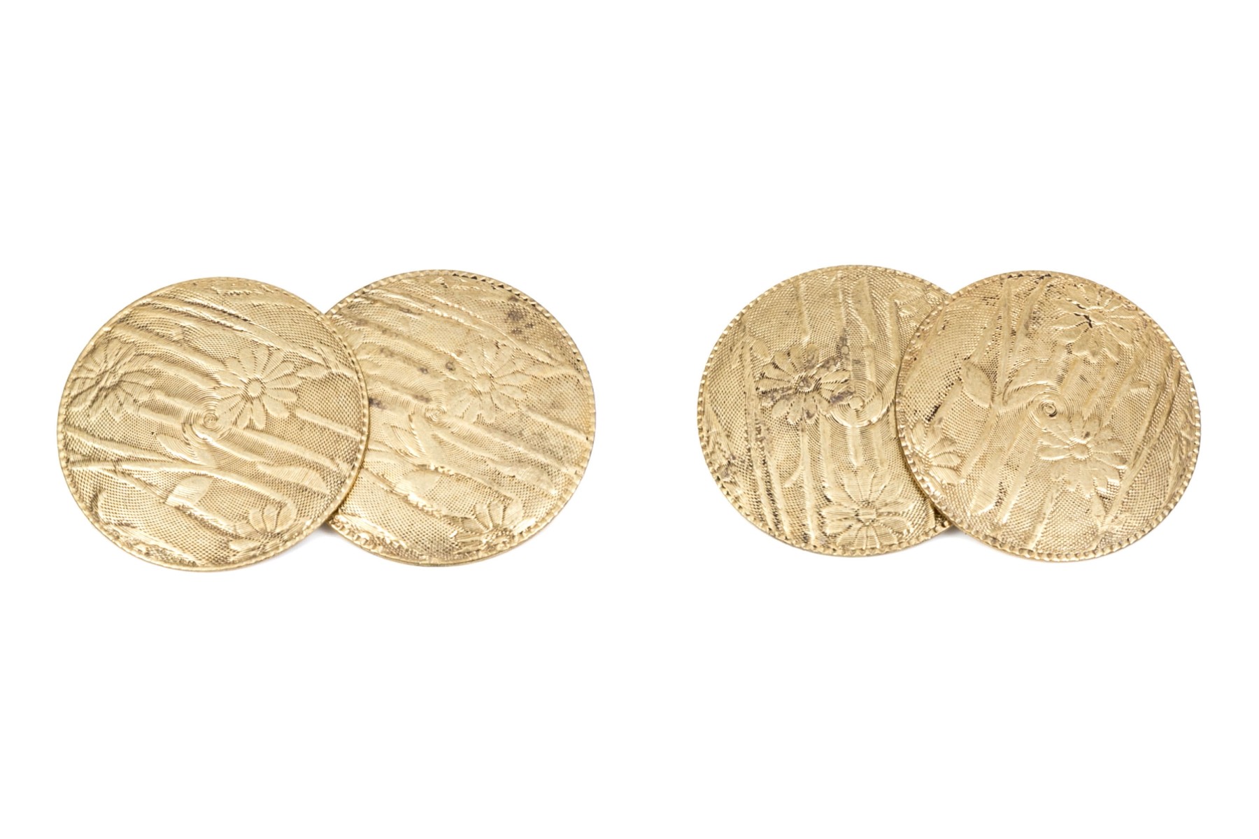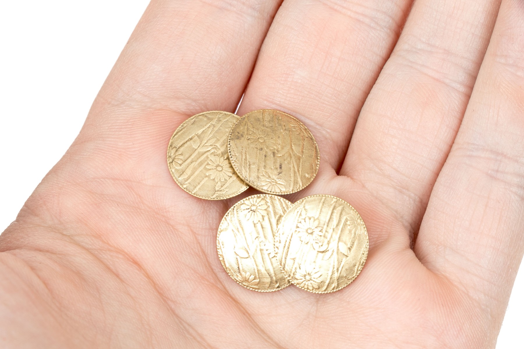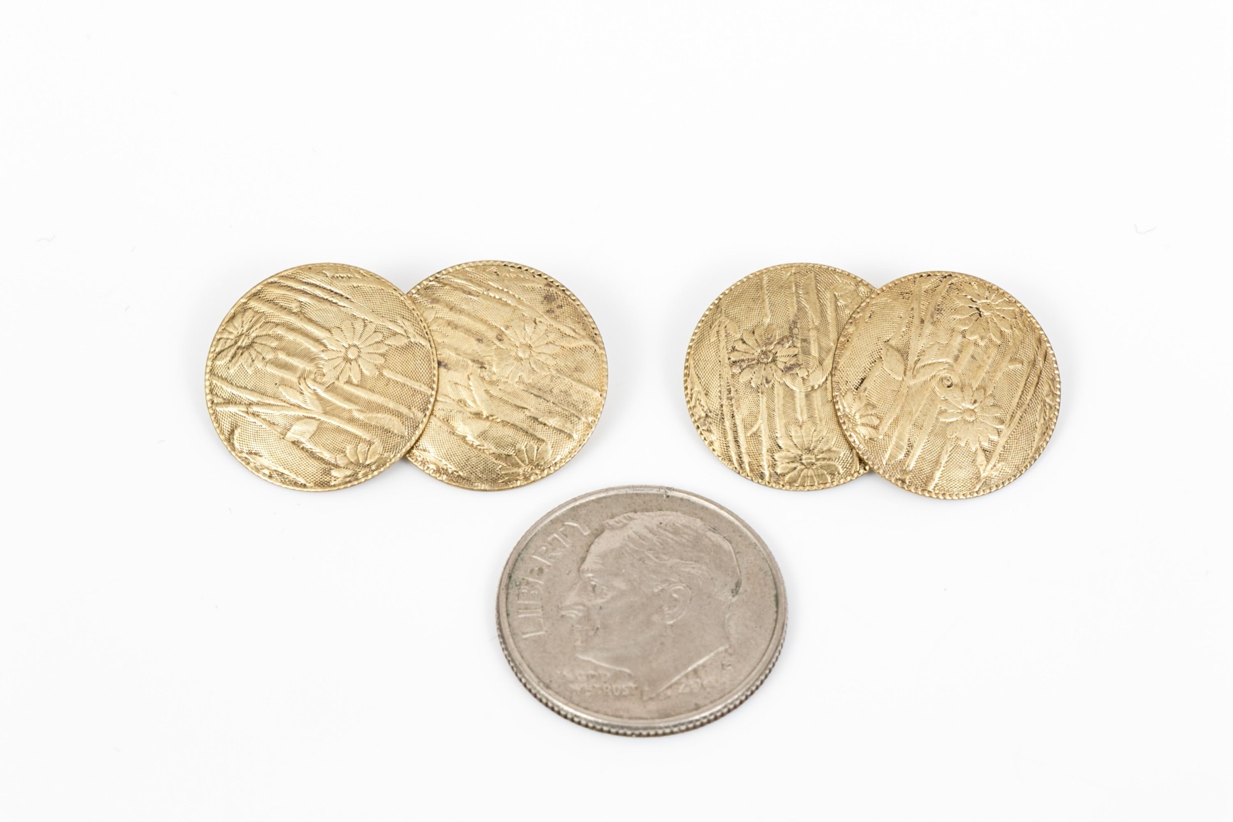 10k yellow gold lovely vintage guilloche and floral patterned loose link cufflinks