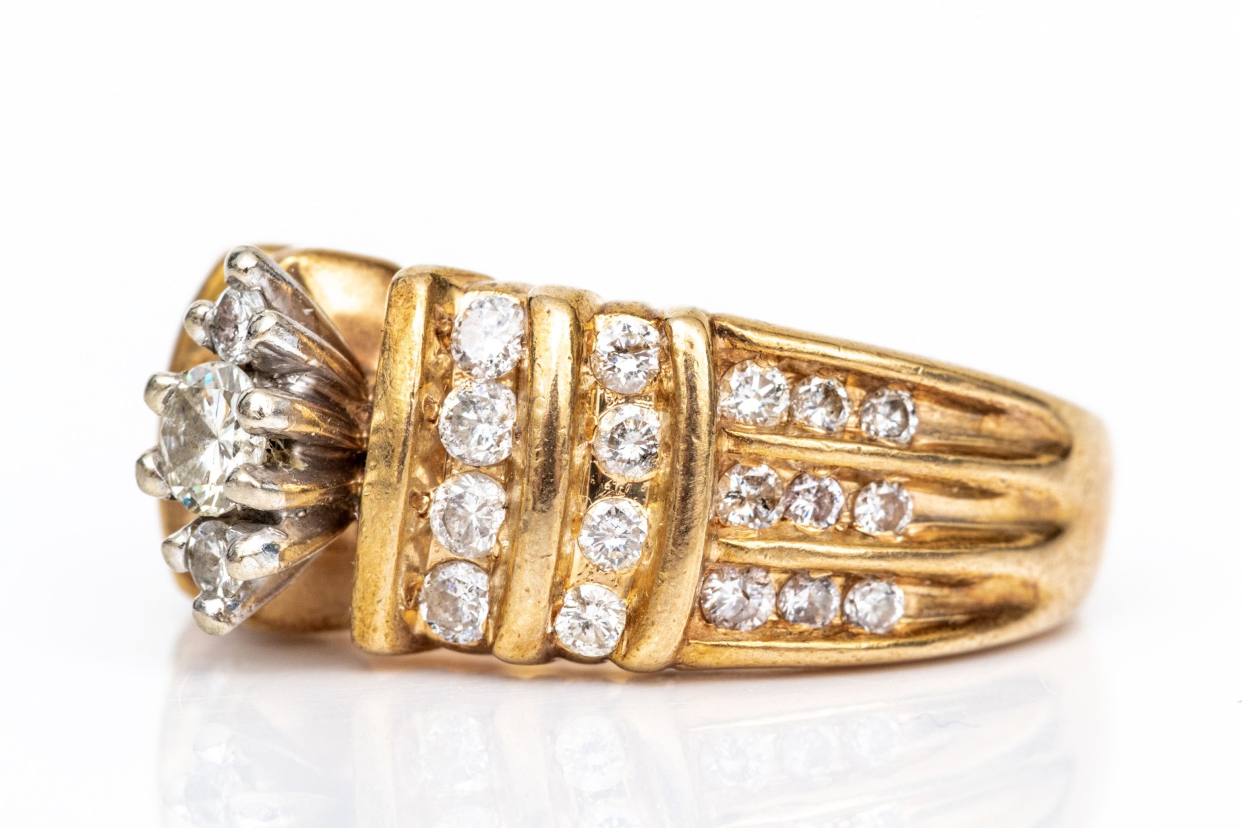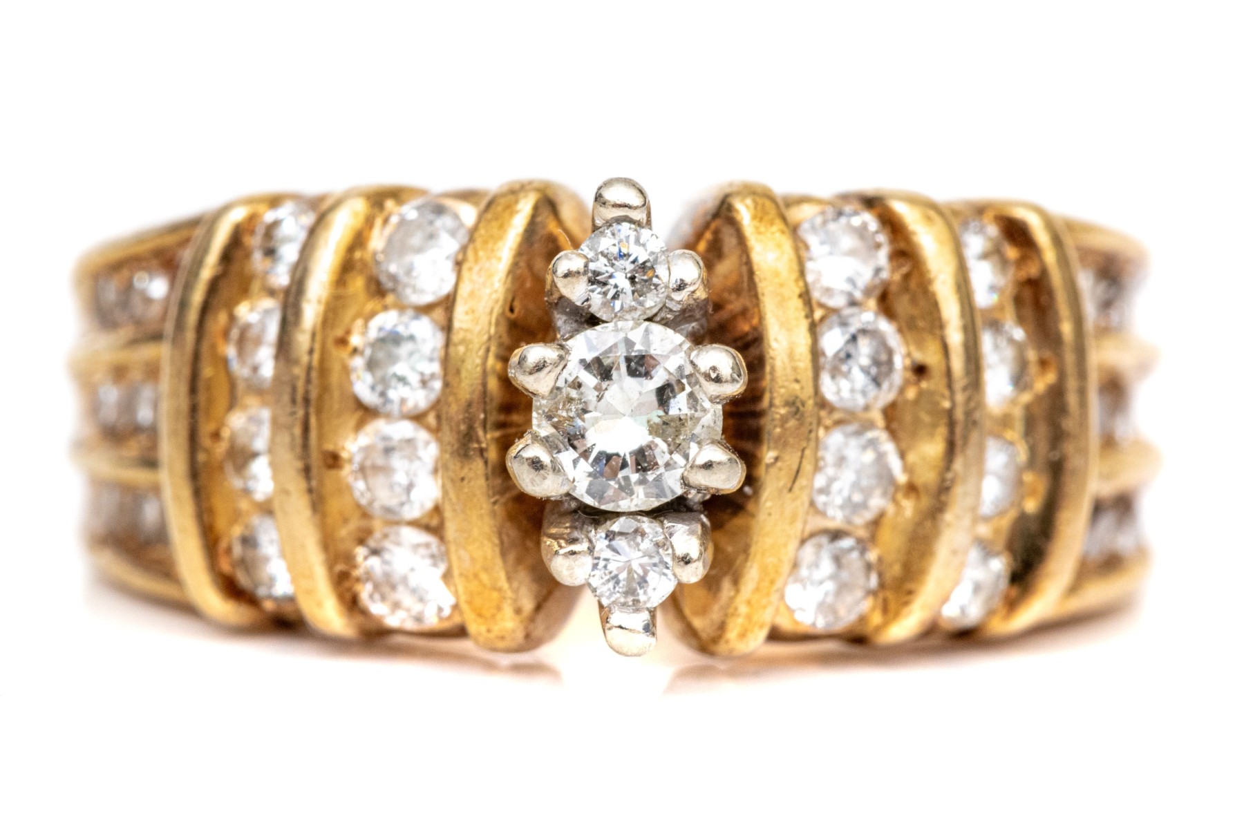 10k yellow gold marquise profile round channel diamond ring, app. 0.74 TCW, size 6.75