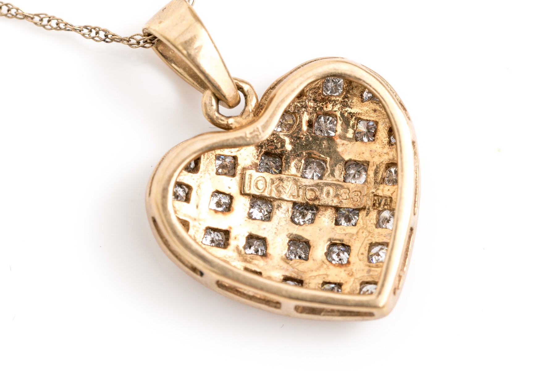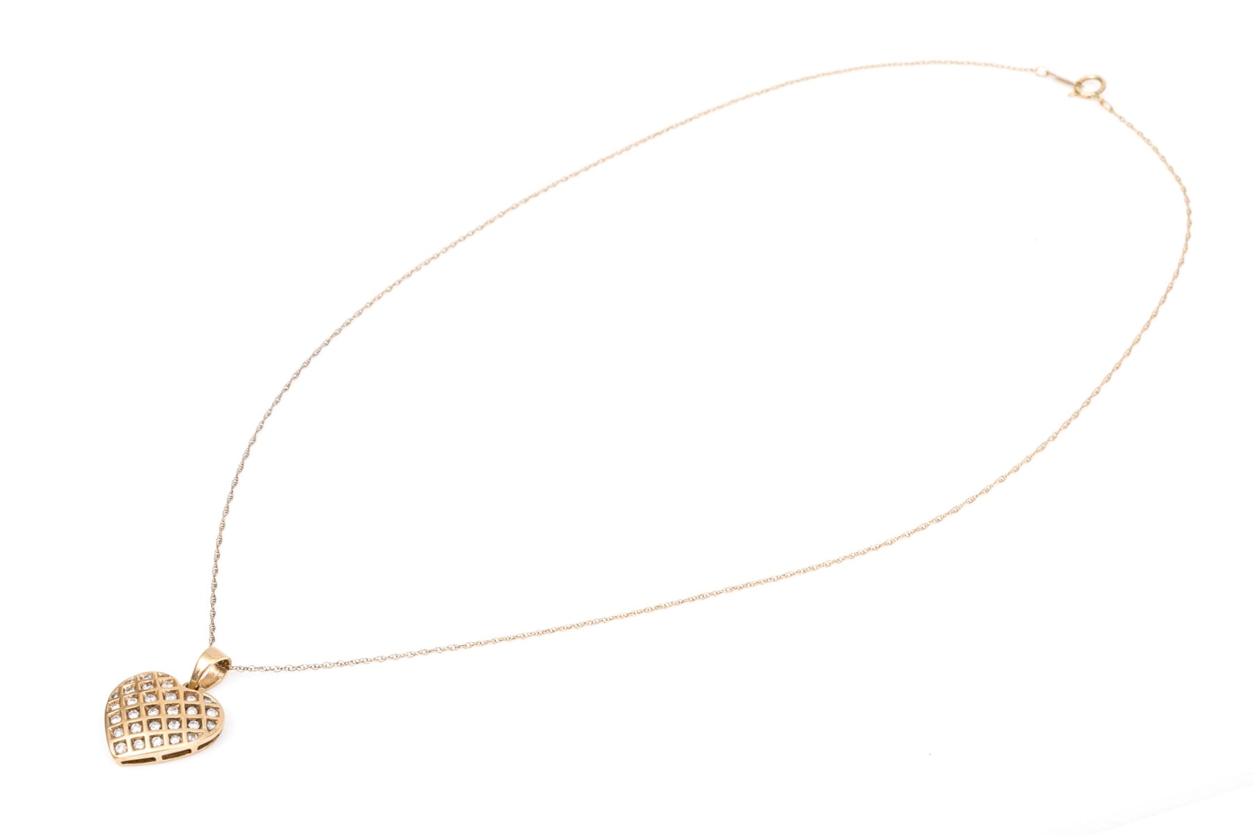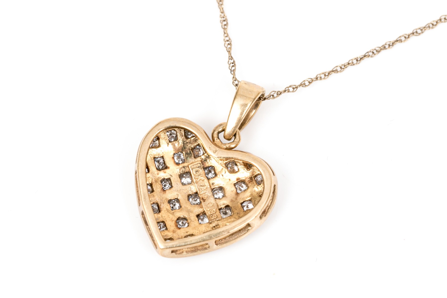 10k yellow gold pretty diamond quilted heart pendant, app. 0.15 TCW, with chain, finished with a spring ring style clasp
