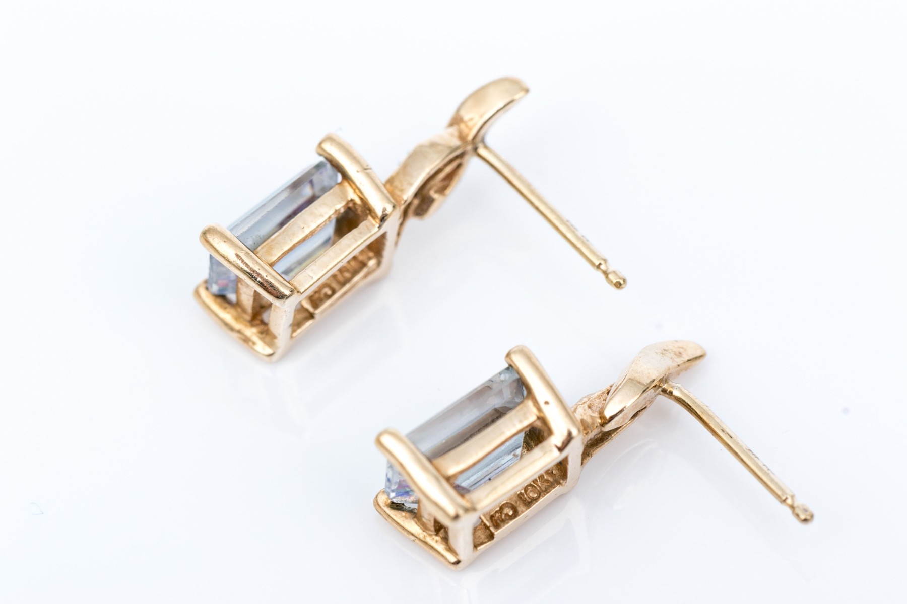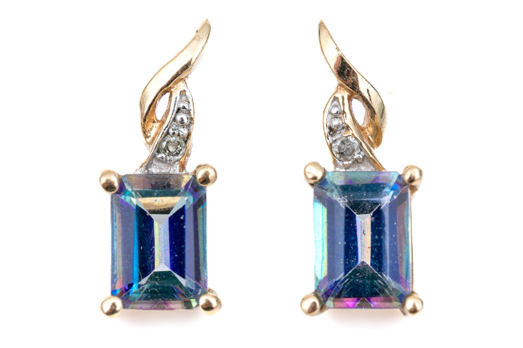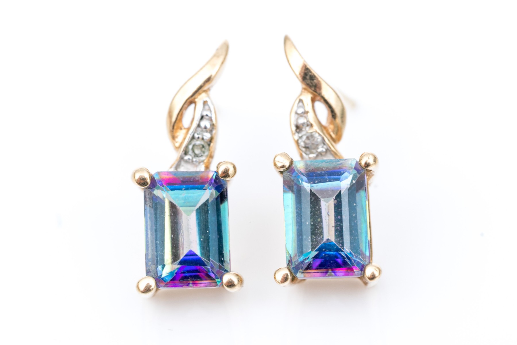10k yellow gold pretty mystic topaz slight drop earrings, finished with posts and missing clutches