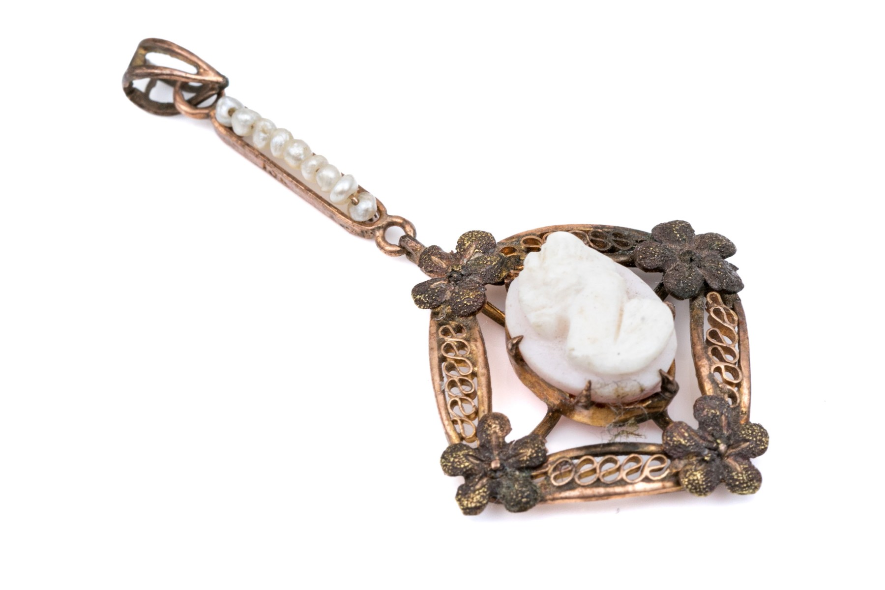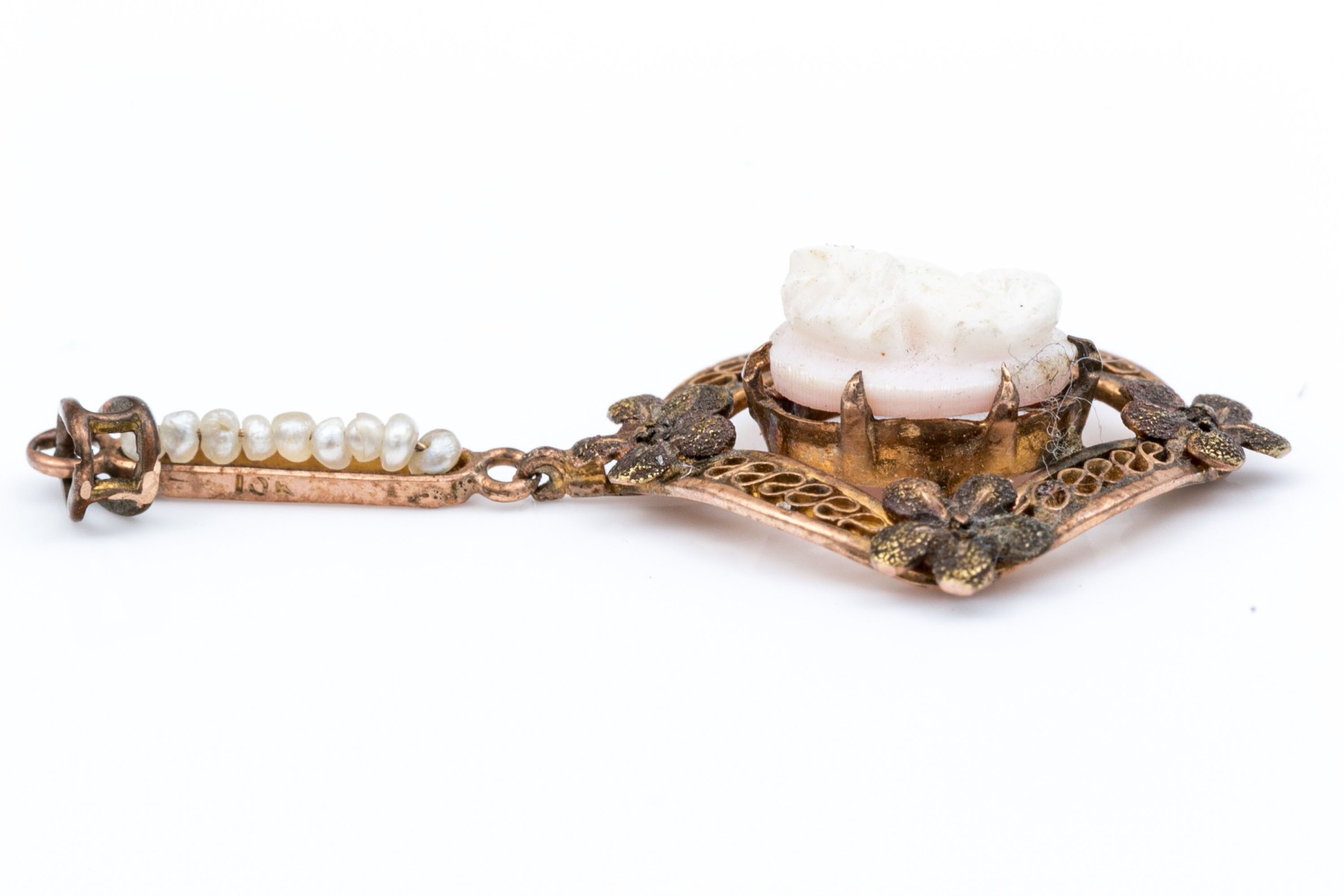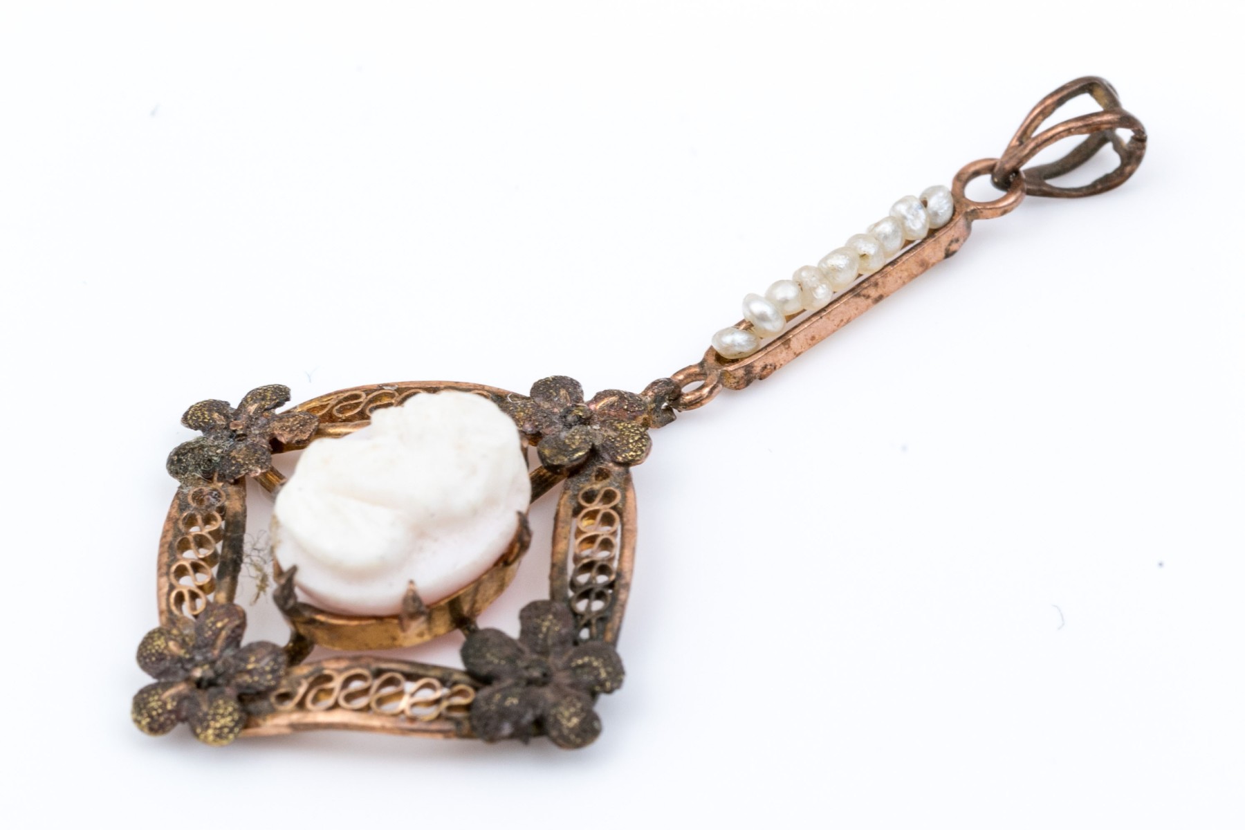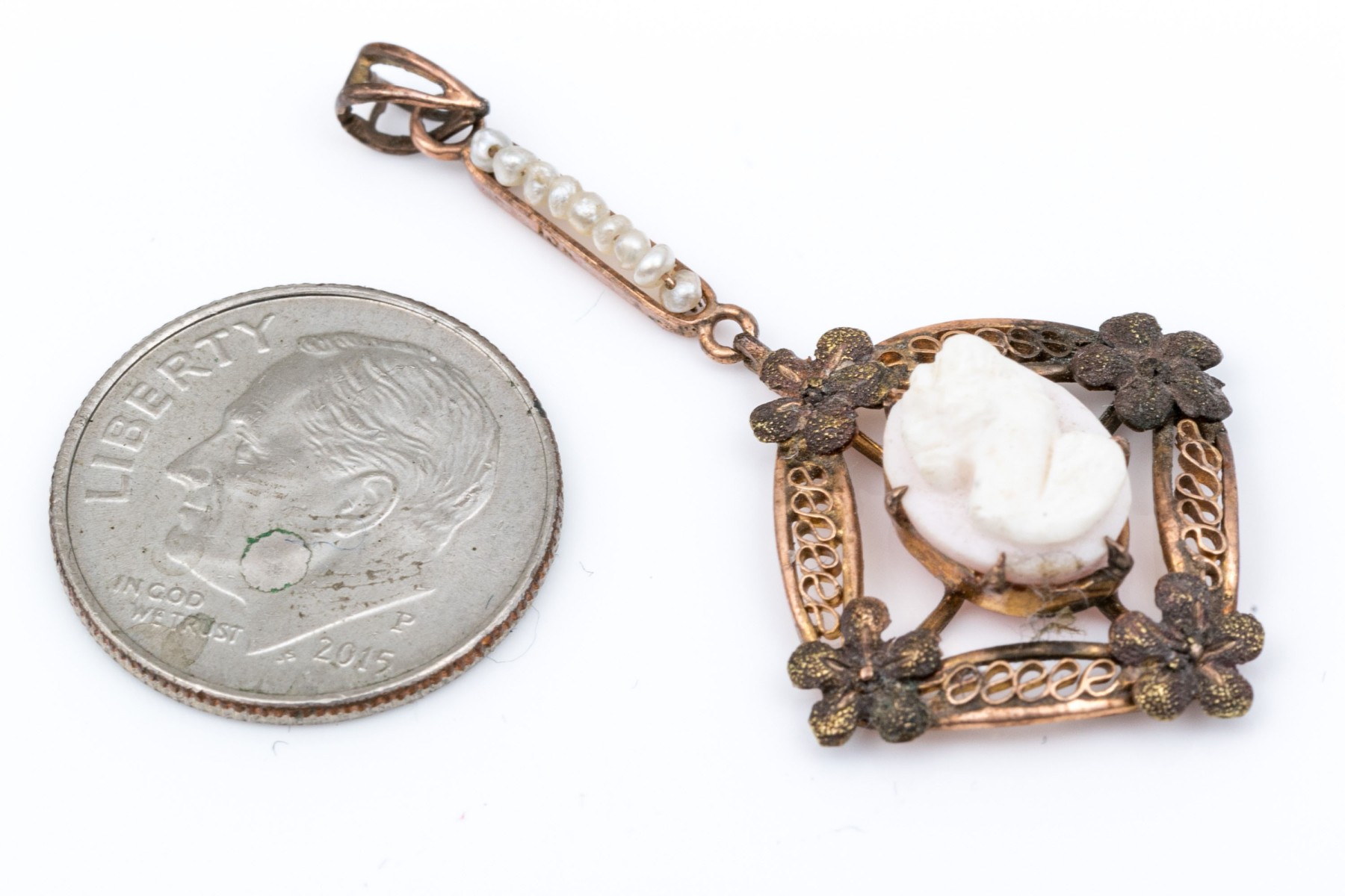 10k yellow gold pretty vintage cameo motif lavaliere pendant