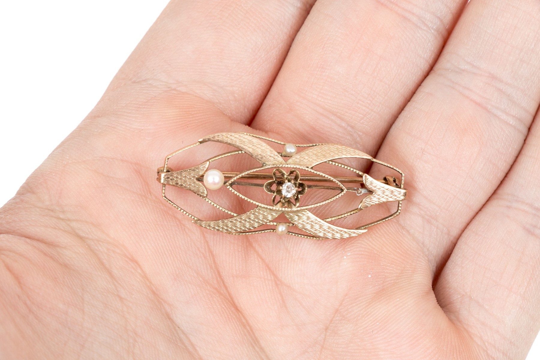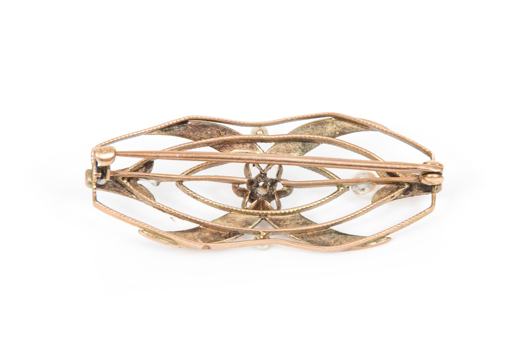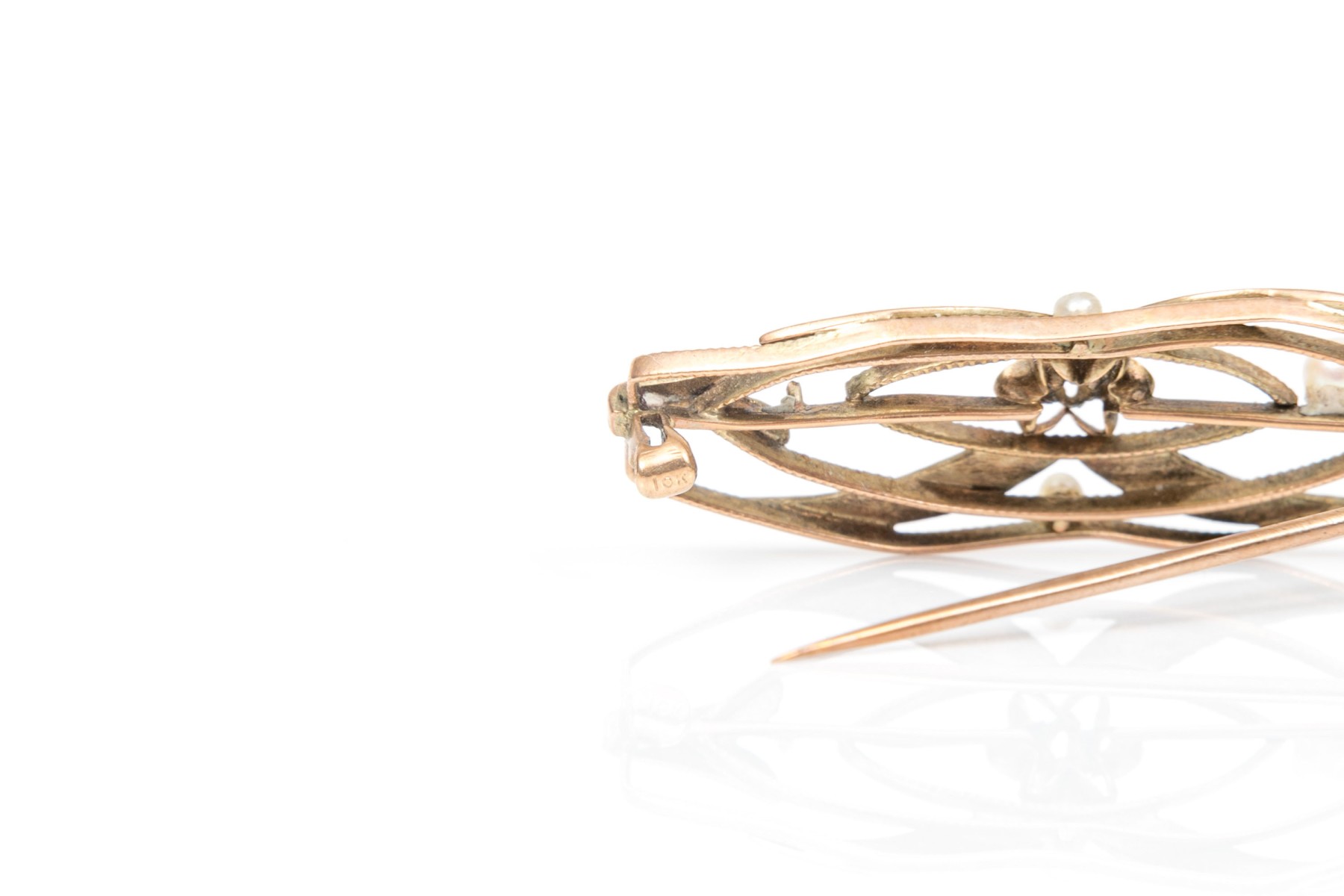 10k yellow gold pretty vintage seed pearl brooch, with a white sapphire center