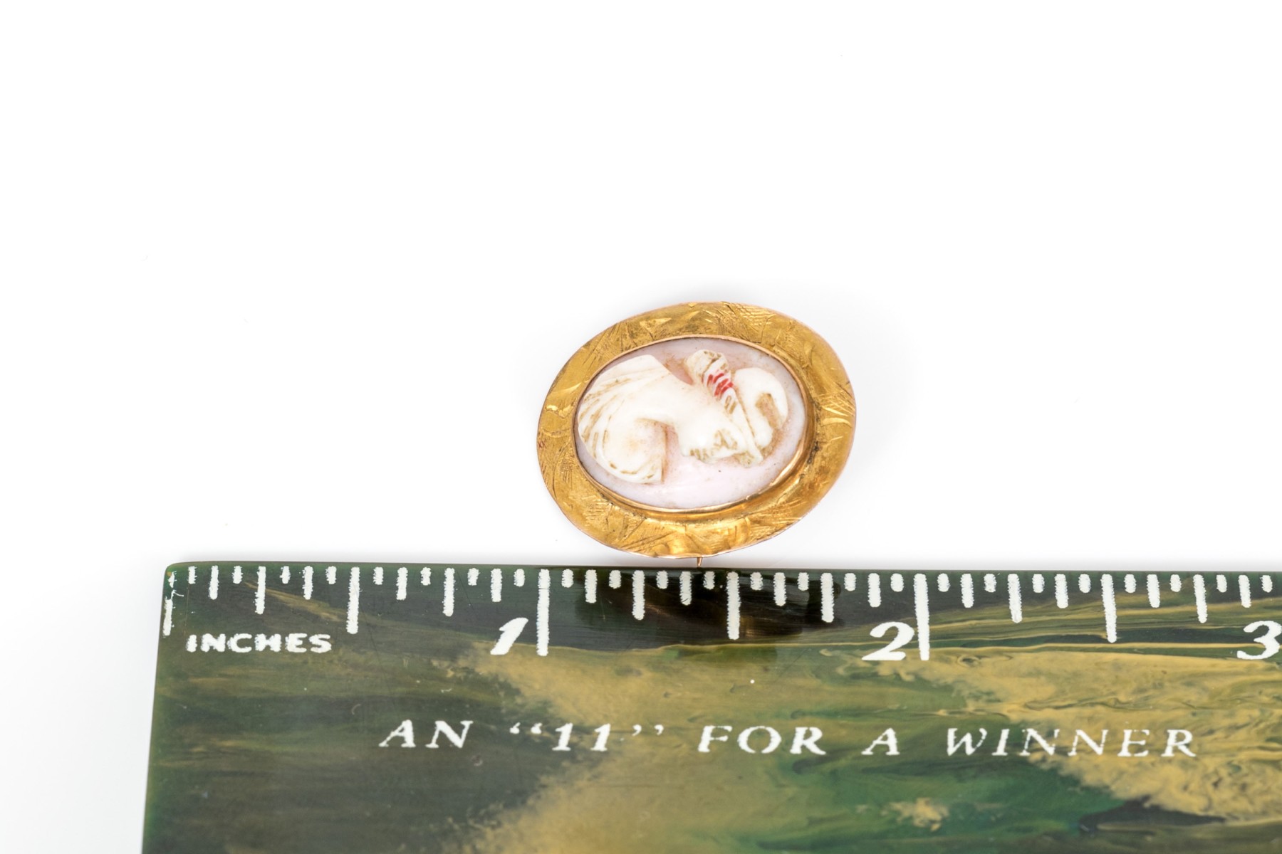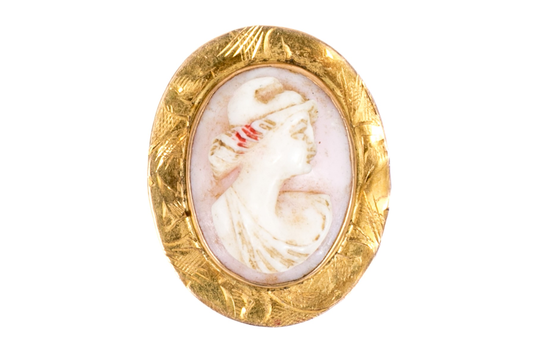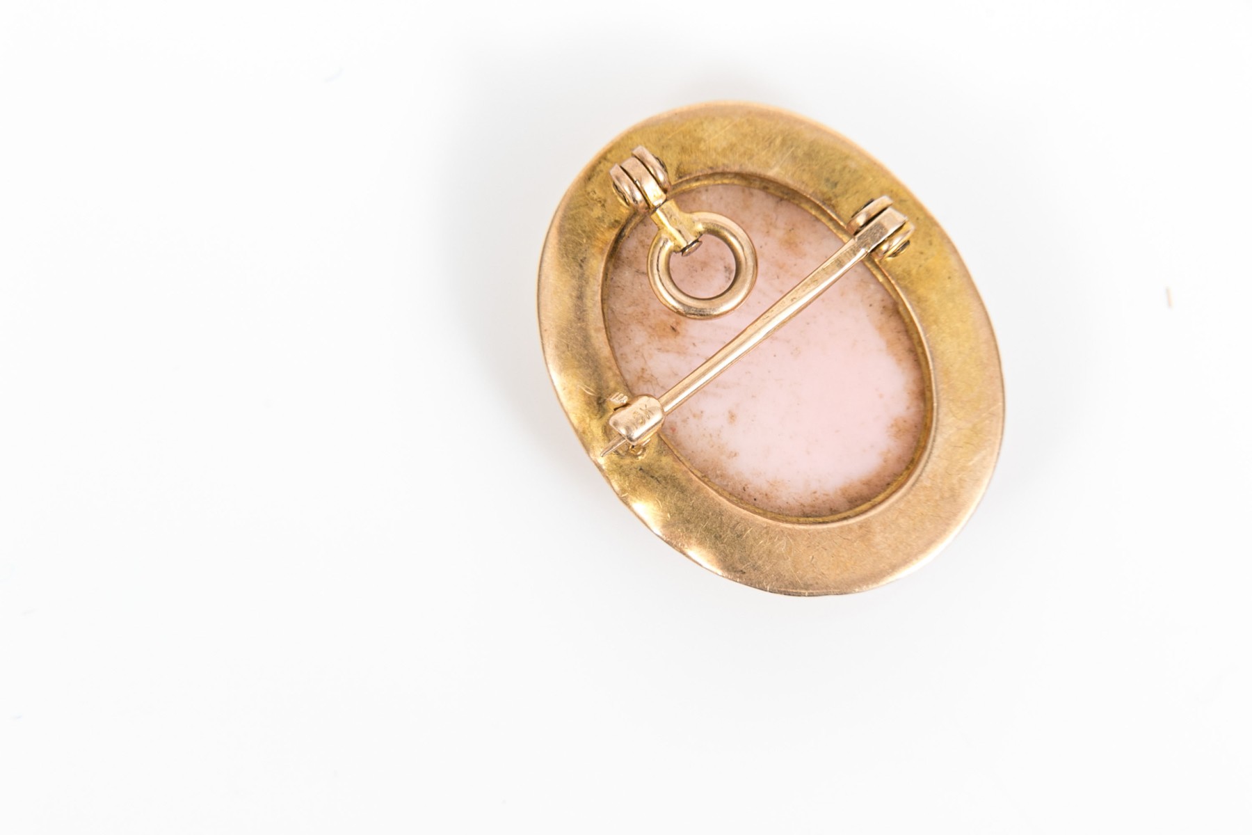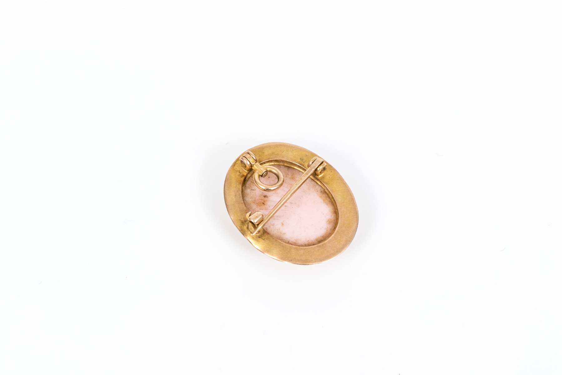 10k yellow gold small wide framed pink cameo brooch/pendant