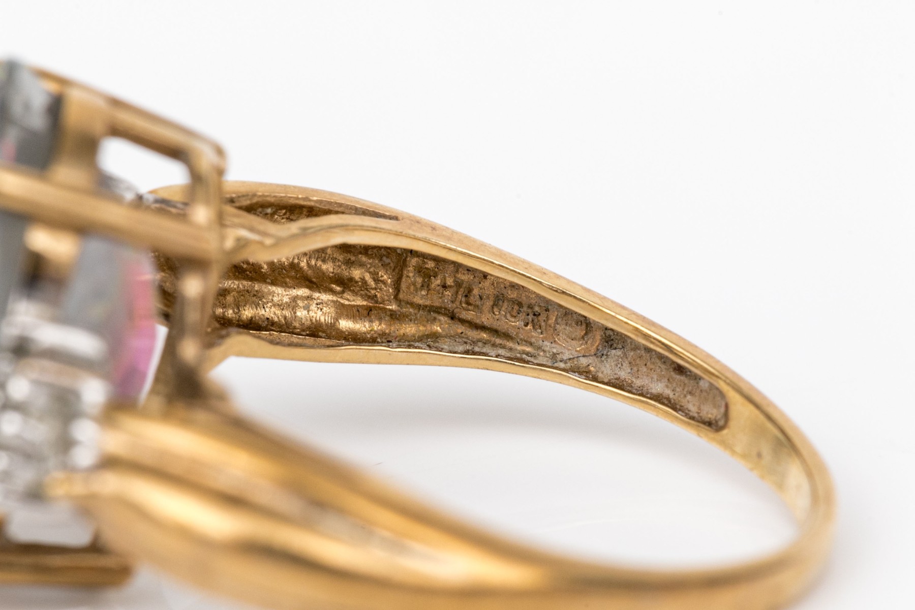 10k yellow gold striking oval mystic topaz and accent diamond ring, size 7