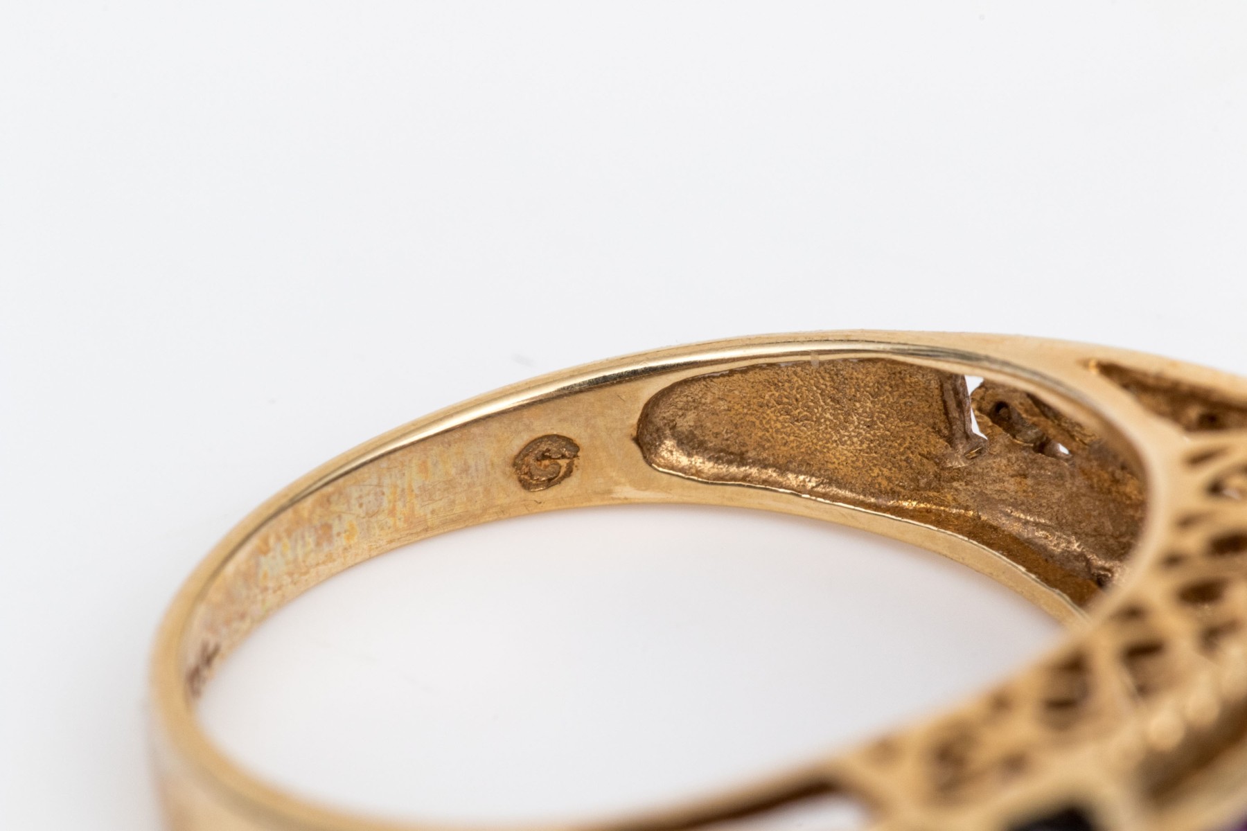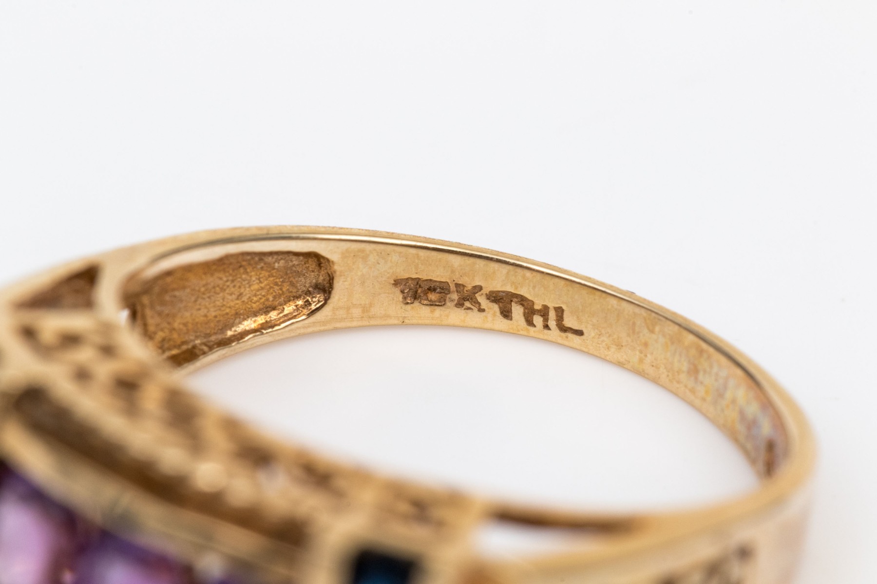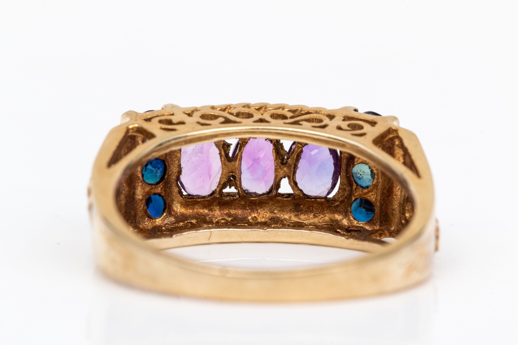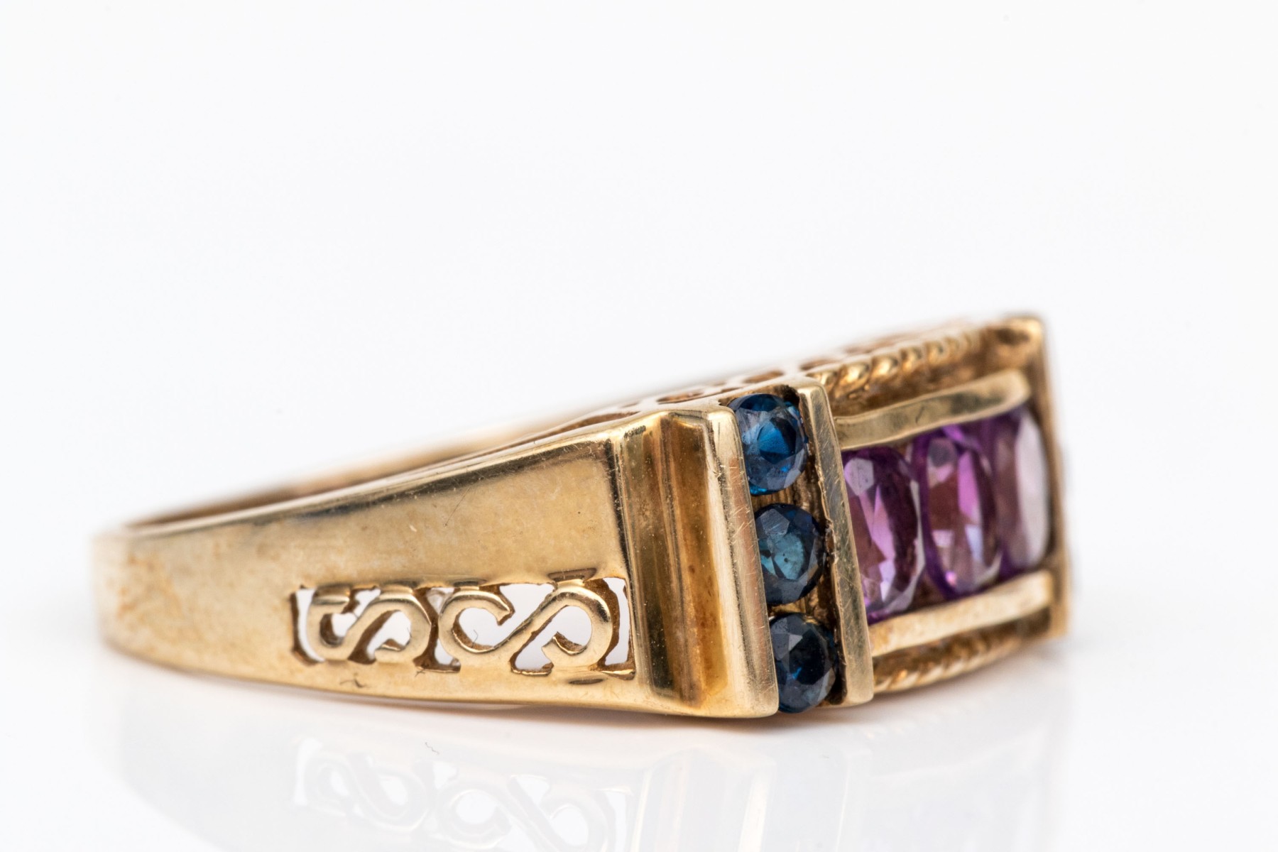 10k yellow gold unique amethyst and sapphire set retro style ring, app. 0.42 TCW in sapphires, size 5.75