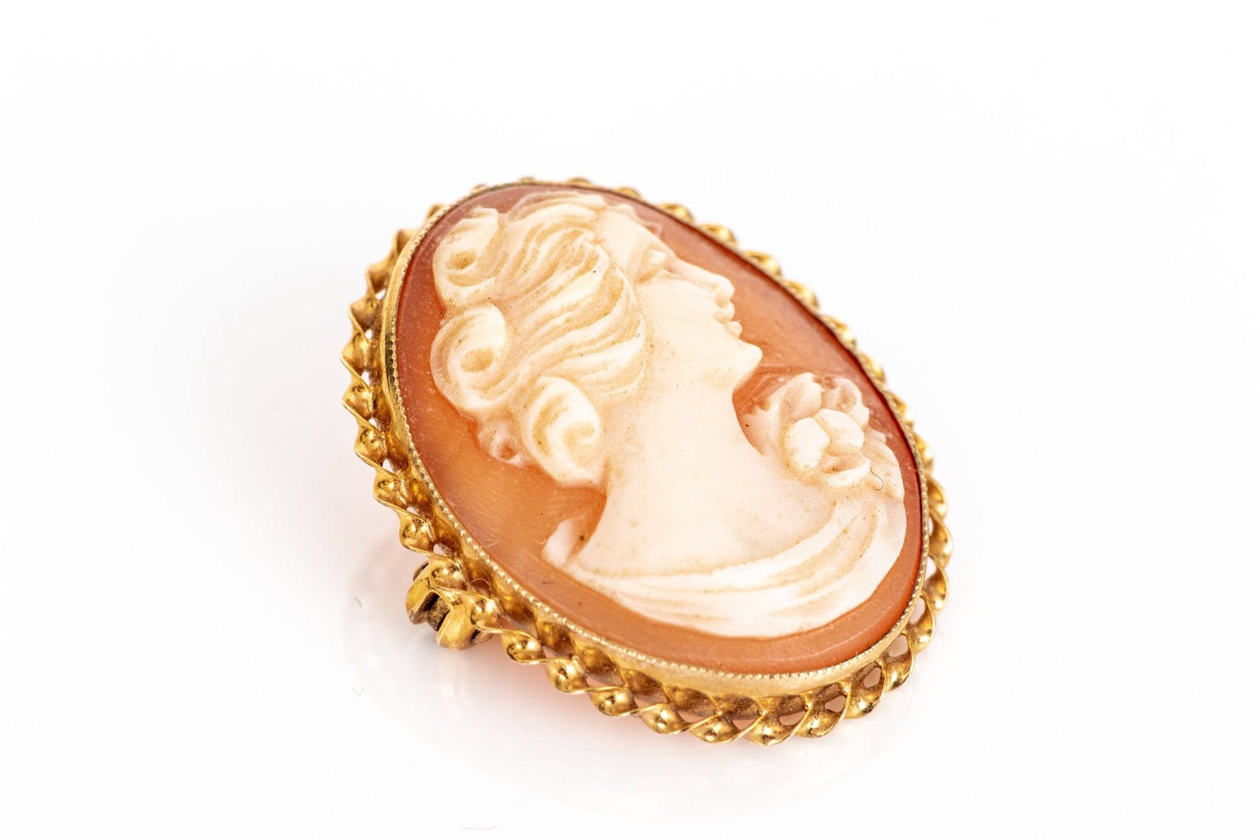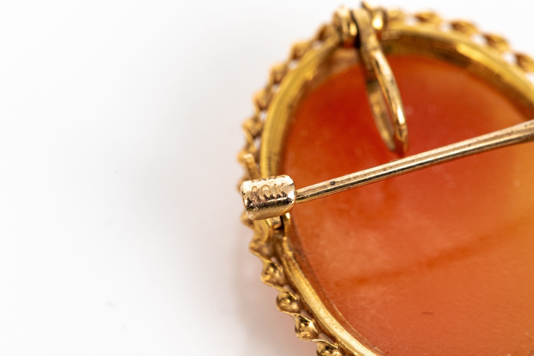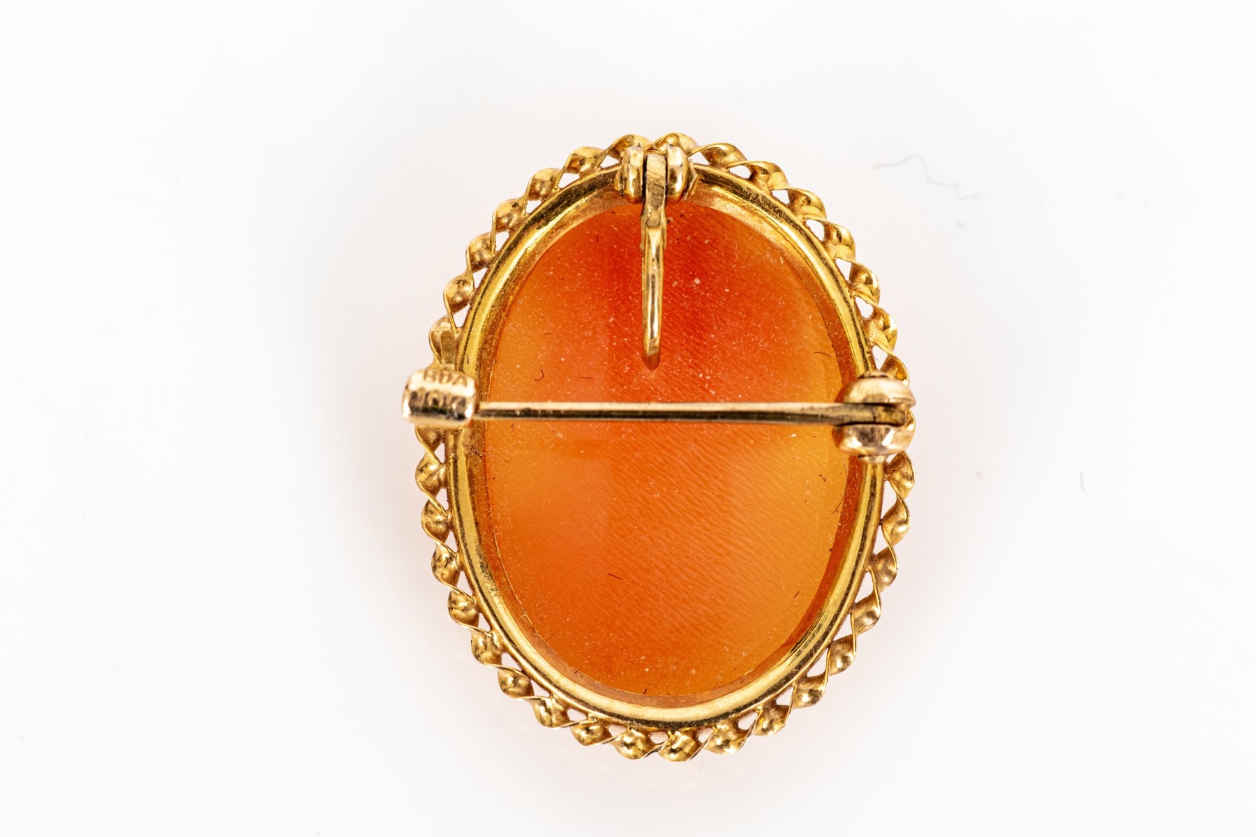 10k yellow gold vintage oval cameo brooch/pendant, decorative border
