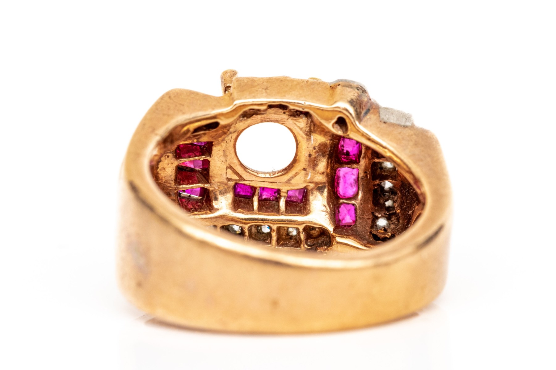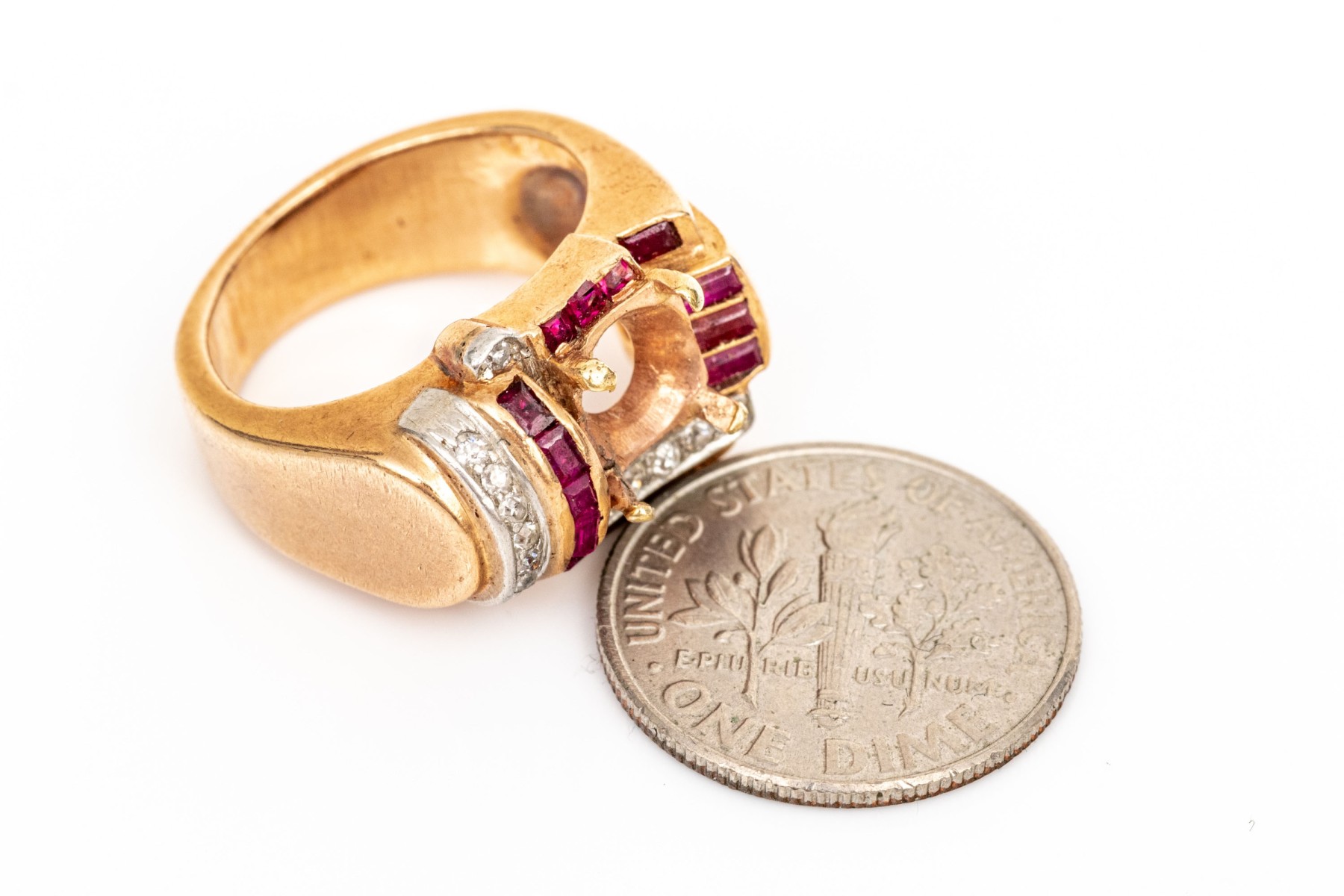 10k yellow gold vintage synthetic ruby and diamond set semi-mount size 3+