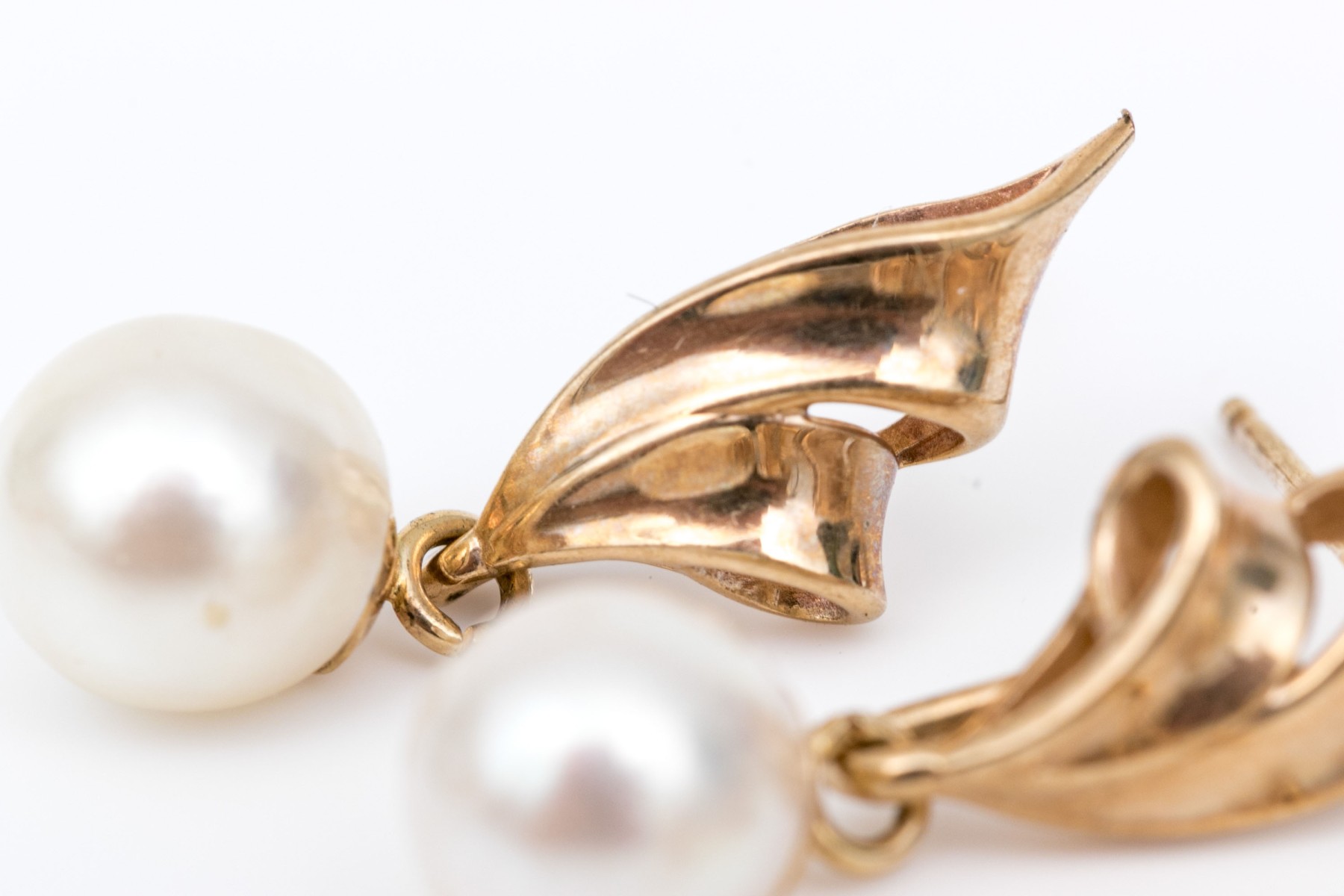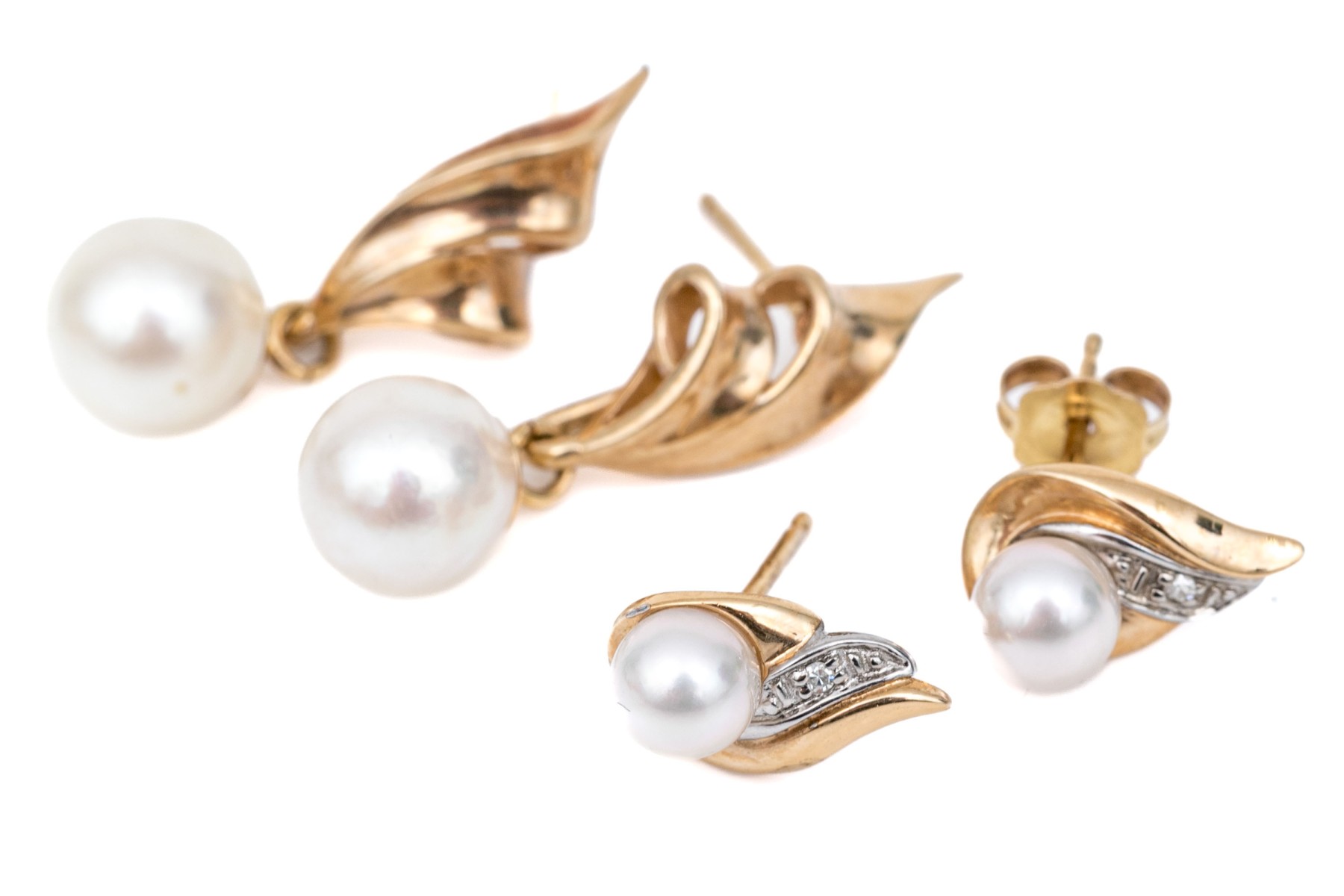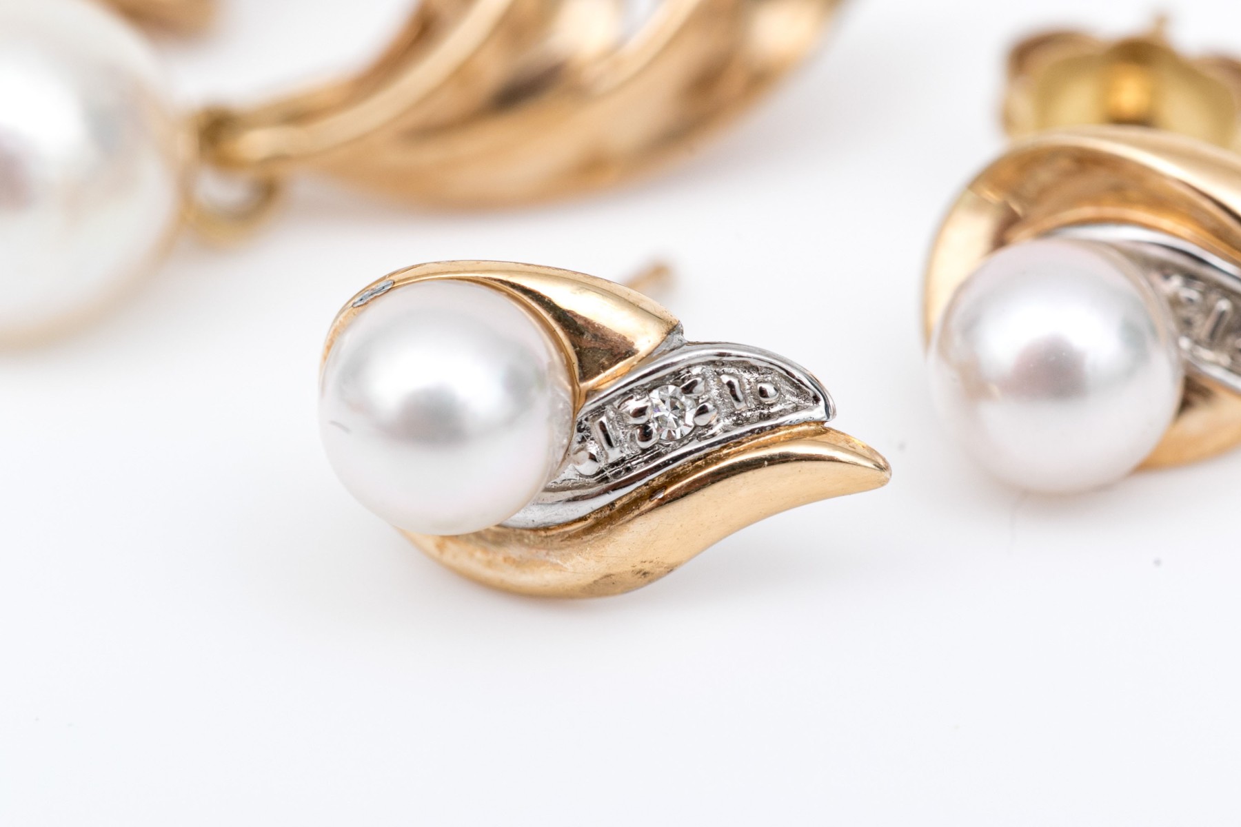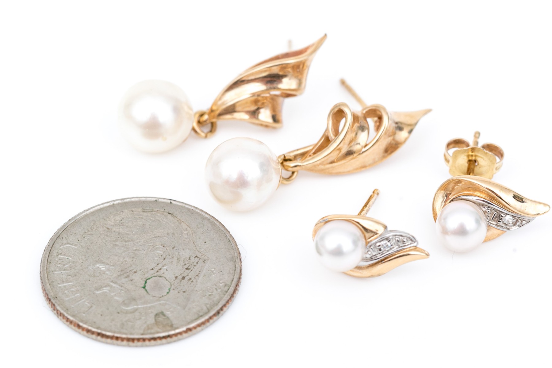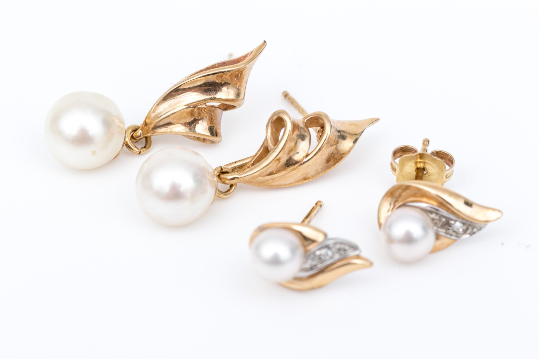 14k and 10k gold set of cultured pearl earrings, post and clutch (some missing) styles