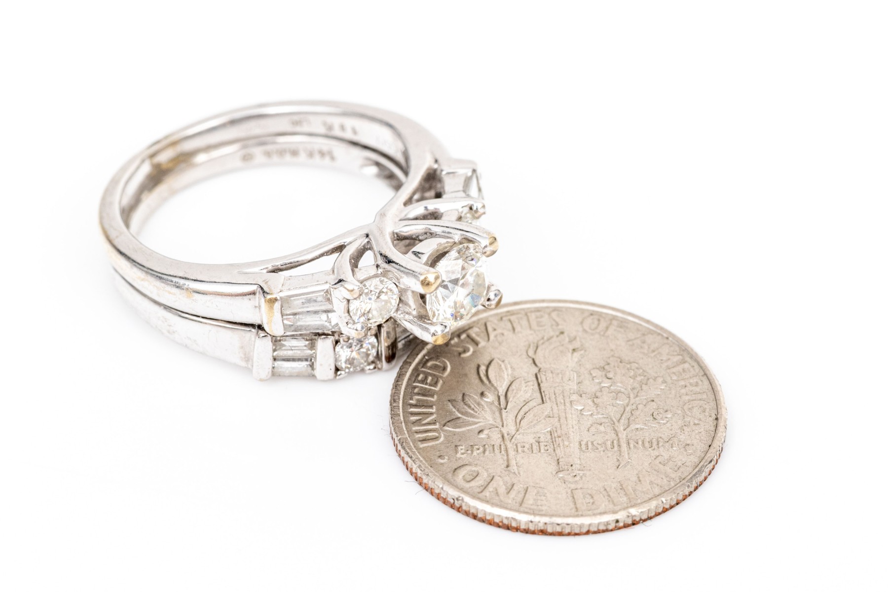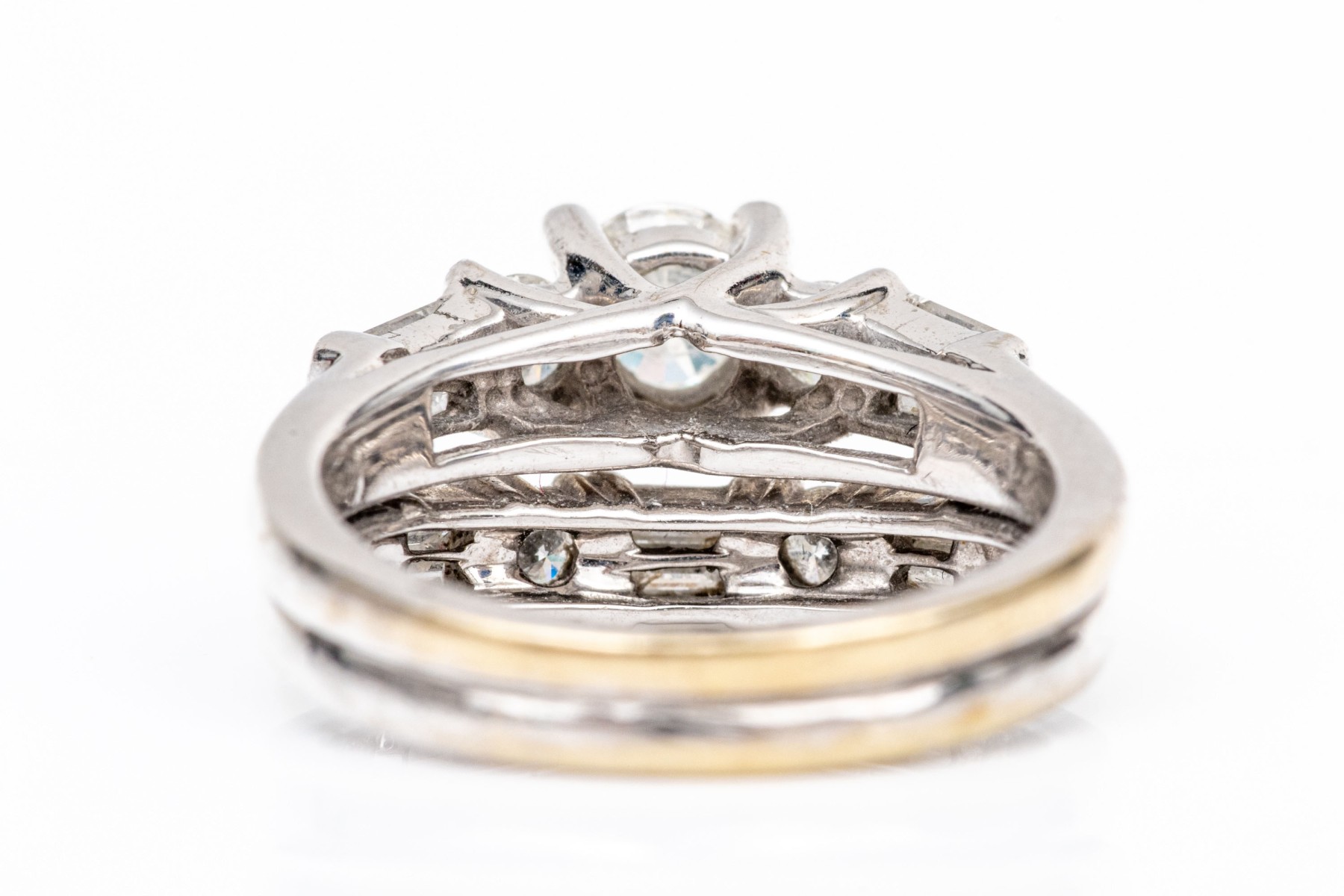 14k and 18k round baguette diamond ring, app. 1.07 TCW, with attached band, size 4.5