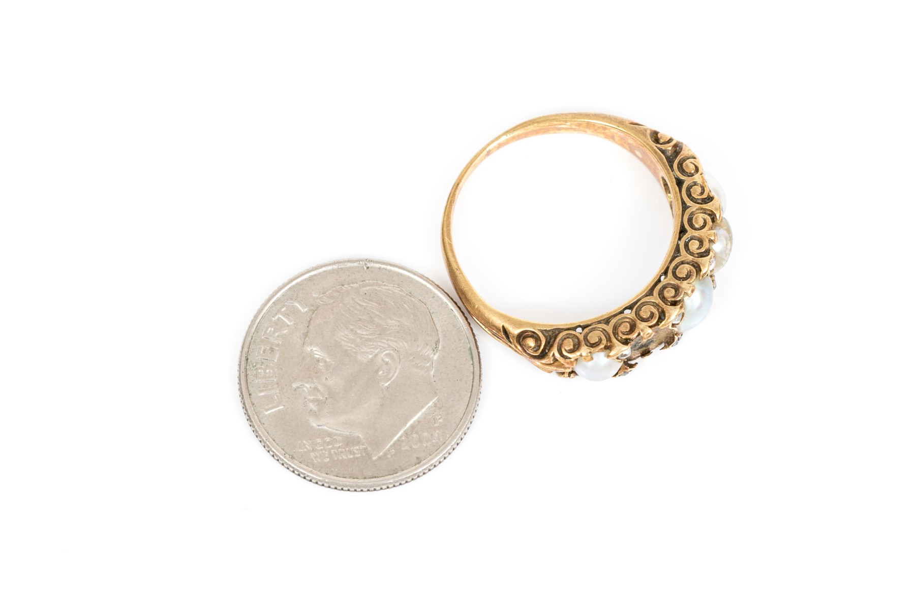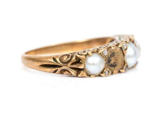 14k Gold Antique Cultured Pearl And Macle Cut Diamond Ring, Size 5.75, As Is #310502. Black Rock Galleries provides high end estate liquidation services through online estate auctions and a 50,000 sq ft designer showroom. estate liquidator, estate sale, online auction, antiques, fine art, liquidation, clean outs, auction, consignment, interior design, fine jewelry, collectibles, appraisals, estate appraisals, estate services, decor, furniture, furniture consignment, antique center, consignment shop. We offer appraisal services and specialize in fine art, jewelry, antiques and decorative arts. Sell with us. Black Rock Galleries is the tri-state's largest estate liquidator serving New England and the greater New York City area. We are the trusted source for expert appraisals, auction services, estate sales, and consignments. Black Rock Galleries is the east coast's largest and most trusted estate liquidator, with locations in Connecticut, greater Boston, MA and Raleigh, NC, Fairfield, Southport, Apex, TX. We are the best source for expert appraisals, auction services, estate sales and consignments. We have served thousands of families and estates with compassion, professionalism and expertise. BRG works with attorneys, executors, realtors and families to bring the greatest return on personal and estate property in the current market. Our unique combination of services make us the easy choice to get the job done in a timely and stress-free manner. We are with you from the initial consultation to the final clean out. Our house-built online auction software platform offers clients a dynamic approach to liquidating their personal property. This venue is most successful in bringing the best return with the least amount of disruption for our clients. See our services page for a complete description of this offering. 14k Gold Antique Cultured Pearl And Macle Cut Diamond Ring, Size 5.75, As Is #310502