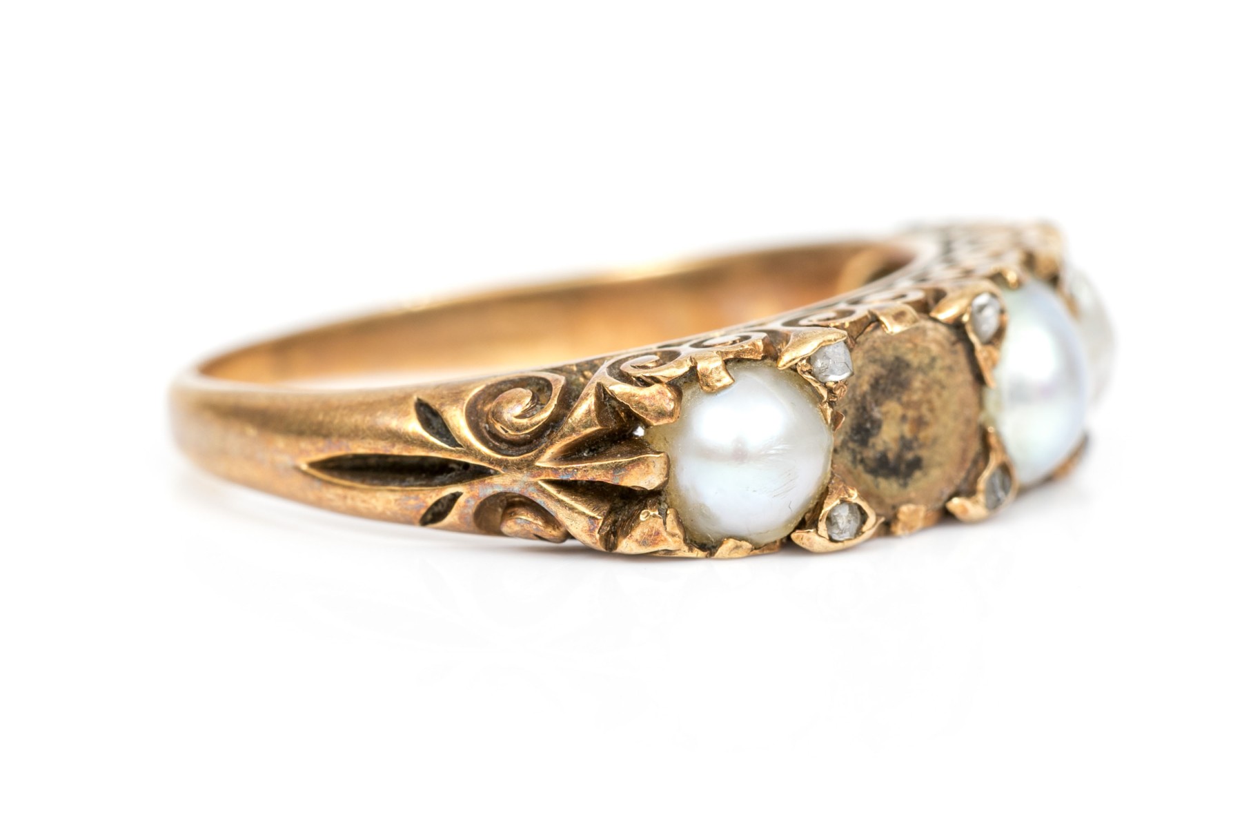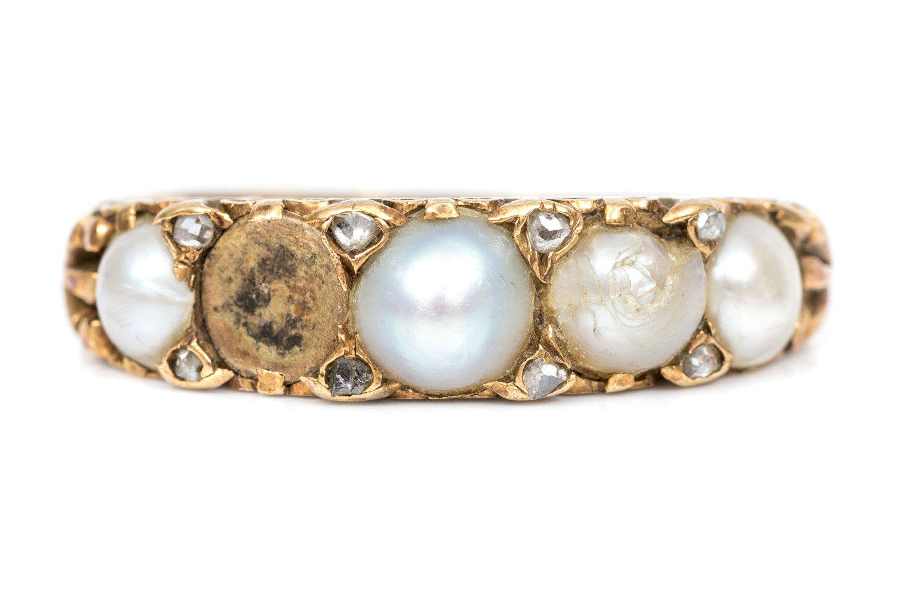 Condition: MIssing cultured pearl, tarnished