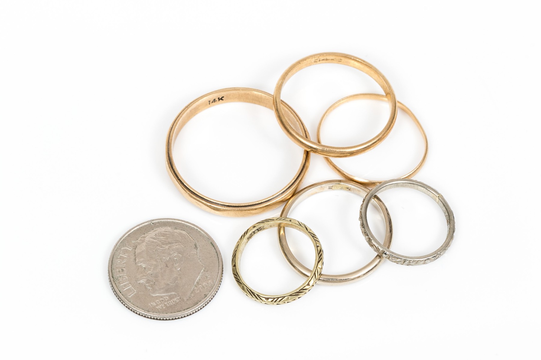 14k gold lot of assorted scrap band rings, assorted sizes, 5.5 gross dwt