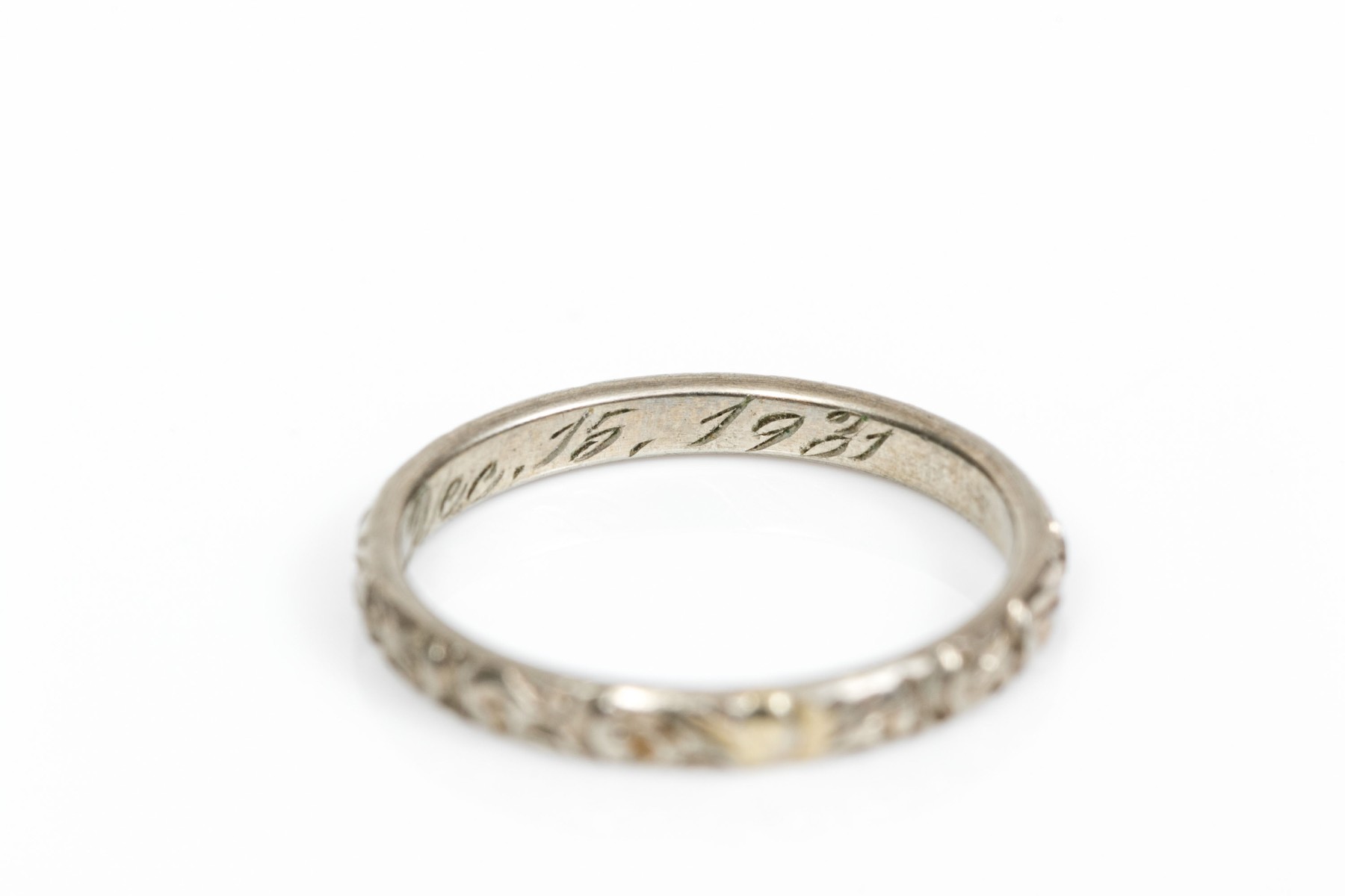 Condition: Bent, engraved, very worn; as-is condition. Please refer to photography for additional conditions information, as this is considered a part of the cataloguing