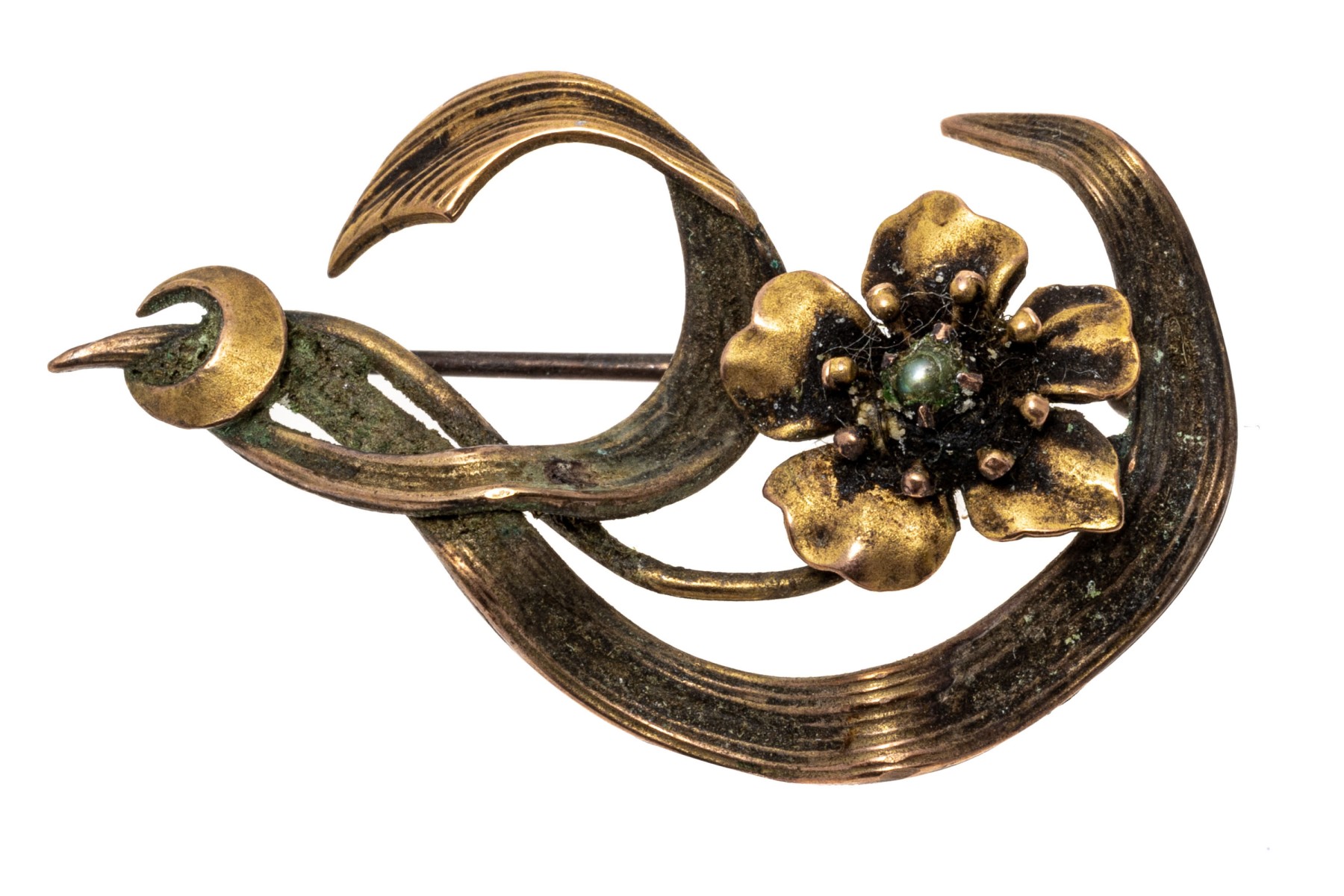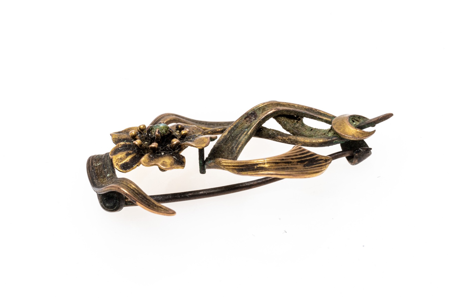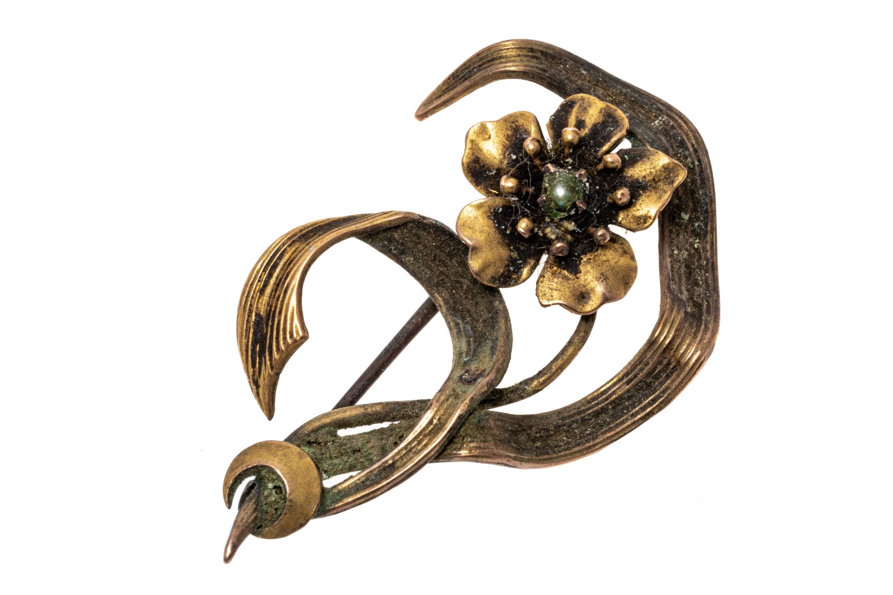 14k gold pretty antique flower and leaf brooch