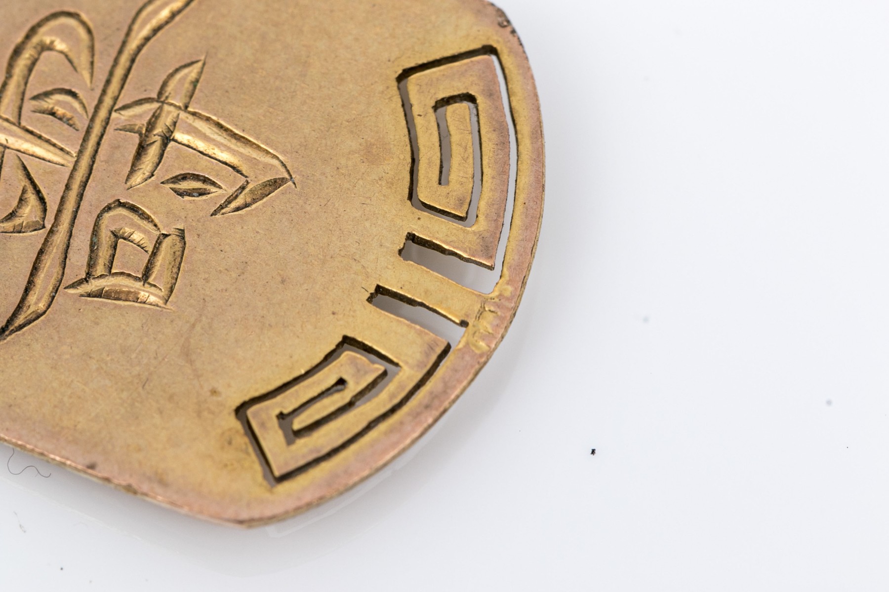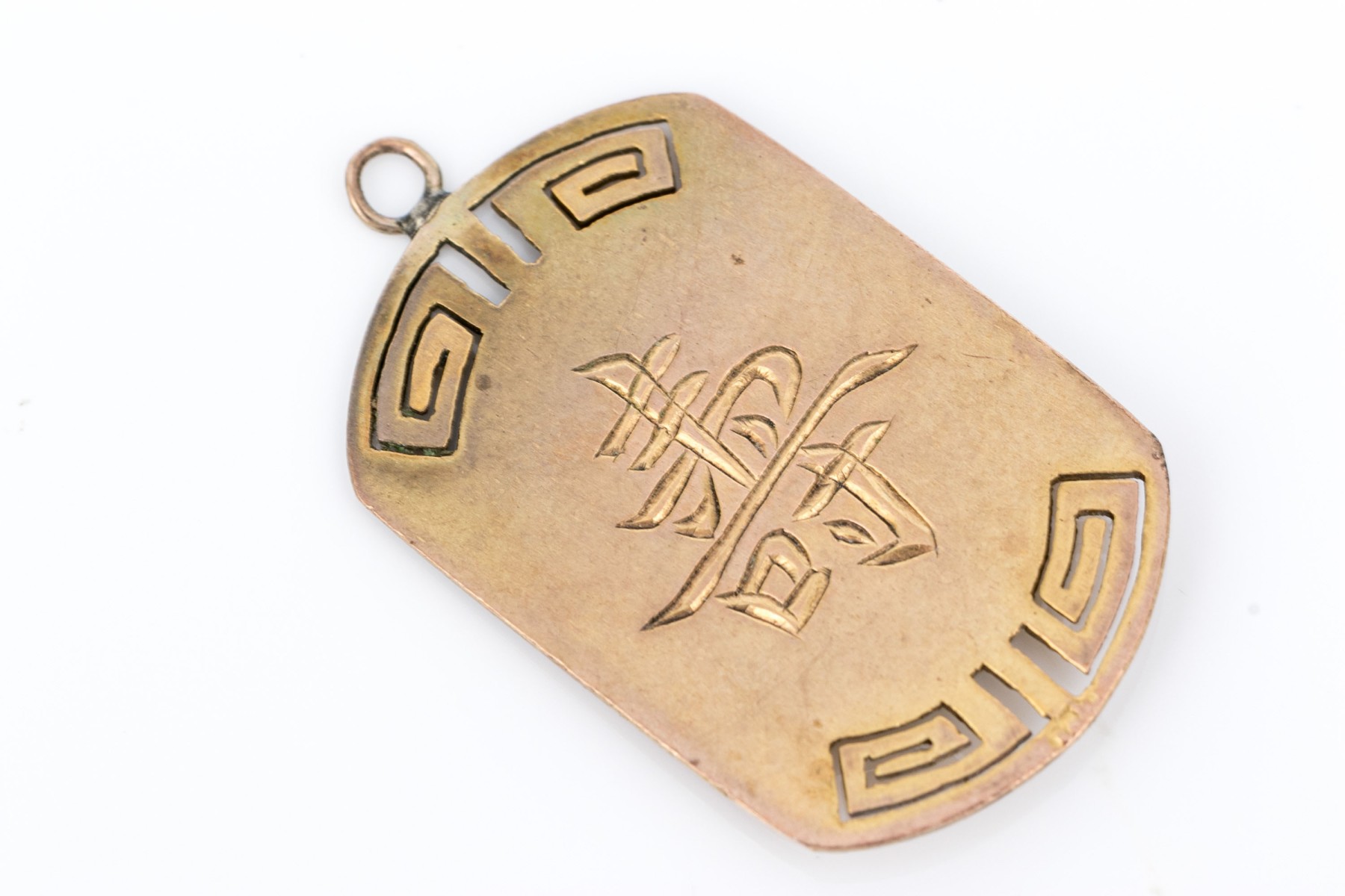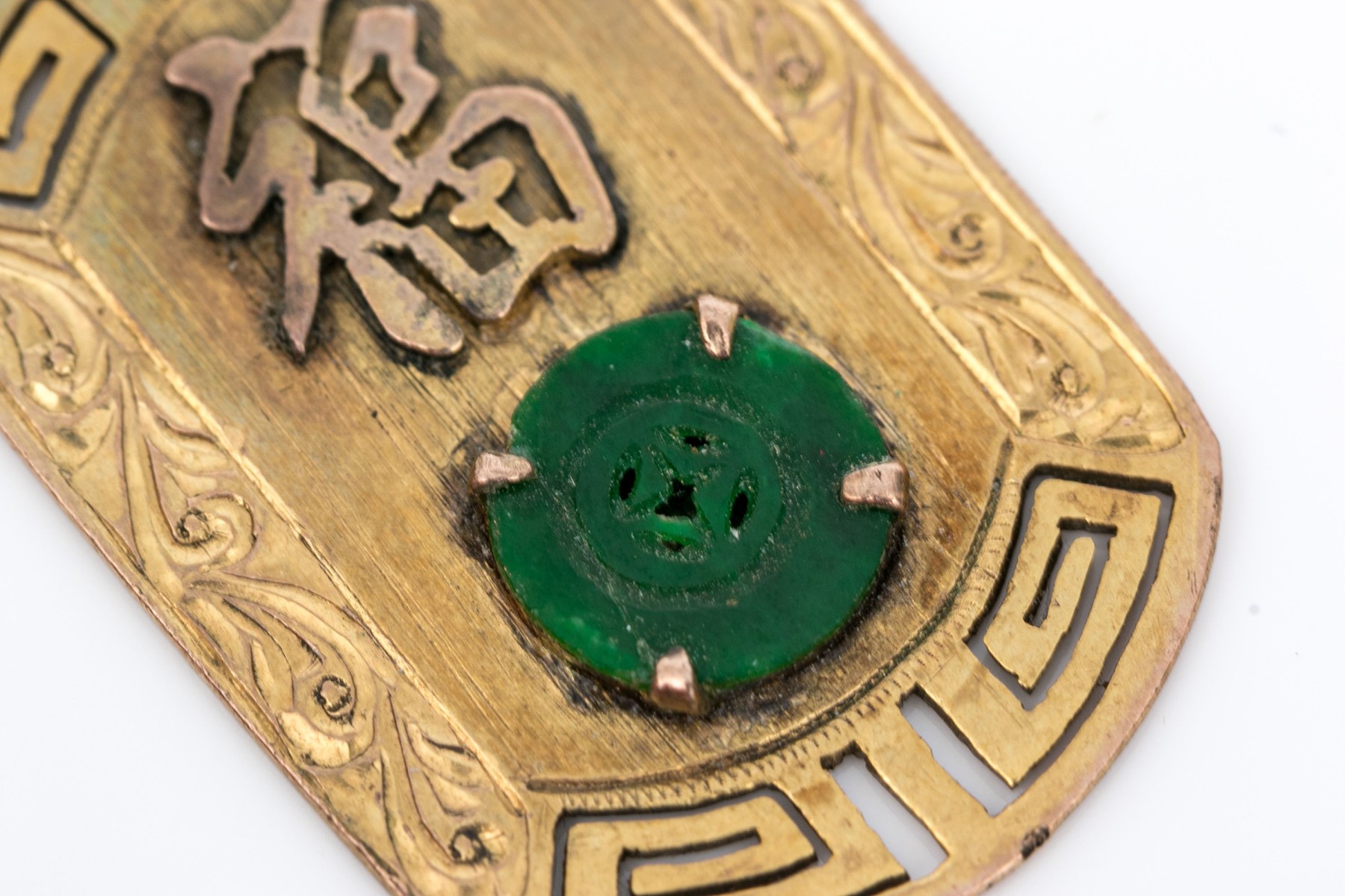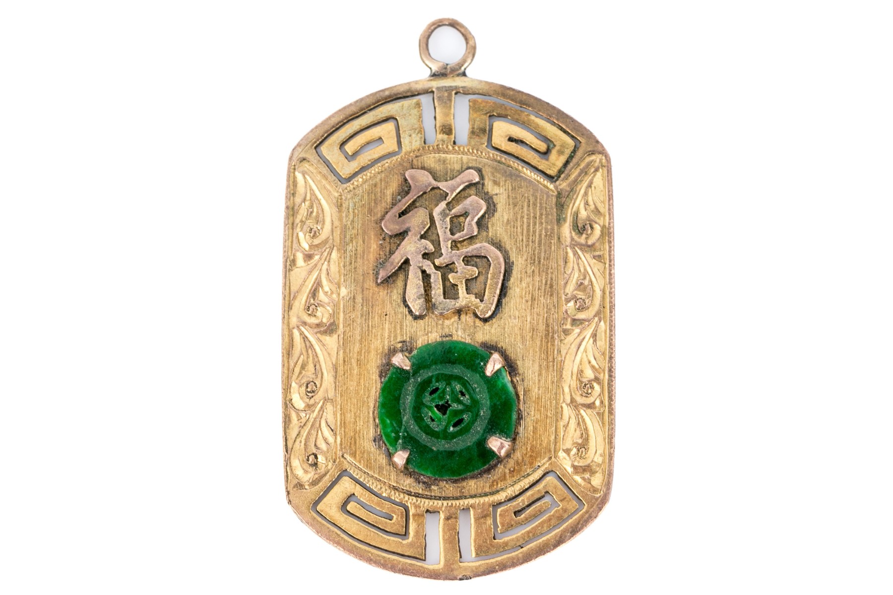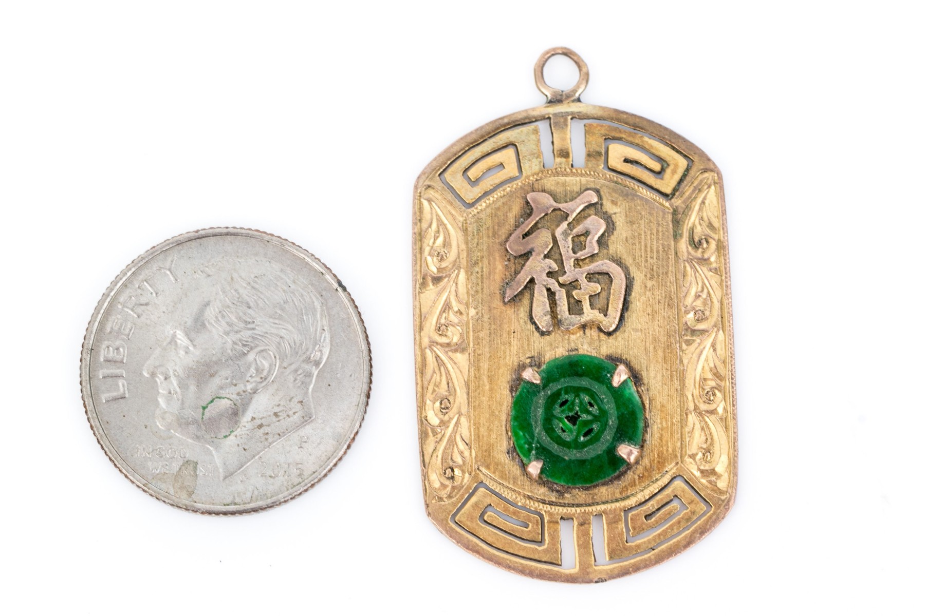 14k gold pretty Chinese calligraphy and jade disc pendant, finished without a bale
