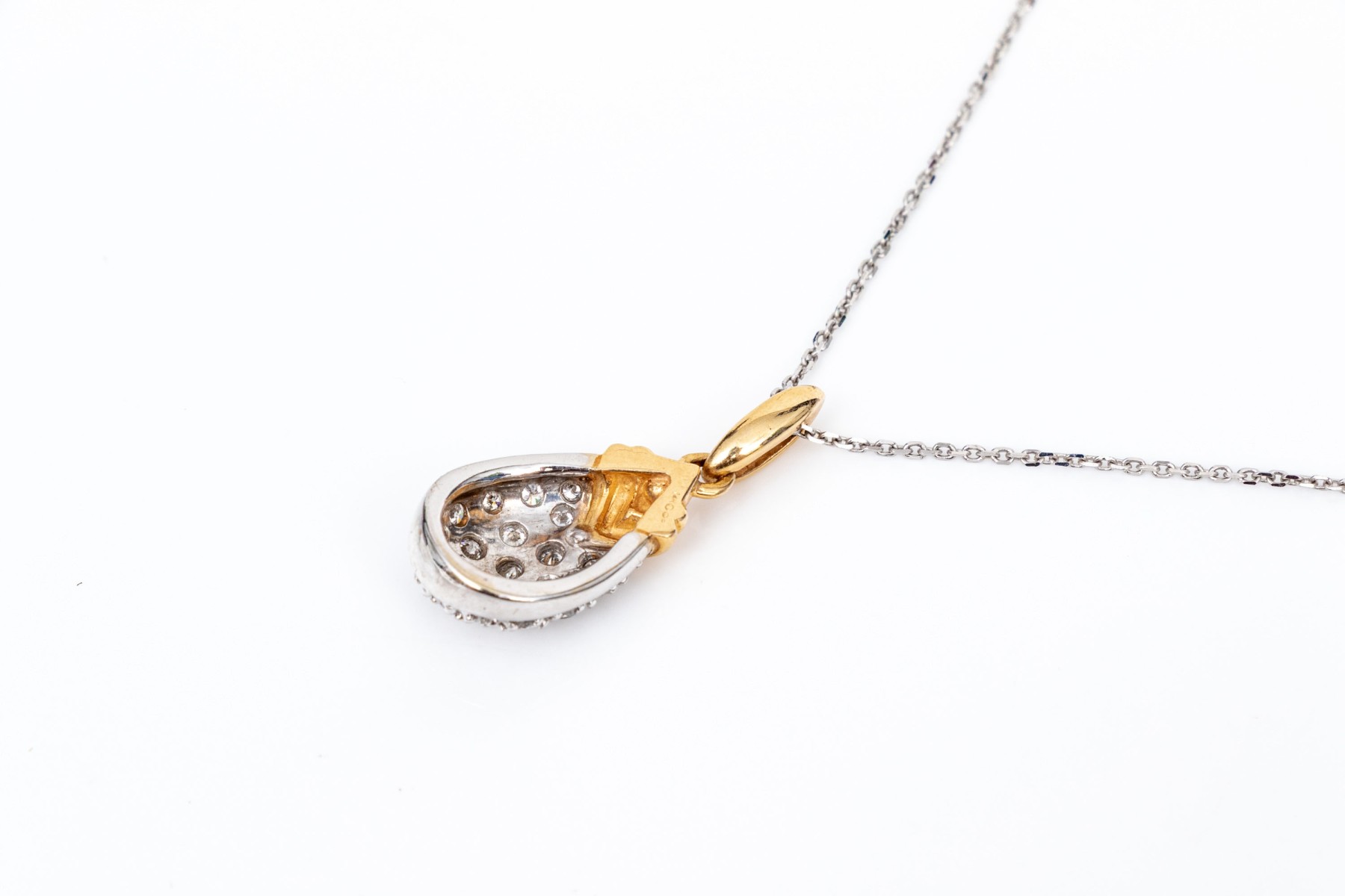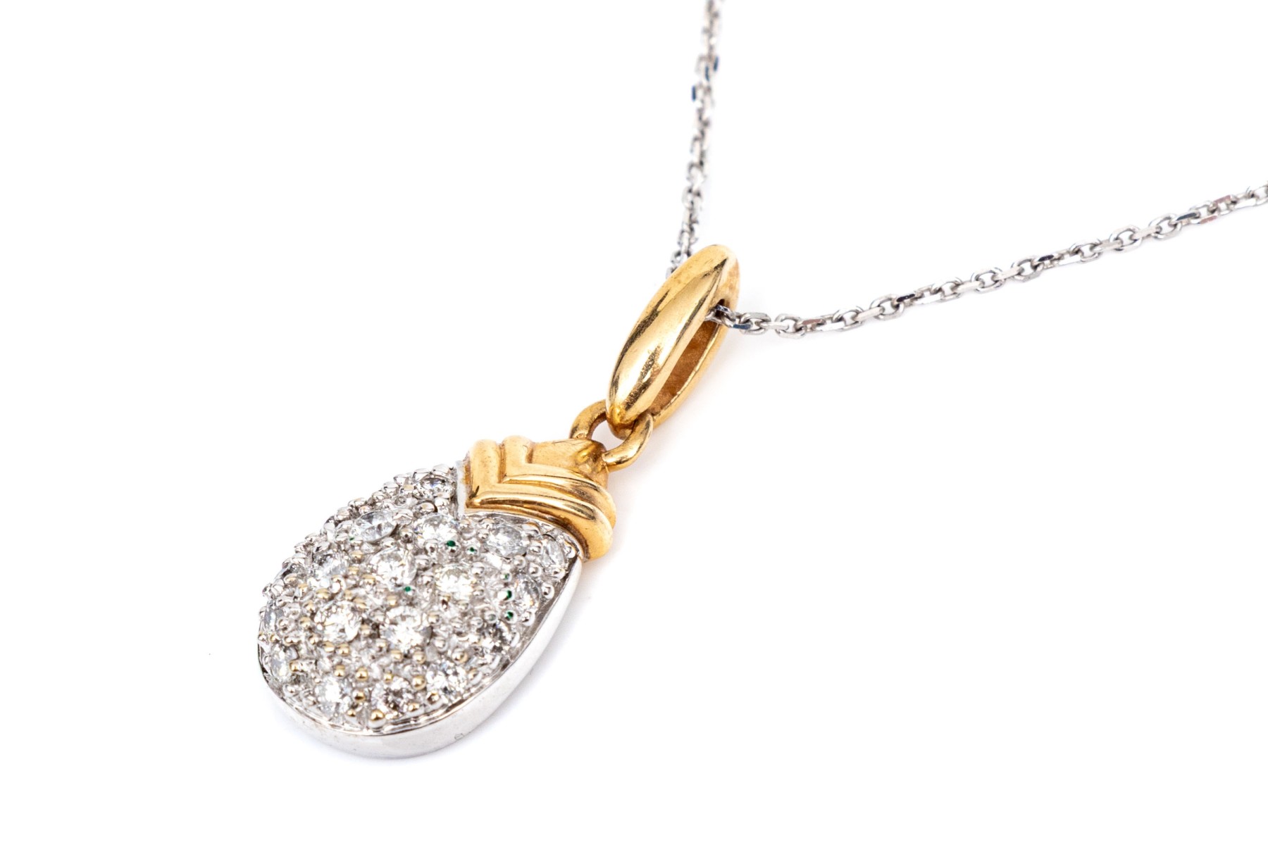 14k gold striking pear profile pave set diamond pendant, app. 0.28 TCW, with chain
