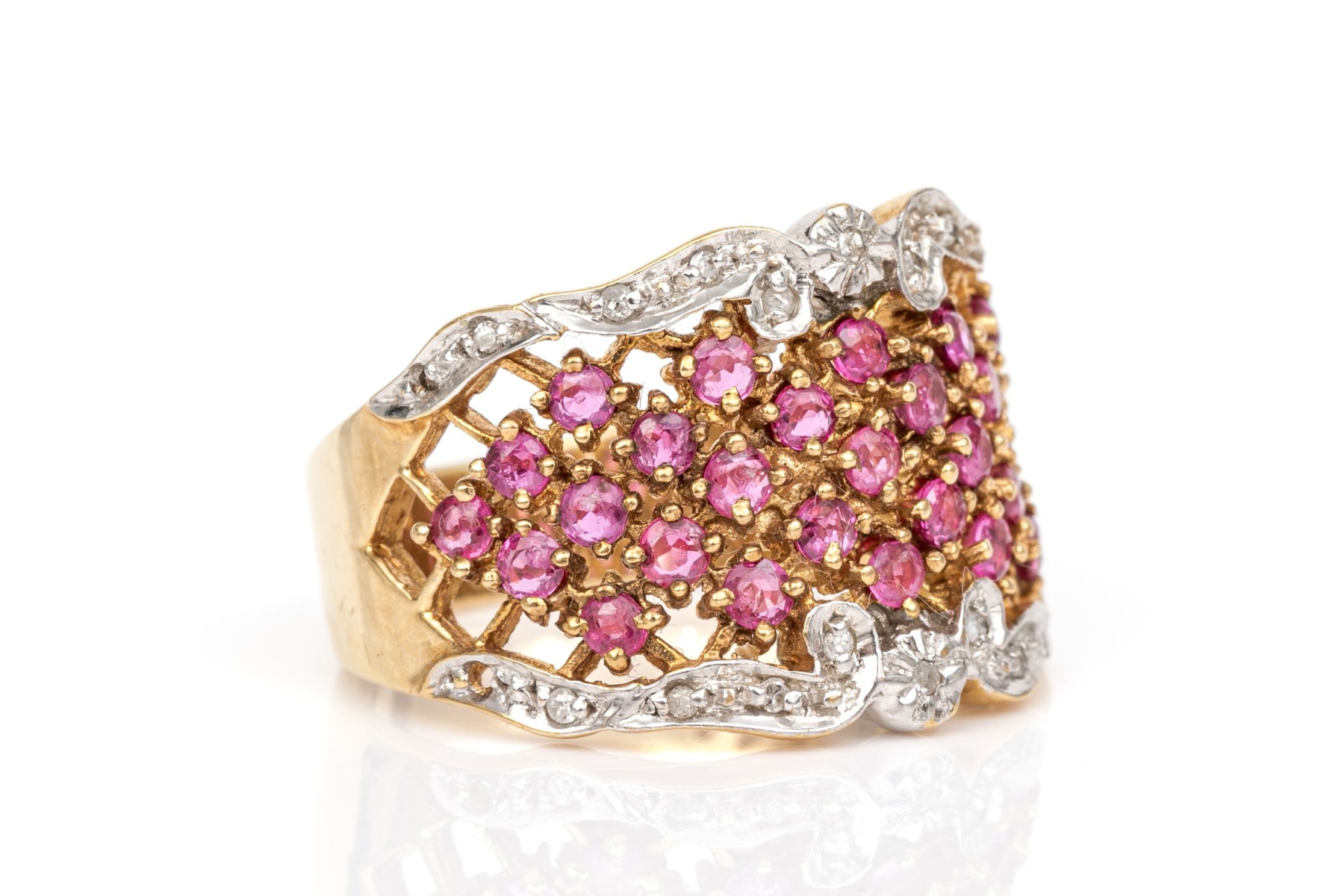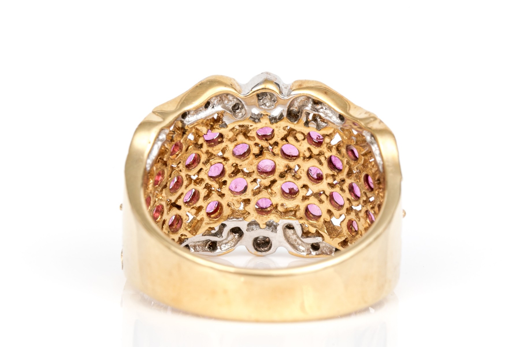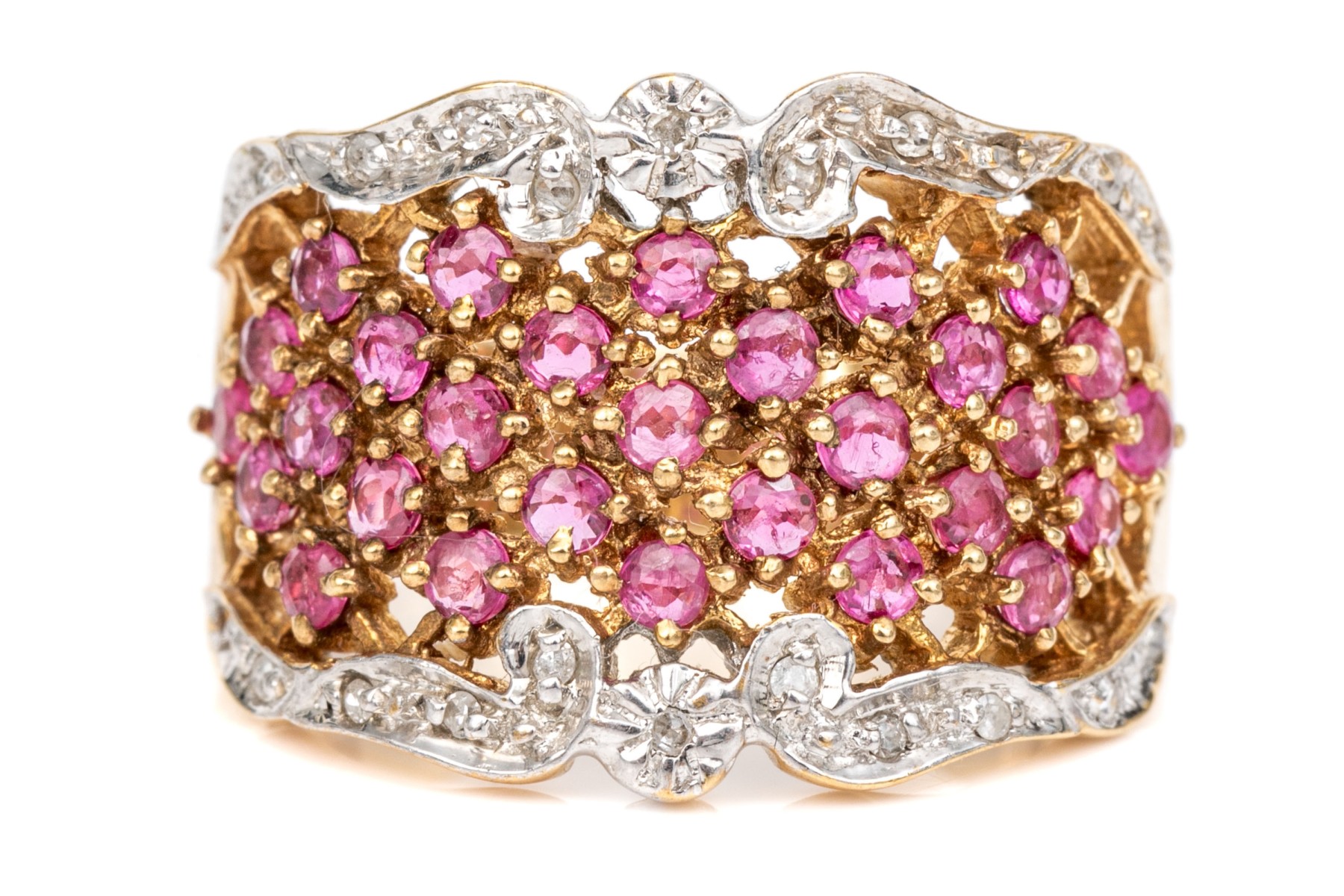 14k Gold Ultra Wide Ruby Set Lattice Patterned Dome Ring, Diamond Accented, Size 7.75+ #258653. Black Rock Galleries provides high end estate liquidation services through online estate auctions and a 50,000 sq ft designer showroom. estate liquidator, estate sale, online auction, antiques, fine art, liquidation, clean outs, auction, consignment, interior design, fine jewelry, collectibles, appraisals, estate appraisals, estate services, decor, furniture, furniture consignment, antique center, consignment shop. We offer appraisal services and specialize in fine art, jewelry, antiques and decorative arts. Sell with us. Black Rock Galleries is the tri-state's largest estate liquidator serving New England and the greater New York City area. We are the trusted source for expert appraisals, auction services, estate sales, and consignments. Black Rock Galleries is the east coast's largest and most trusted estate liquidator, with locations in Connecticut, greater Boston, MA and Raleigh, NC, Fairfield, Southport, Apex, TX. We are the best source for expert appraisals, auction services, estate sales and consignments. We have served thousands of families and estates with compassion, professionalism and expertise. BRG works with attorneys, executors, realtors and families to bring the greatest return on personal and estate property in the current market. Our unique combination of services make us the easy choice to get the job done in a timely and stress-free manner. We are with you from the initial consultation to the final clean out. Our house-built online auction software platform offers clients a dynamic approach to liquidating their personal property. This venue is most successful in bringing the best return with the least amount of disruption for our clients. See our services page for a complete description of this offering. 14k Gold Ultra Wide Ruby Set Lattice Patterned Dome Ring, Diamond Accented, Size 7.75+ #258653