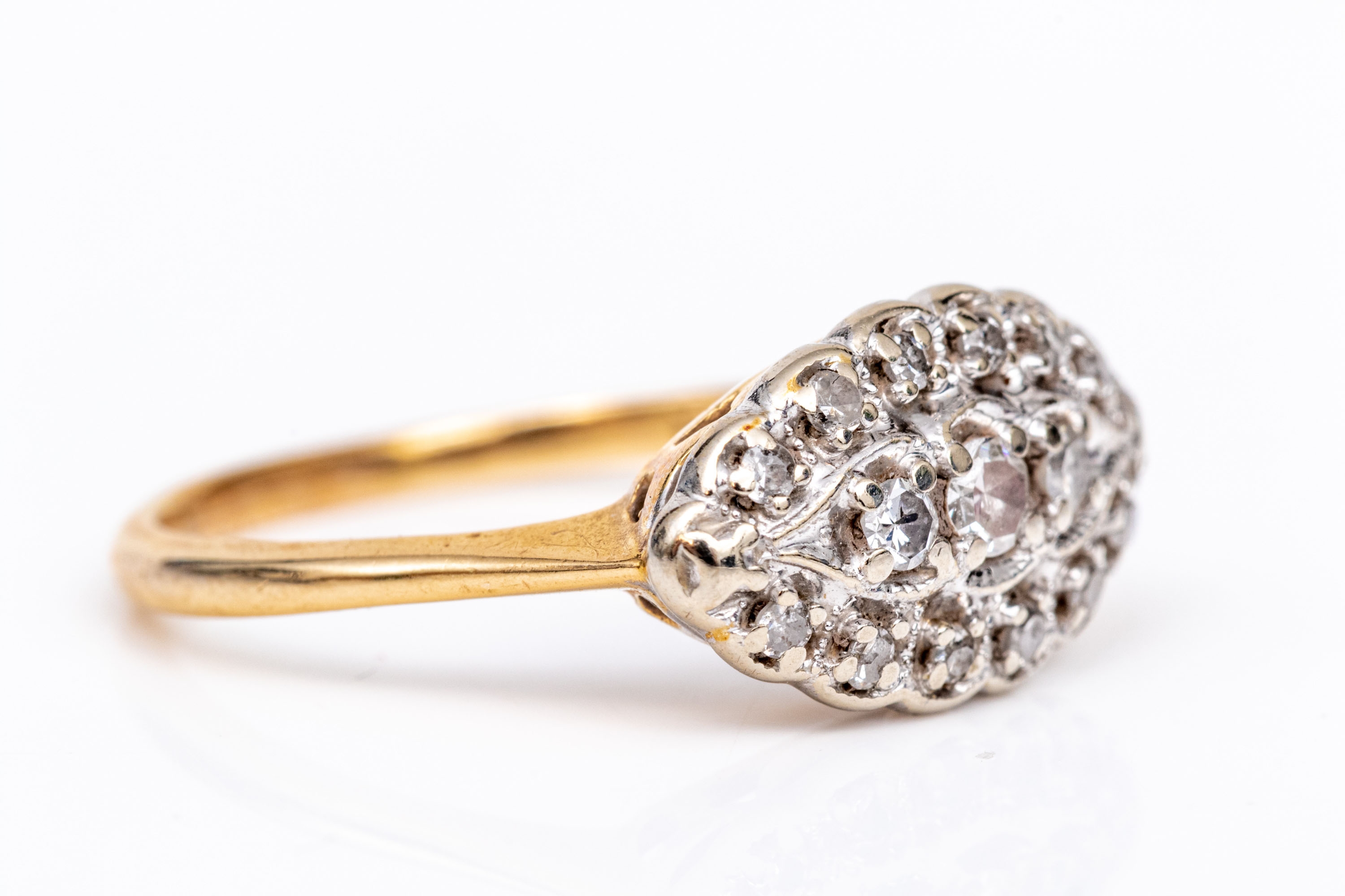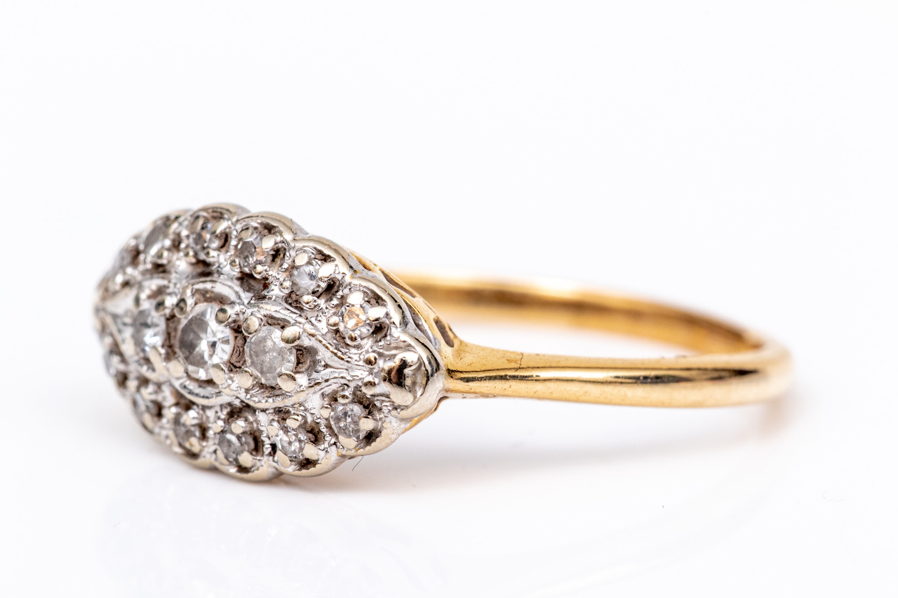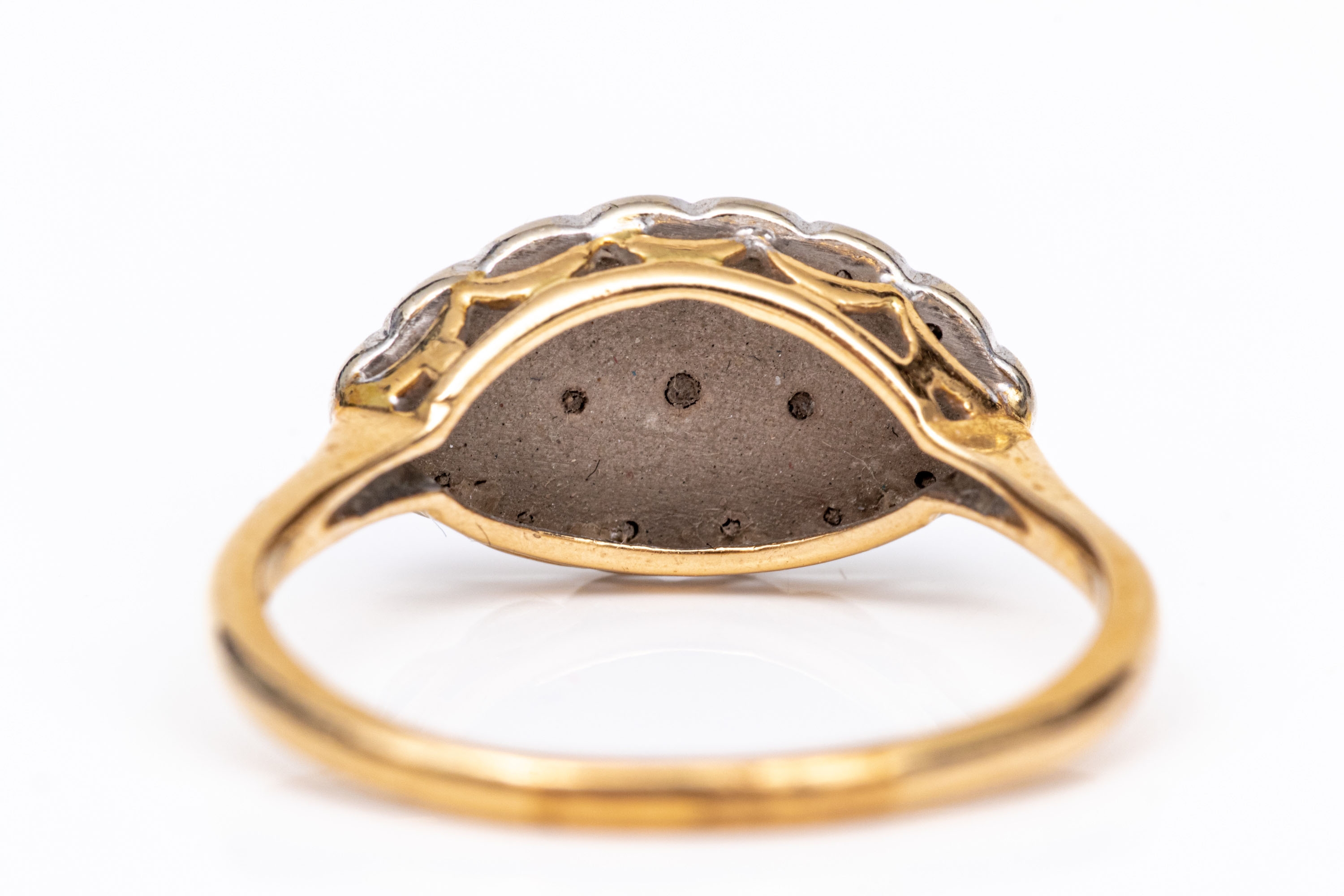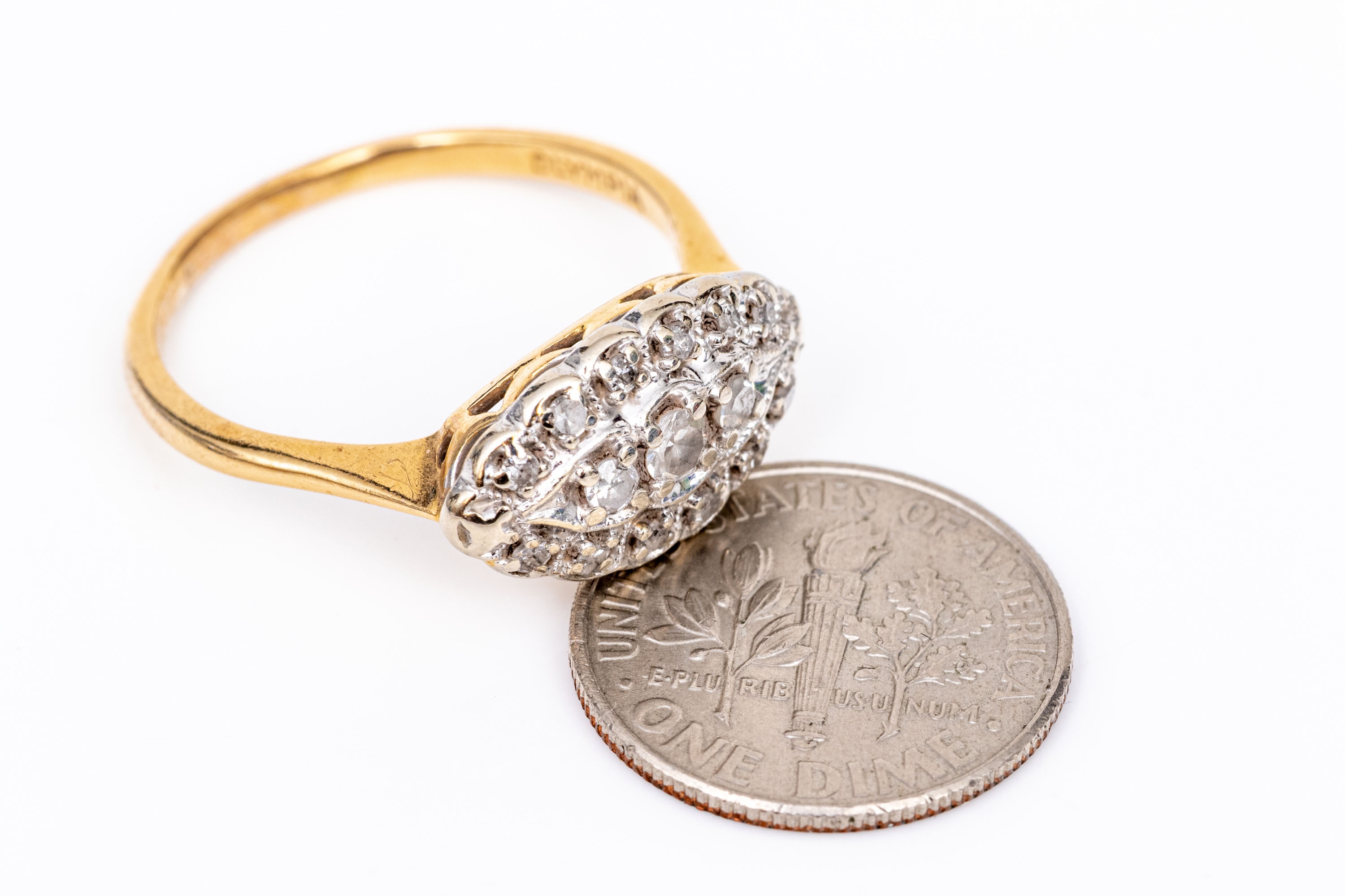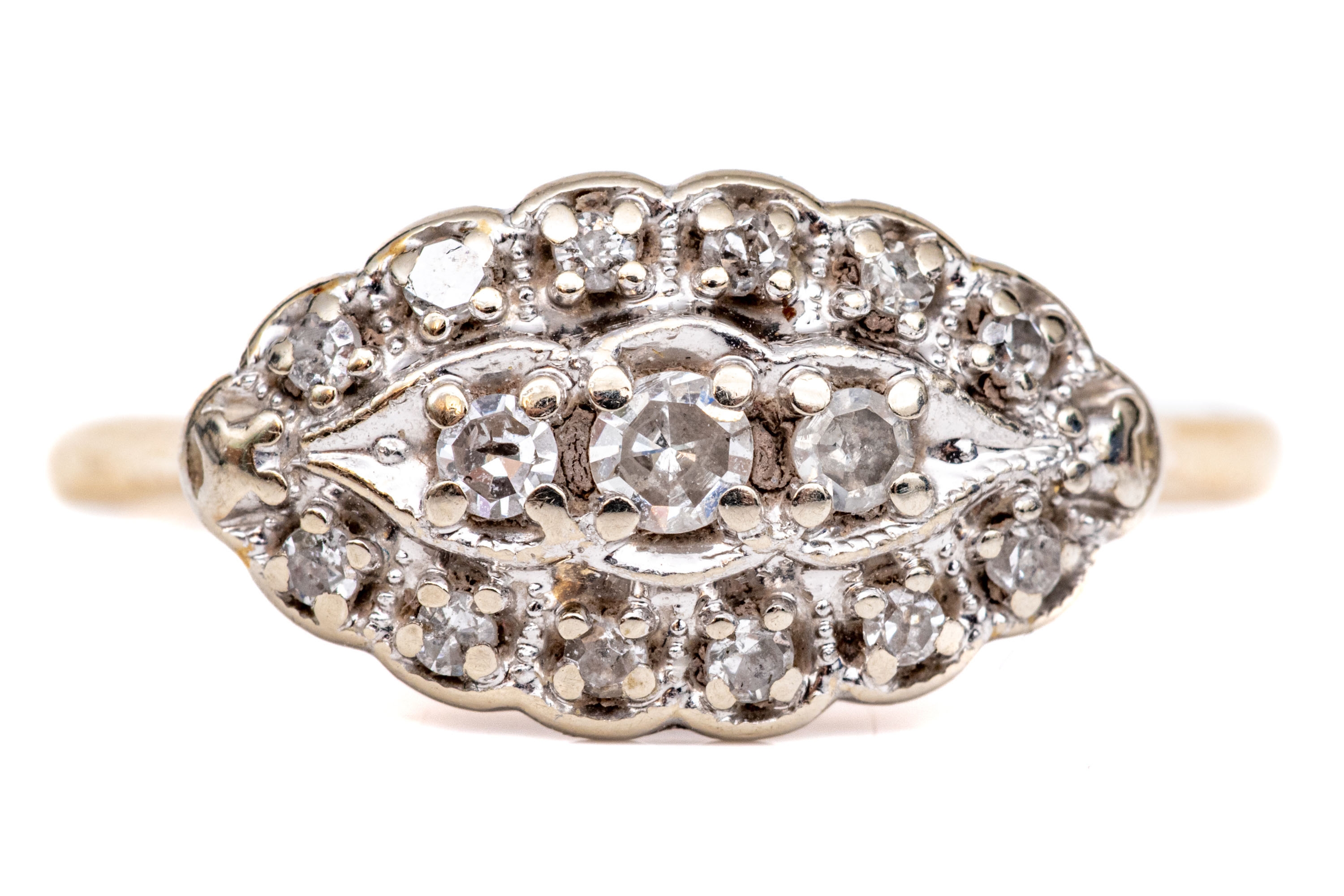 14k yellow gold vintage horizontal navette profile diamond set cluster ring, app. 0.15 TCW, size 9.25, I3 diamonds