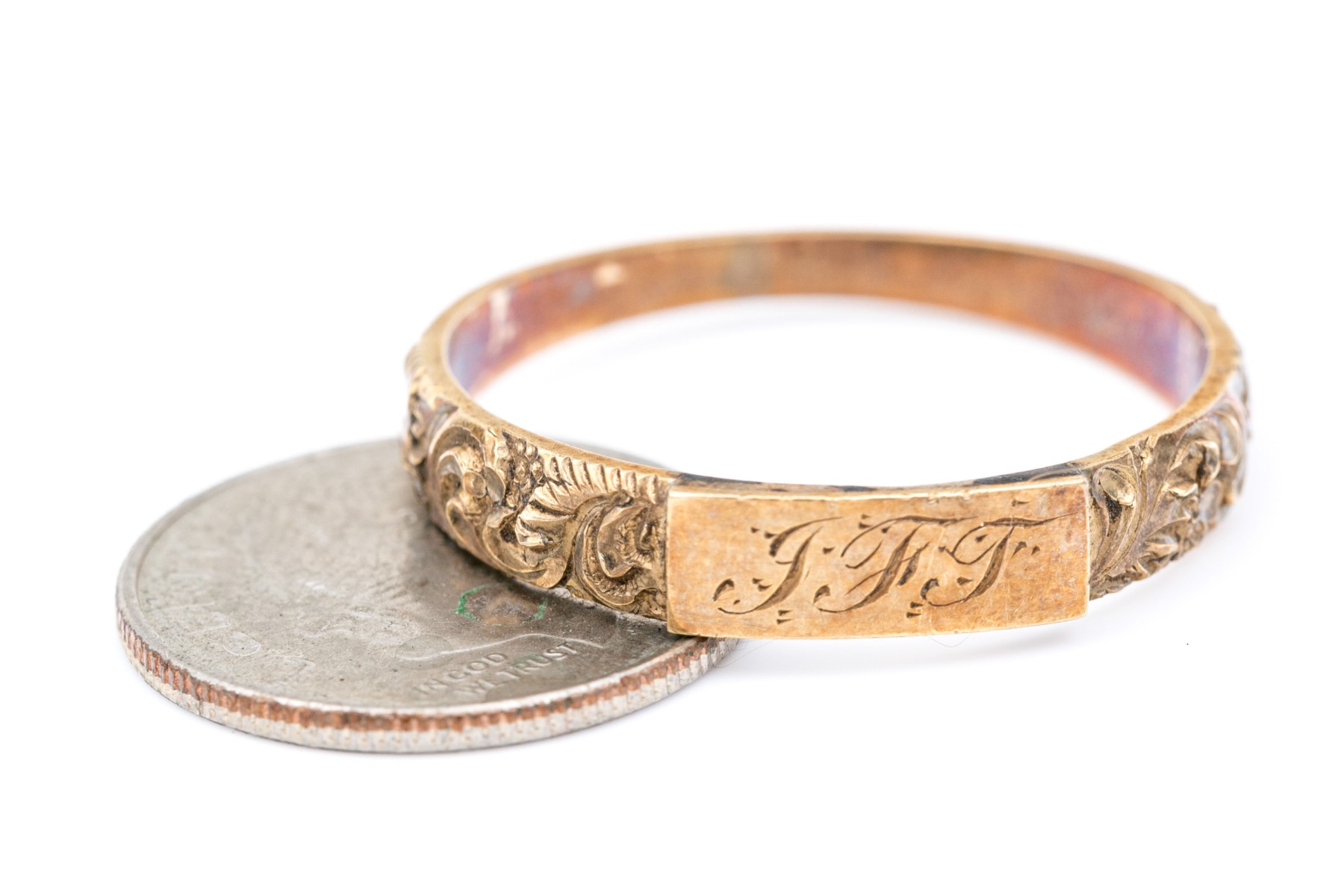 14k Gold Wonderful Antique Acanthus Leaf Edged Monogrammed Band Ring, Size 11.5 #310492. Black Rock Galleries provides high end estate liquidation services through online estate auctions and a 50,000 sq ft designer showroom. estate liquidator, estate sale, online auction, antiques, fine art, liquidation, clean outs, auction, consignment, interior design, fine jewelry, collectibles, appraisals, estate appraisals, estate services, decor, furniture, furniture consignment, antique center, consignment shop. We offer appraisal services and specialize in fine art, jewelry, antiques and decorative arts. Sell with us. Black Rock Galleries is the tri-state's largest estate liquidator serving New England and the greater New York City area. We are the trusted source for expert appraisals, auction services, estate sales, and consignments. Black Rock Galleries is the east coast's largest and most trusted estate liquidator, with locations in Connecticut, greater Boston, MA and Raleigh, NC, Fairfield, Southport, Apex, TX. We are the best source for expert appraisals, auction services, estate sales and consignments. We have served thousands of families and estates with compassion, professionalism and expertise. BRG works with attorneys, executors, realtors and families to bring the greatest return on personal and estate property in the current market. Our unique combination of services make us the easy choice to get the job done in a timely and stress-free manner. We are with you from the initial consultation to the final clean out. Our house-built online auction software platform offers clients a dynamic approach to liquidating their personal property. This venue is most successful in bringing the best return with the least amount of disruption for our clients. See our services page for a complete description of this offering. 14k Gold Wonderful Antique Acanthus Leaf Edged Monogrammed Band Ring, Size 11.5 #310492
