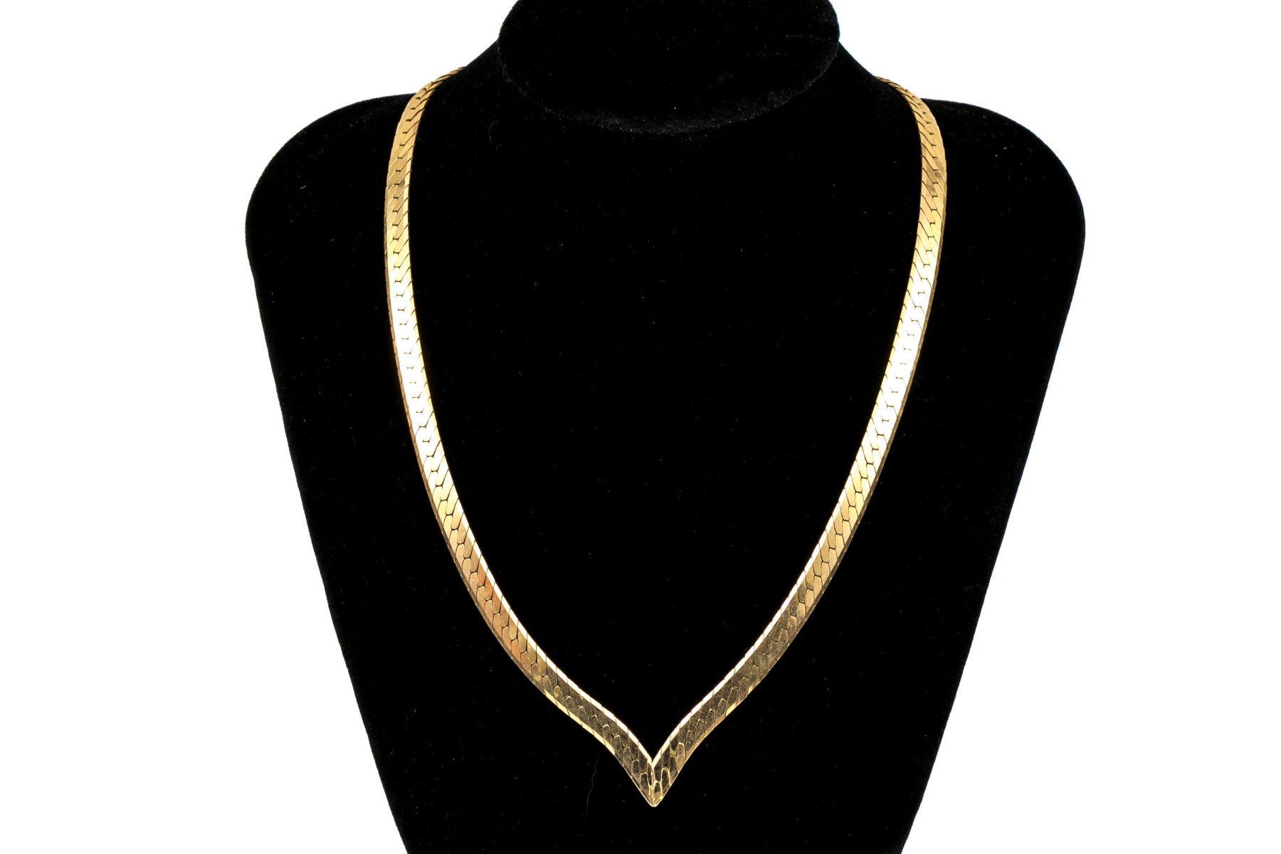14K Italian Herringbone Chevron Chain Necklace #299676. Black Rock Galleries provides high end estate liquidation services through online estate auctions and a 50,000 sq ft designer showroom. estate liquidator, estate sale, online auction, antiques, fine art, liquidation, clean outs, auction, consignment, interior design, fine jewelry, collectibles, appraisals, estate appraisals, estate services, decor, furniture, furniture consignment, antique center, consignment shop. We offer appraisal services and specialize in fine art, jewelry, antiques and decorative arts. Sell with us. Black Rock Galleries is the tri-state's largest estate liquidator serving New England and the greater New York City area. We are the trusted source for expert appraisals, auction services, estate sales, and consignments. Black Rock Galleries is the east coast's largest and most trusted estate liquidator, with locations in Connecticut, greater Boston, MA and Raleigh, NC, Fairfield, Southport, Apex, TX. We are the best source for expert appraisals, auction services, estate sales and consignments. We have served thousands of families and estates with compassion, professionalism and expertise. BRG works with attorneys, executors, realtors and families to bring the greatest return on personal and estate property in the current market. Our unique combination of services make us the easy choice to get the job done in a timely and stress-free manner. We are with you from the initial consultation to the final clean out. Our house-built online auction software platform offers clients a dynamic approach to liquidating their personal property. This venue is most successful in bringing the best return with the least amount of disruption for our clients. See our services page for a complete description of this offering. 14K Italian Herringbone Chevron Chain Necklace #299676