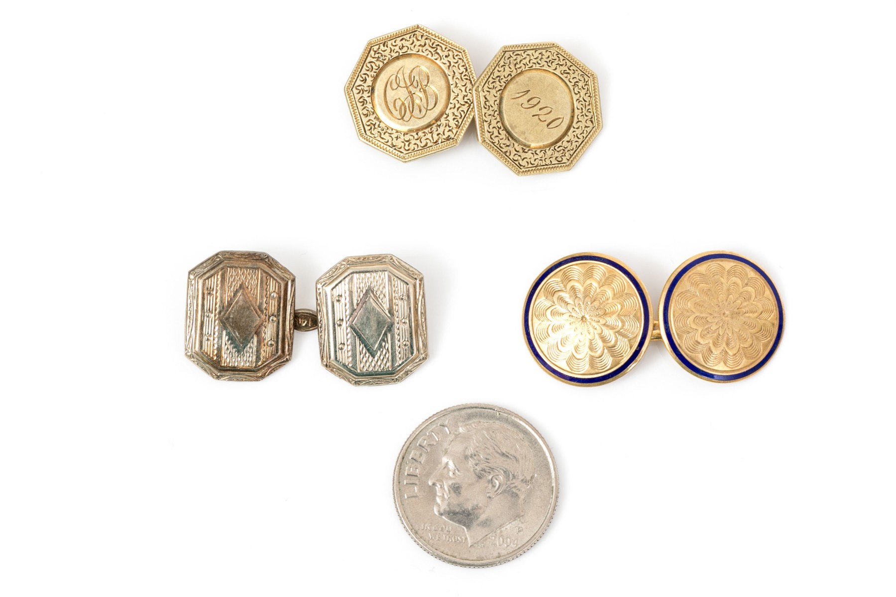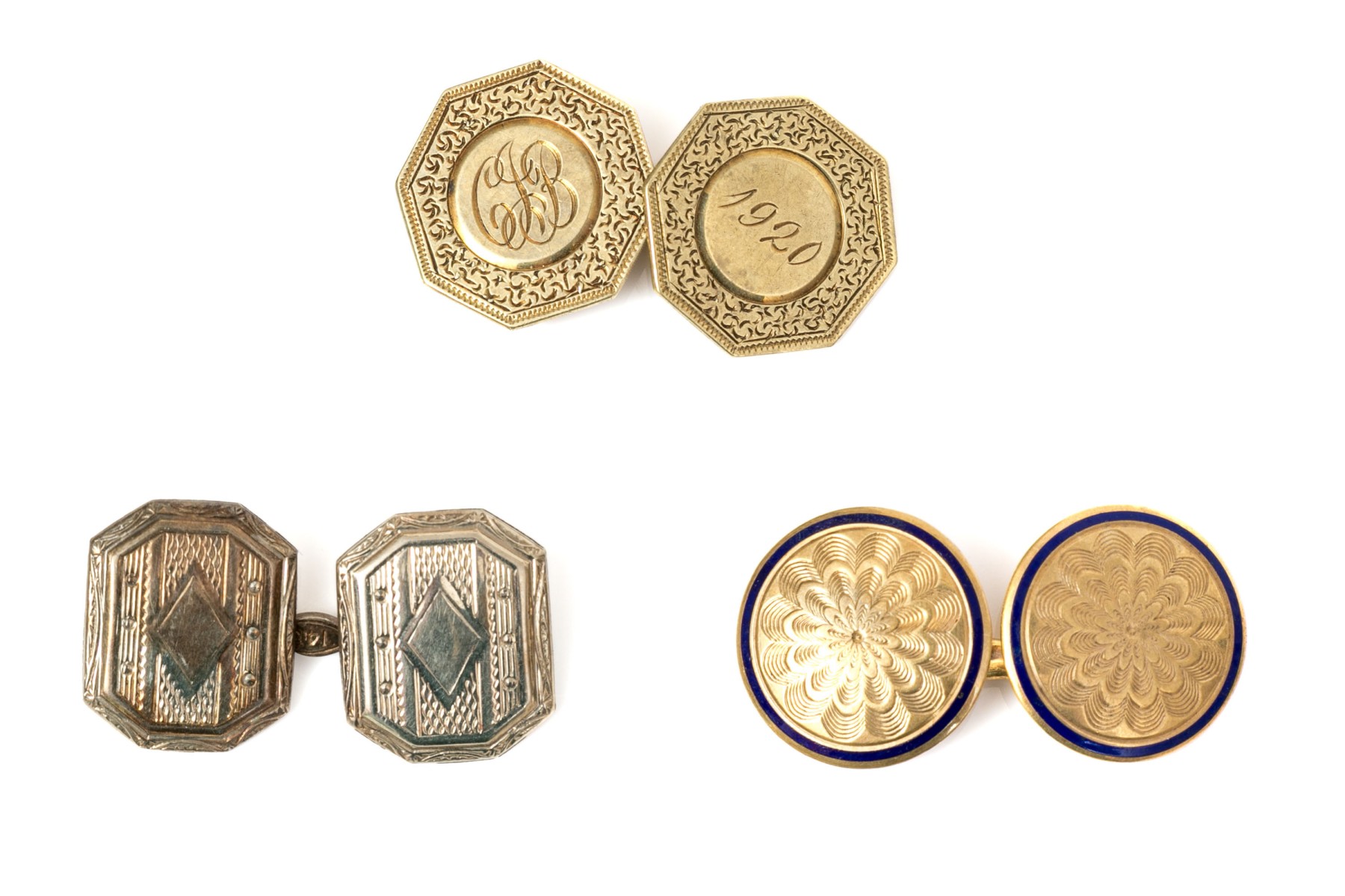 Condition: Assorted estate conditions, incuding tarnish, scratching, some wear, losses, engraving, missing half pairs of cufflinks, in as-is condition. Please refer to photography for additional conditions information, as this is considered a part of the cataloguing
