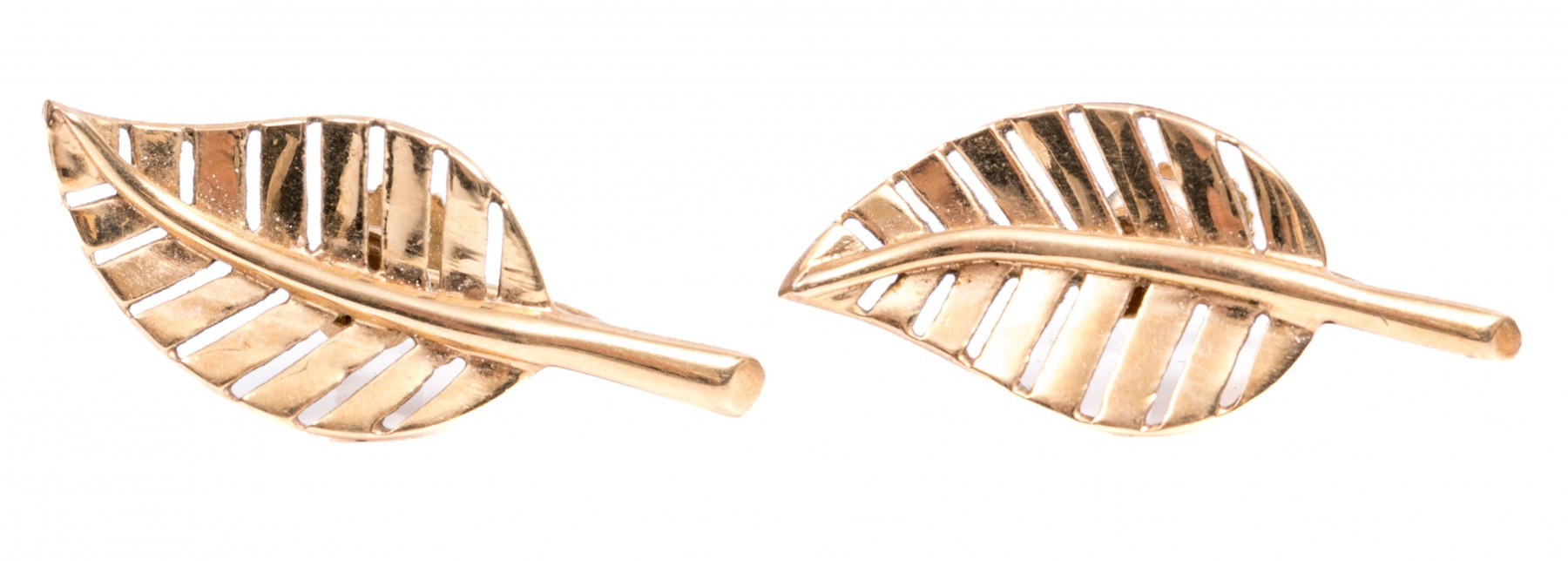 A pair of 14K yellow gold screw clip back earrings. The face of these earrings have an opposing open leaf design with a bright polished finish.