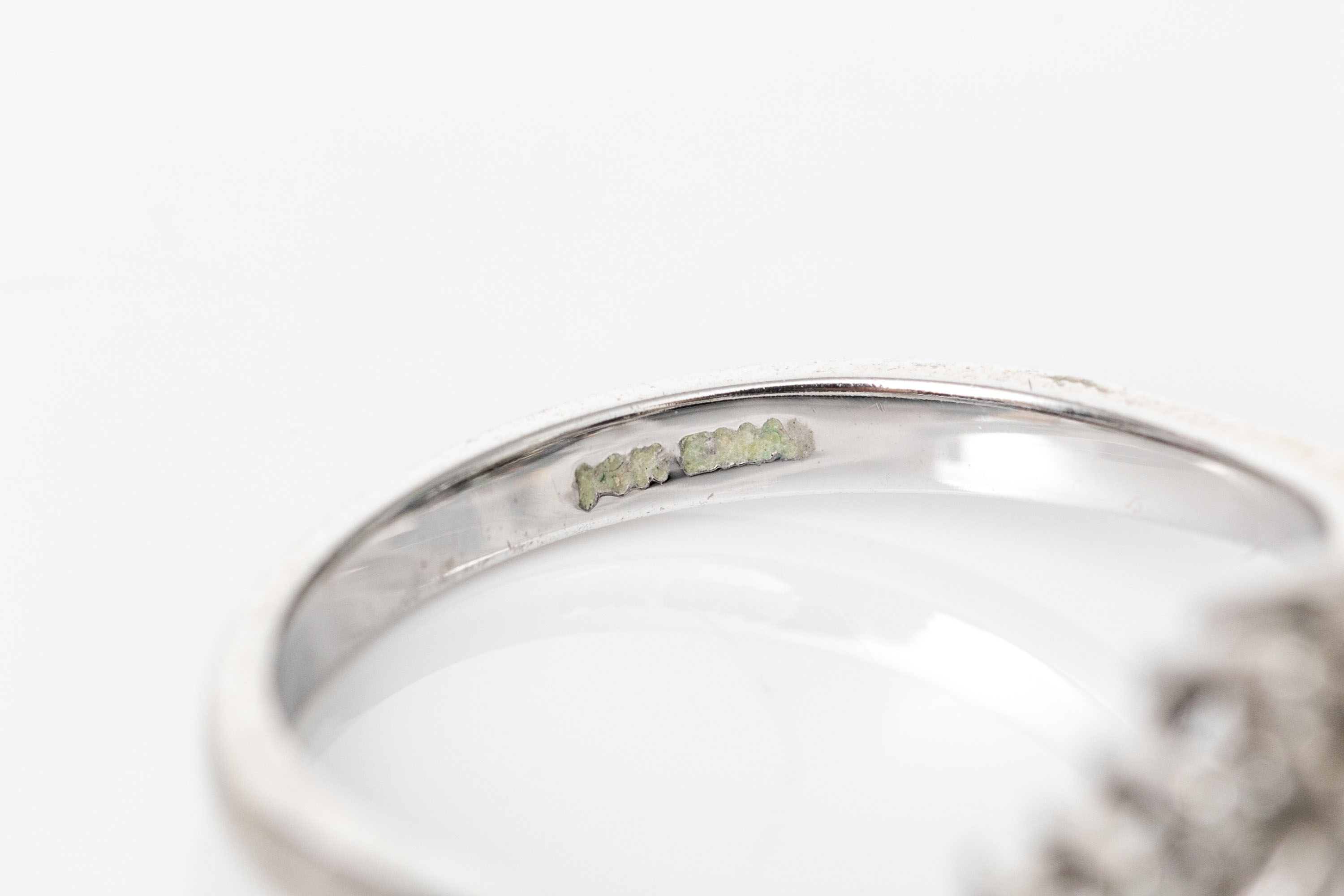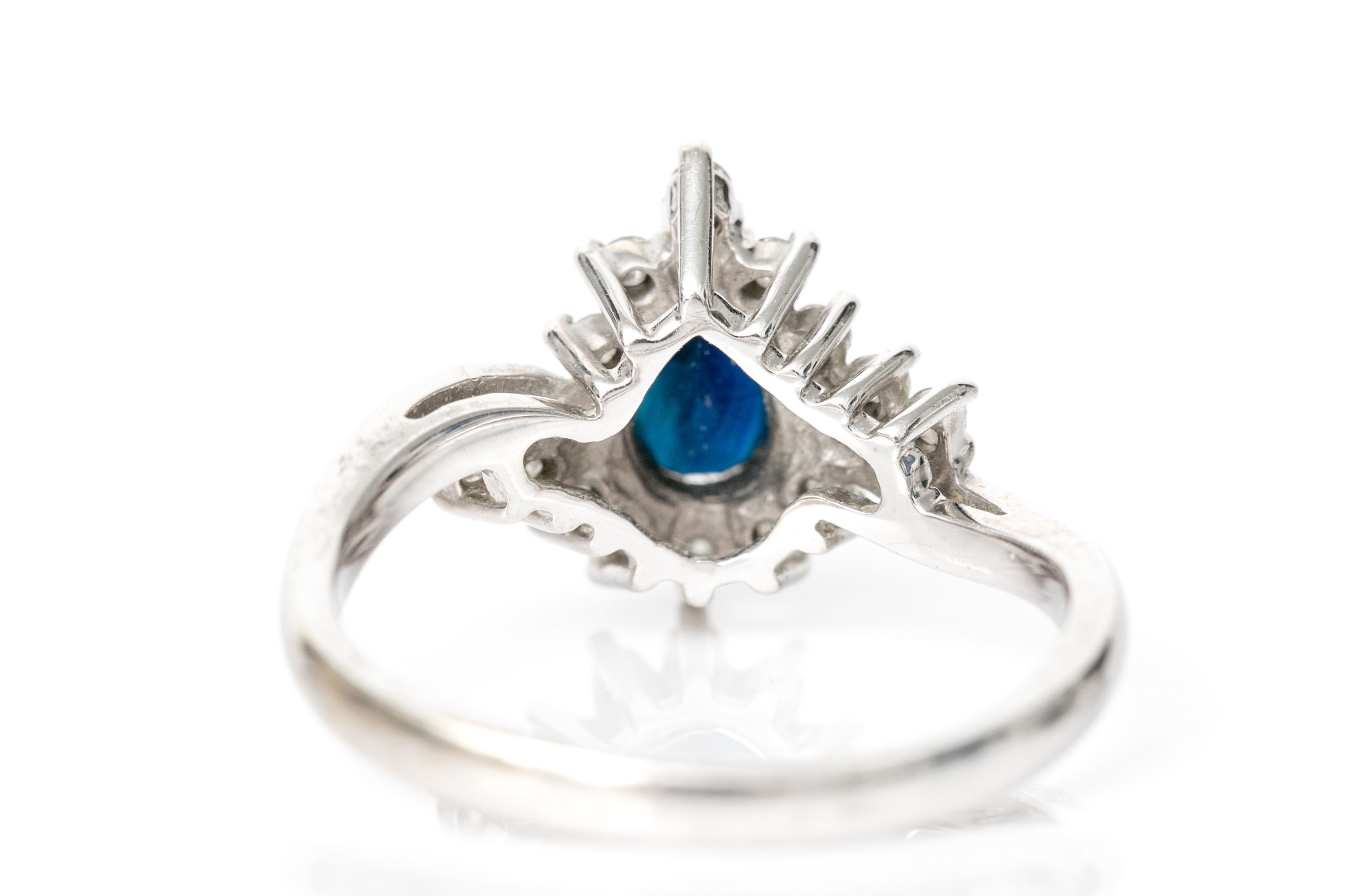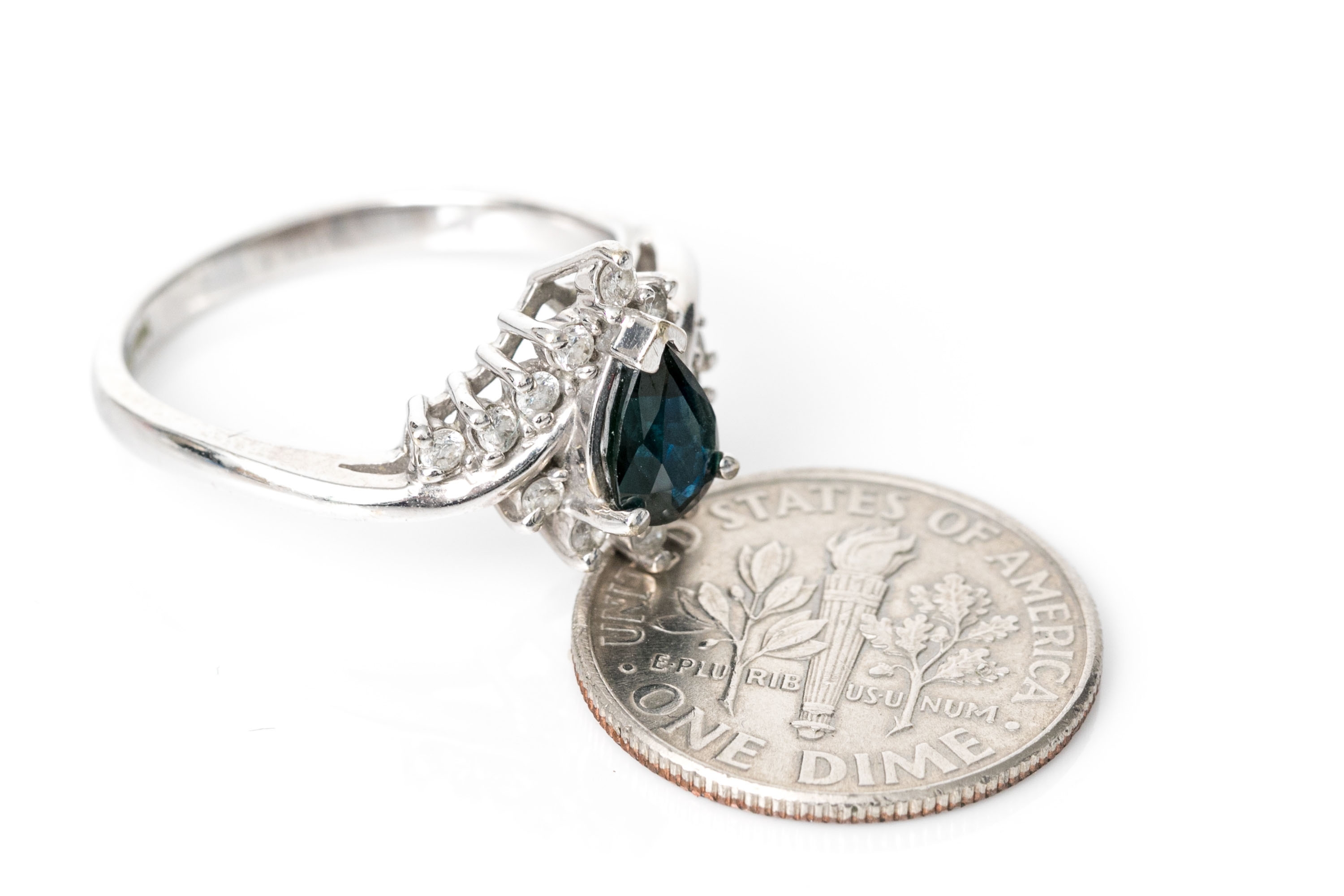 14k white gold sapphire and diamond bypass cluster ring, app. 0.14 TCW in diamonds, size 6.5