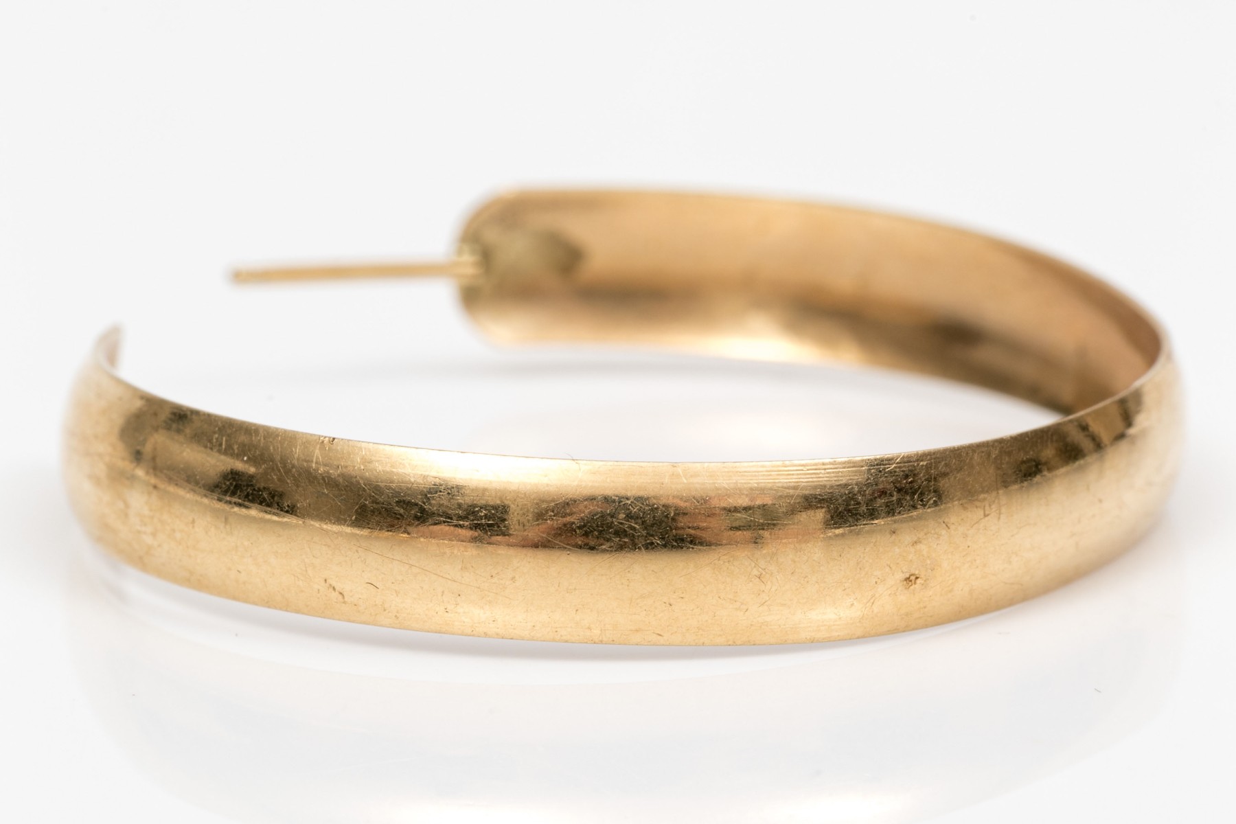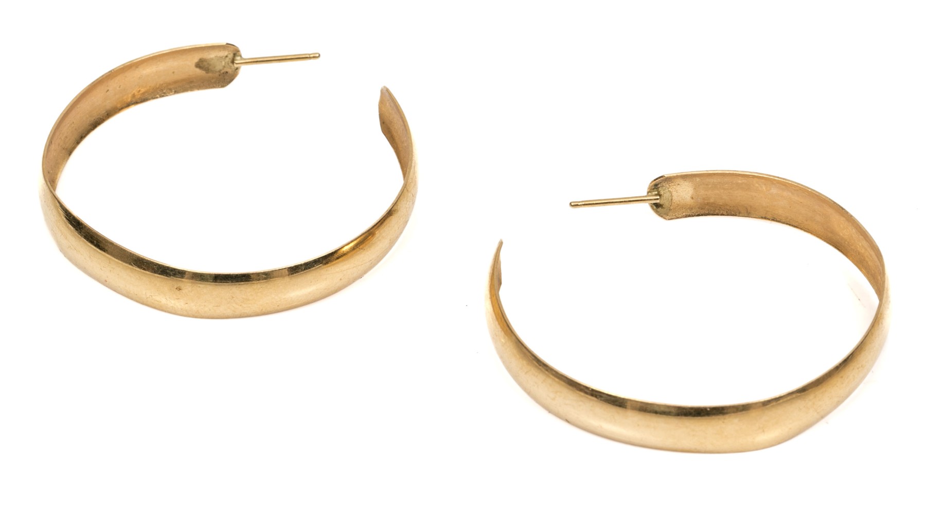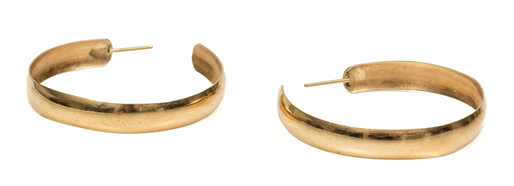 14K yellow gold hoop earrings. The earrings have a simple design with post backings.