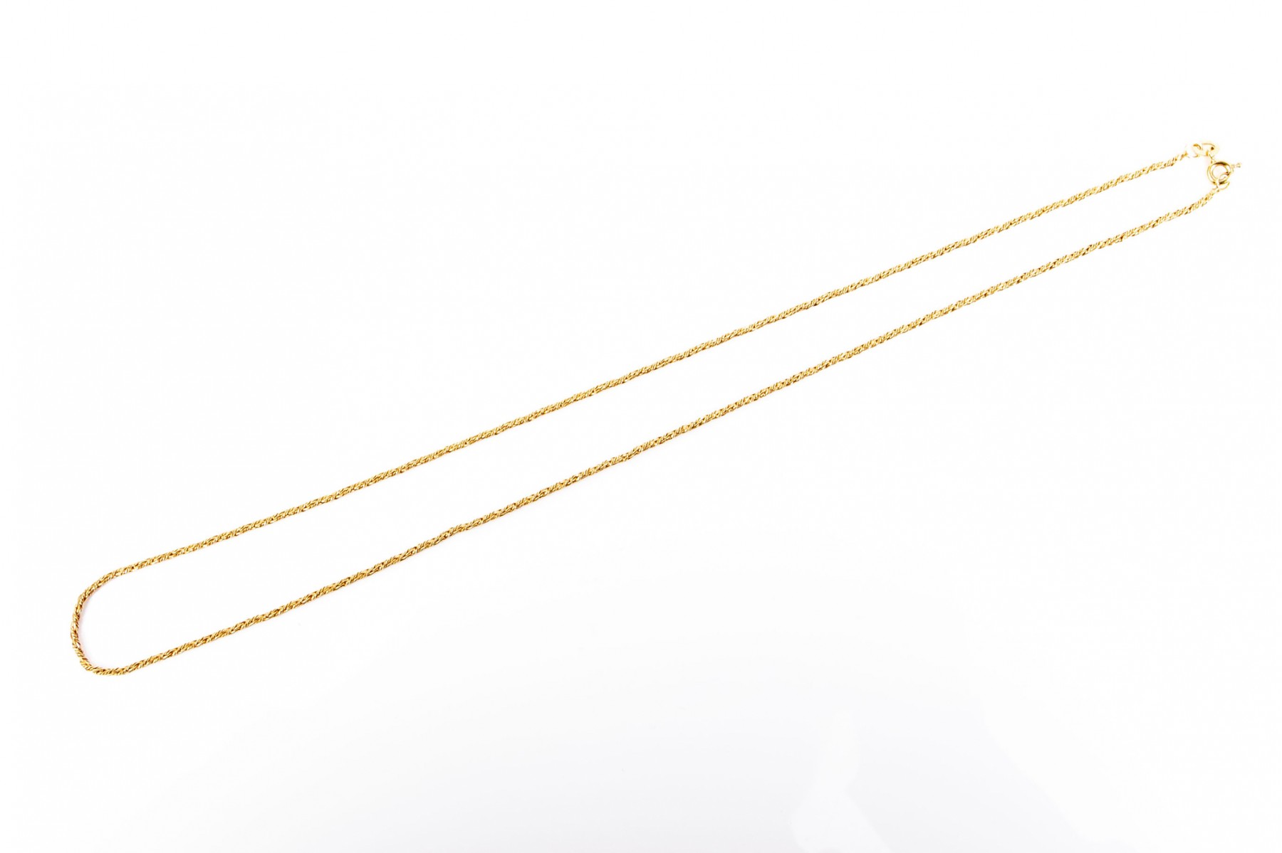 14K yellow gold twist cable chain necklace with a shimmering appearance. Spring ring clasp.