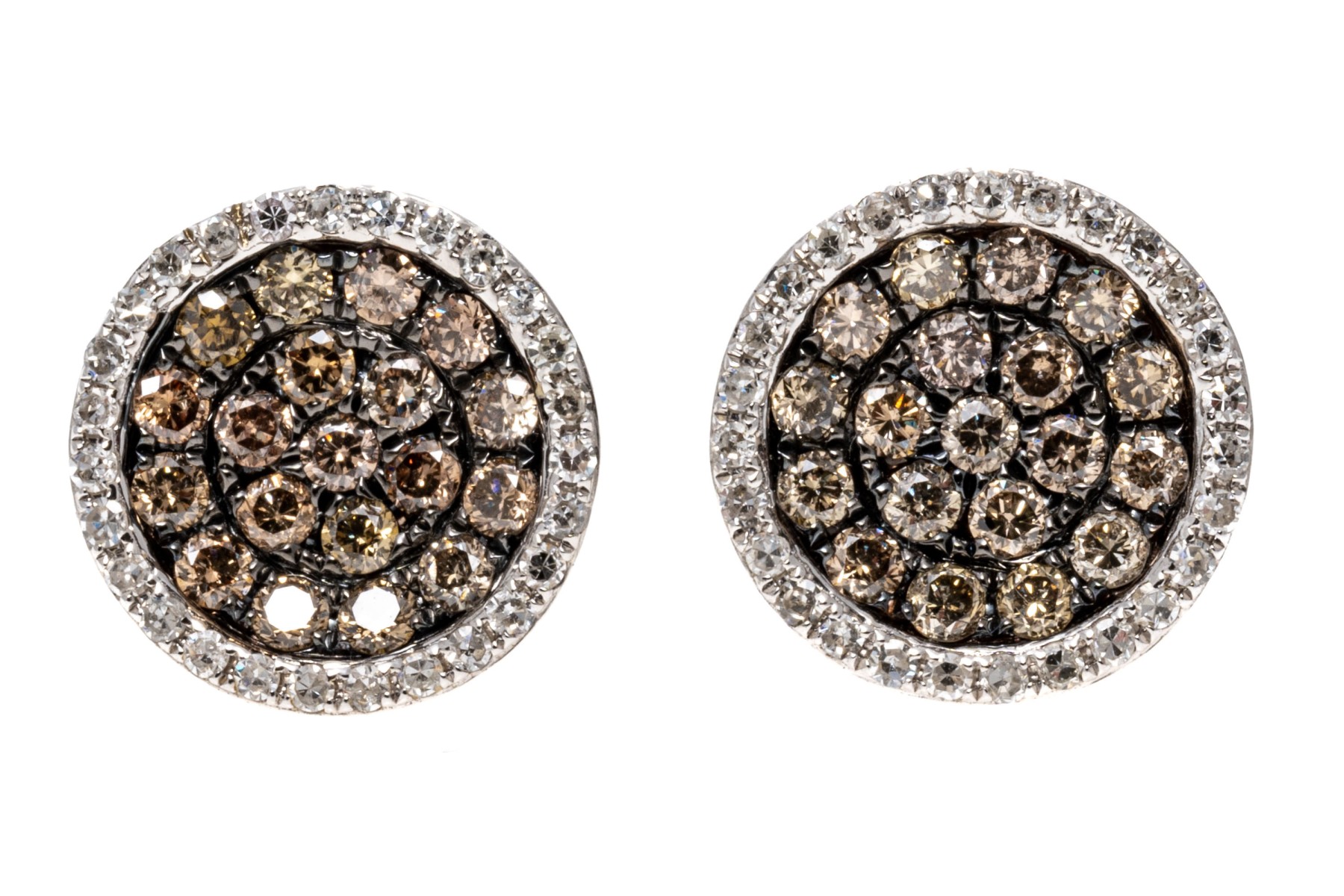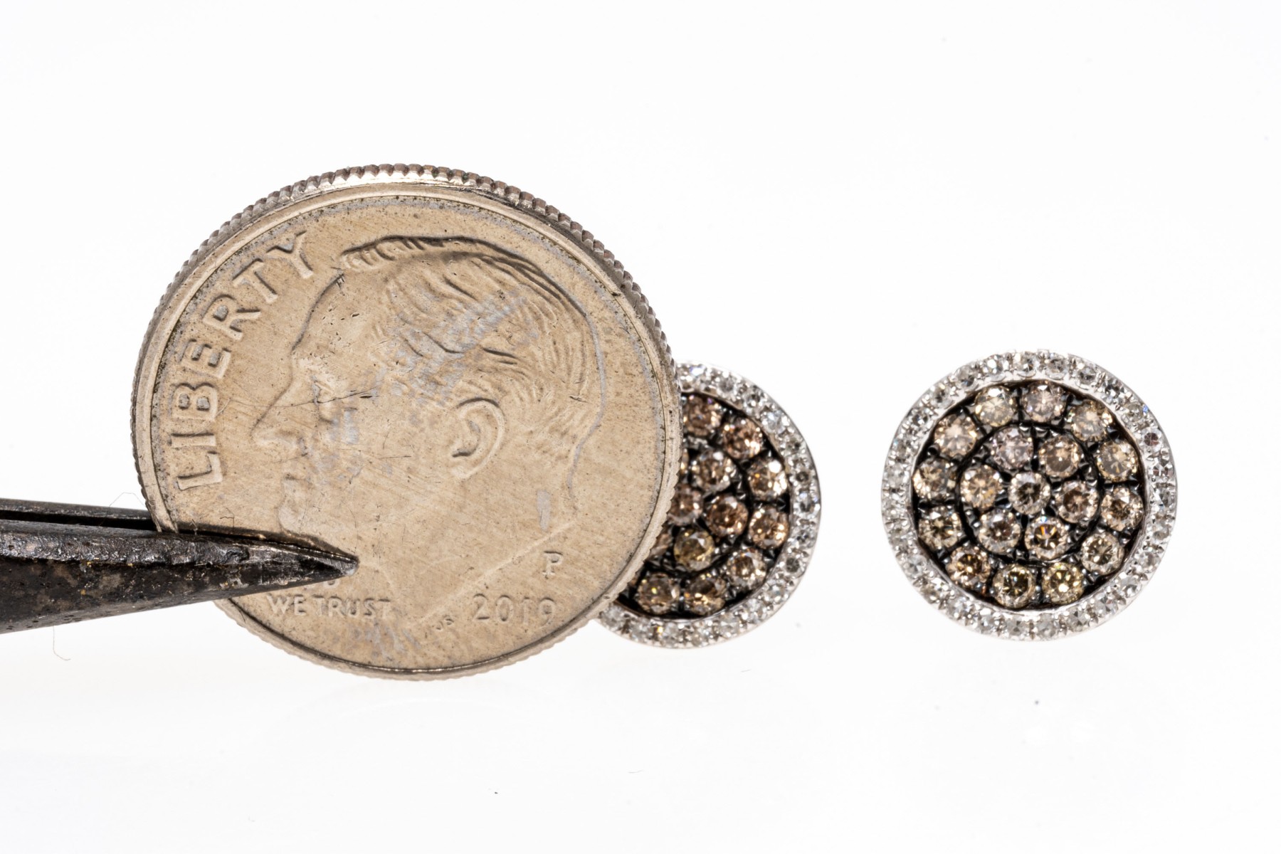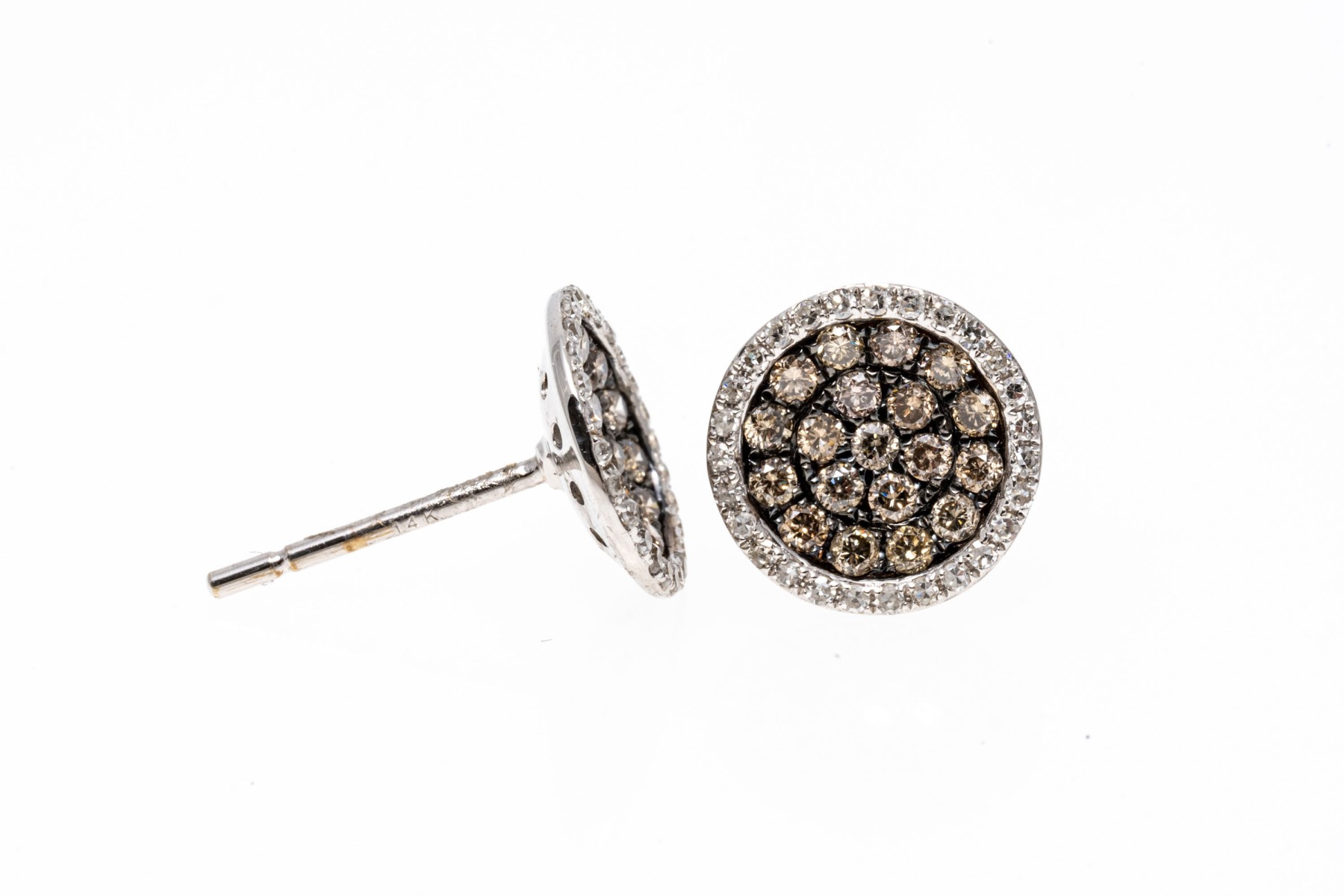14k white gold beautiful brown and white pave set diamond earrings, approximately 0.66 TCW. The earrings are finished with posts and clutch style backs