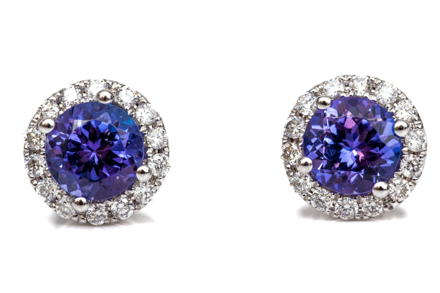 14k white gold beautiful tanzanite and diamond halo earrings, app. 0.83 TCW, finished with posts and clutch style backs