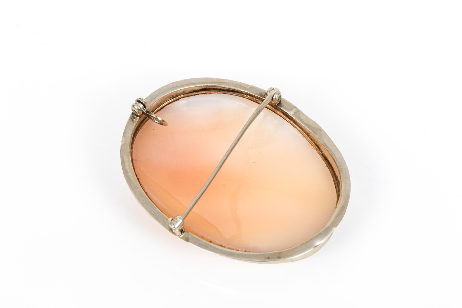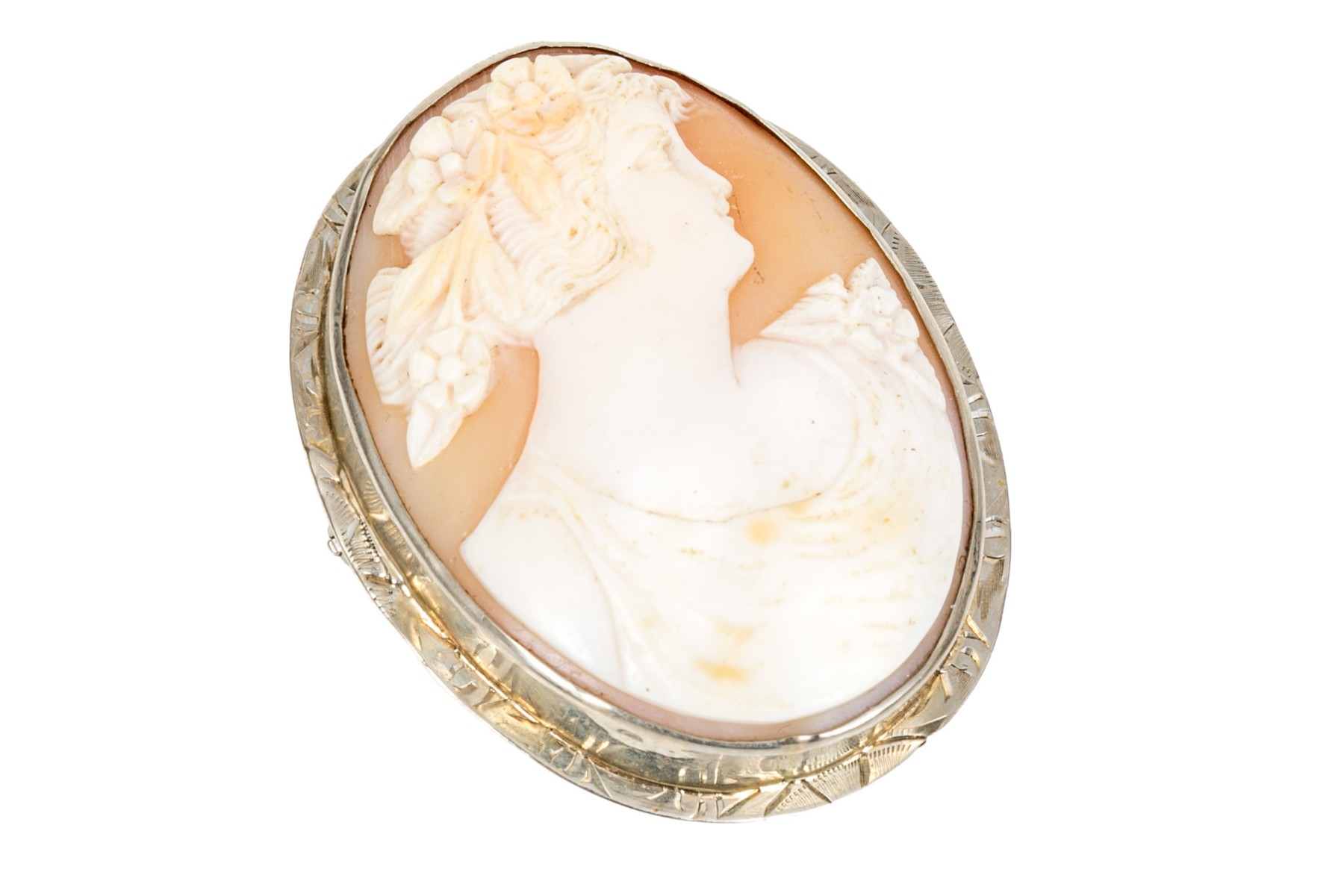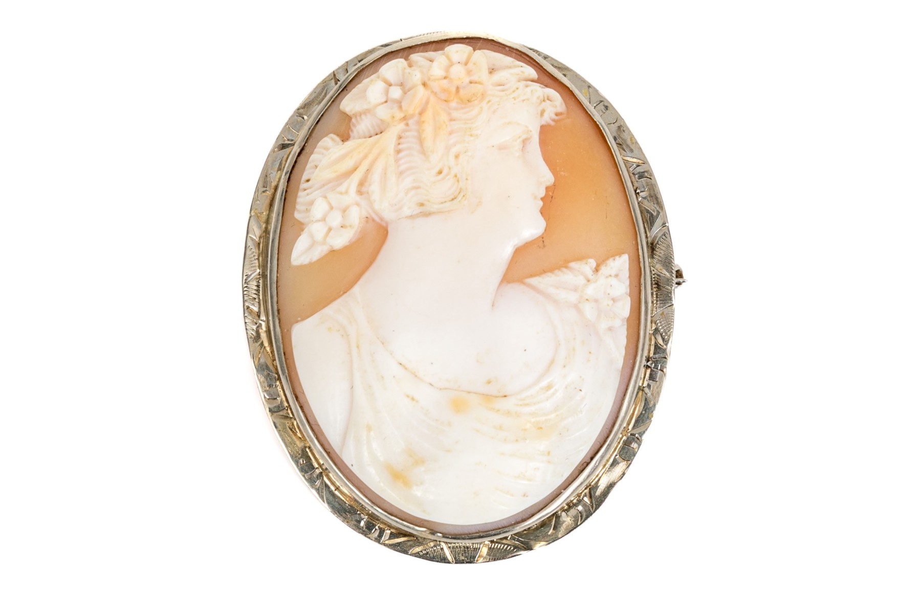 14k white gold chased frame cameo brooch/pendant