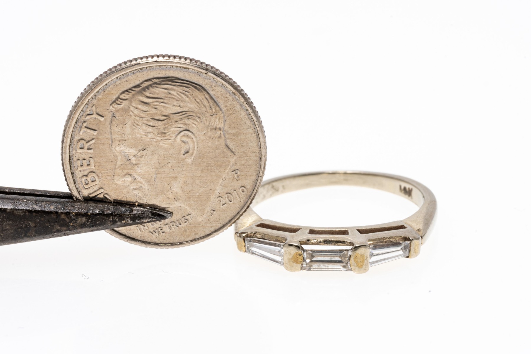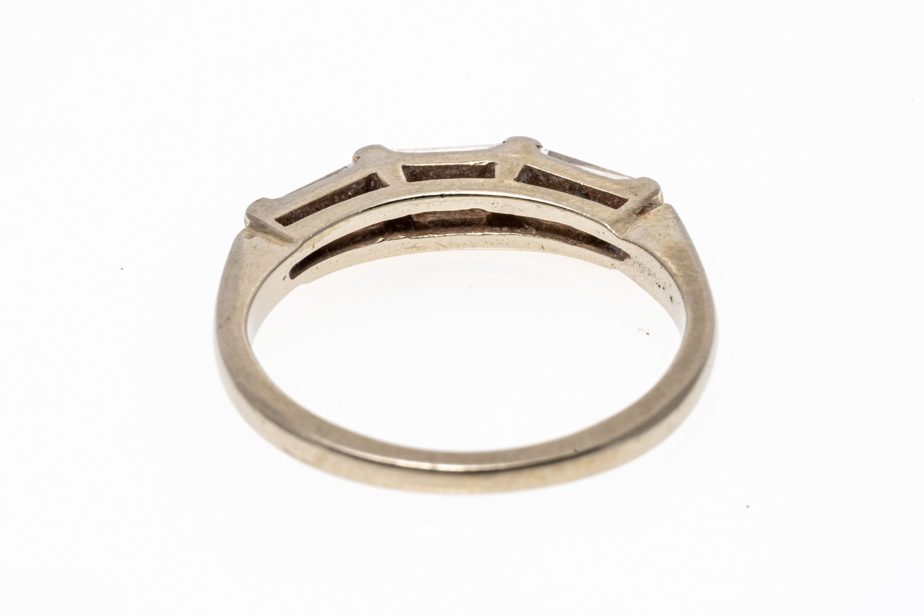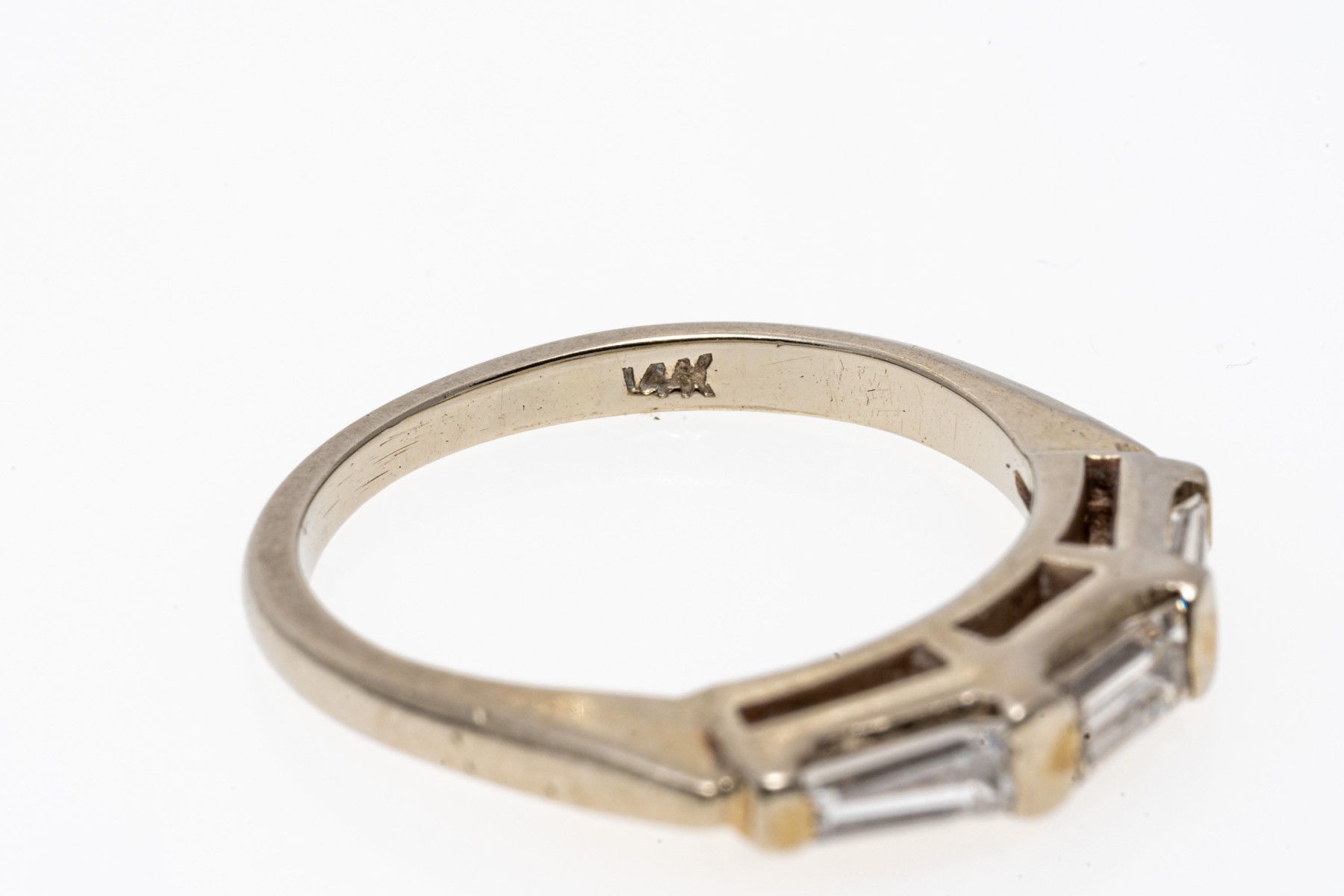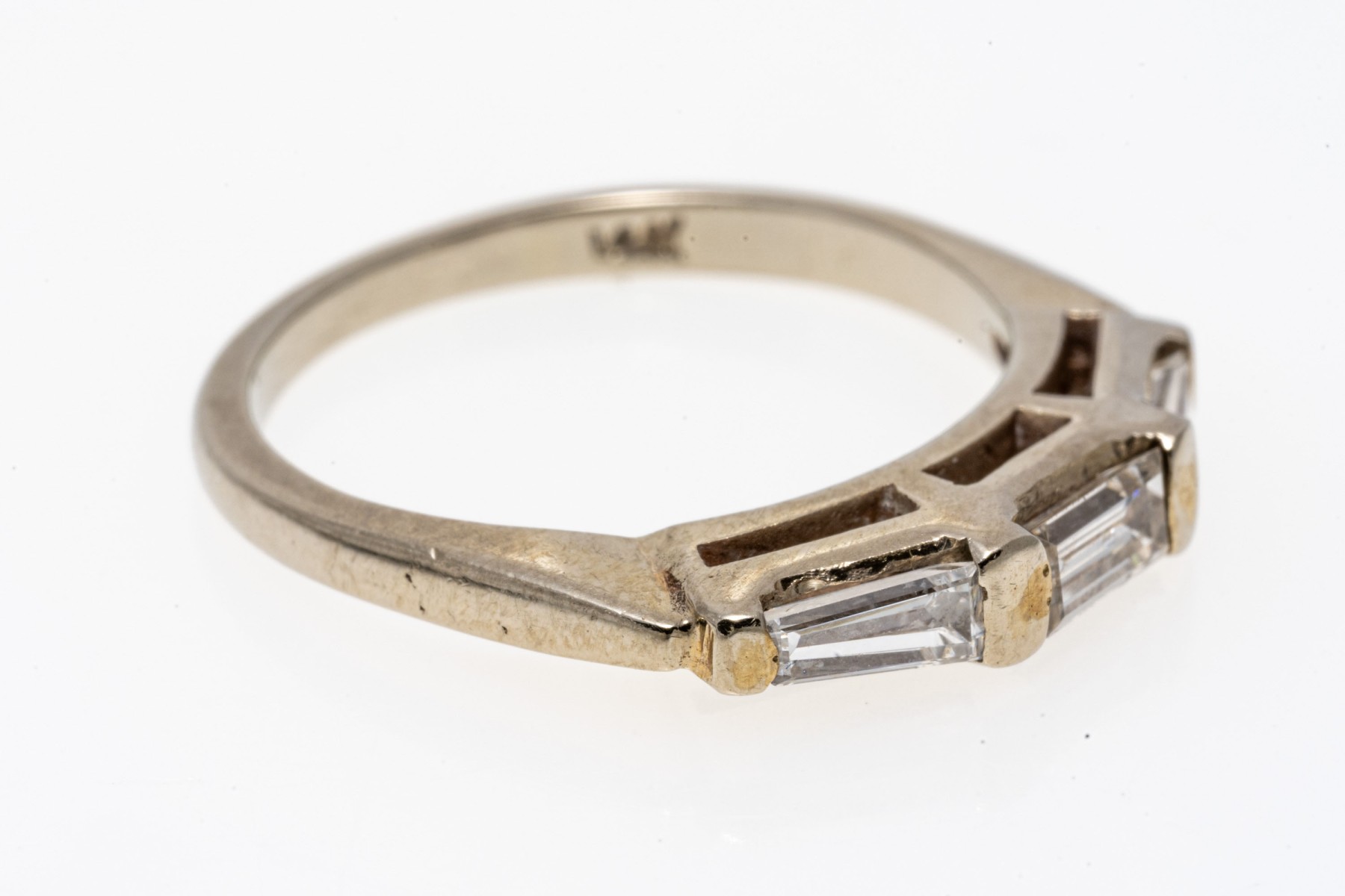14k white gold classic bar set baguette diamond band ring, app. 0.25 TCW, finished with high polished shoulders