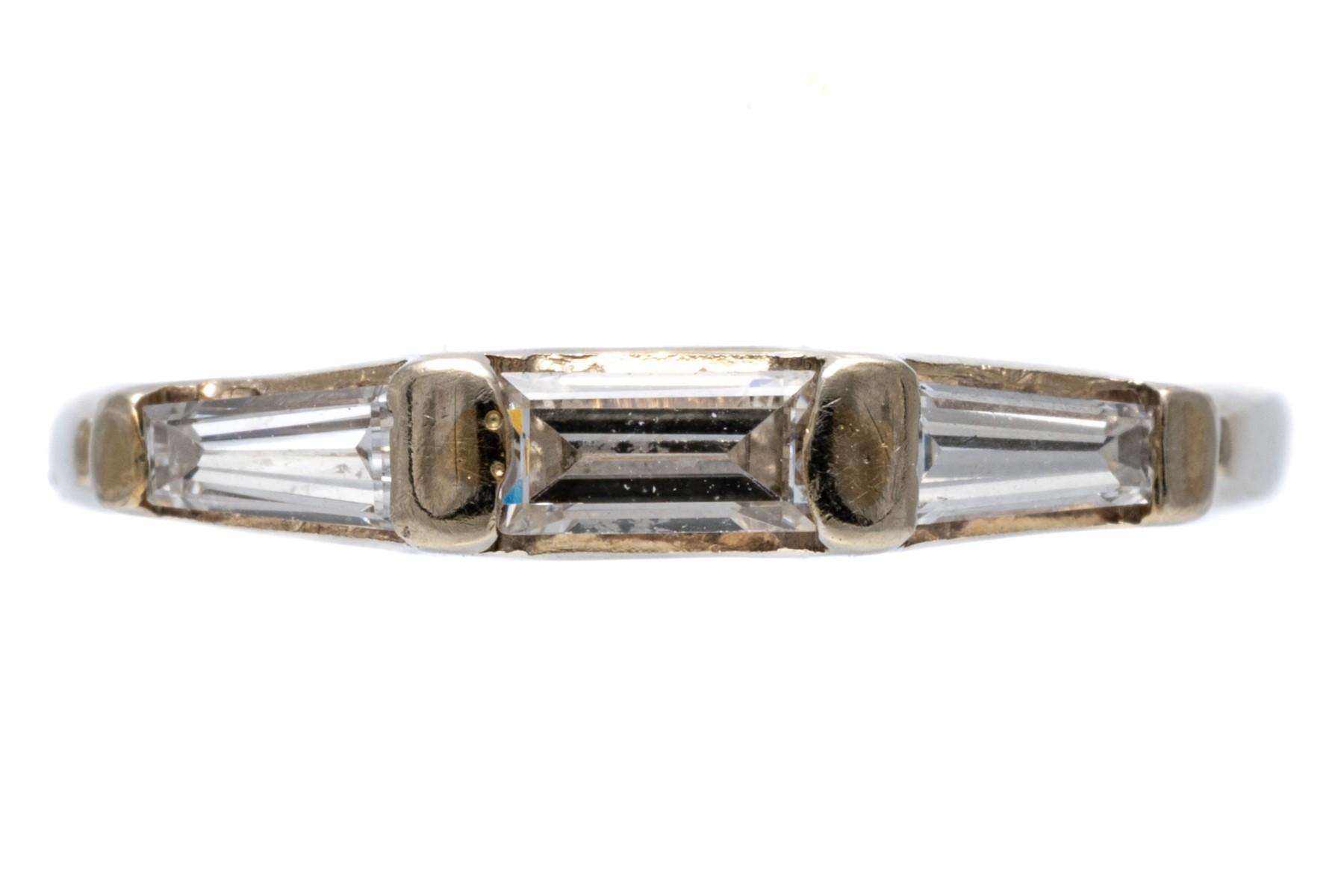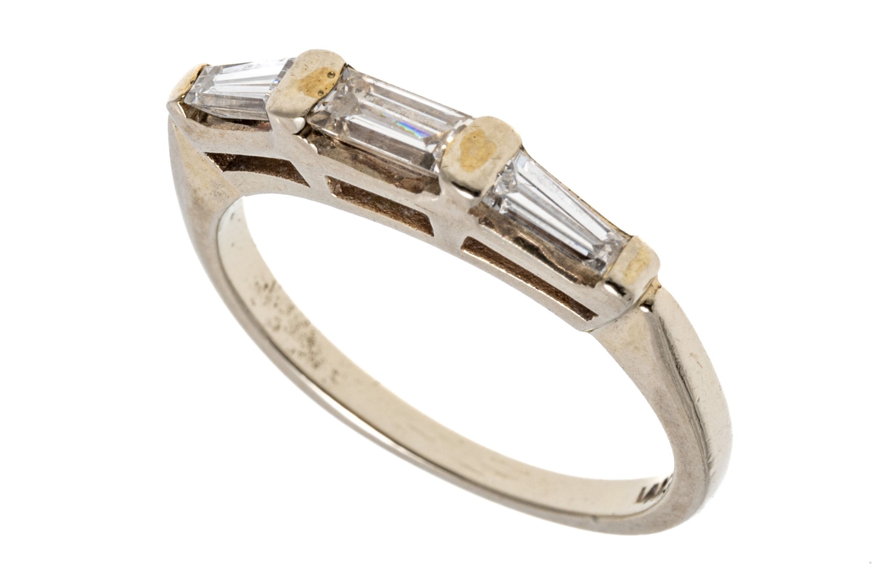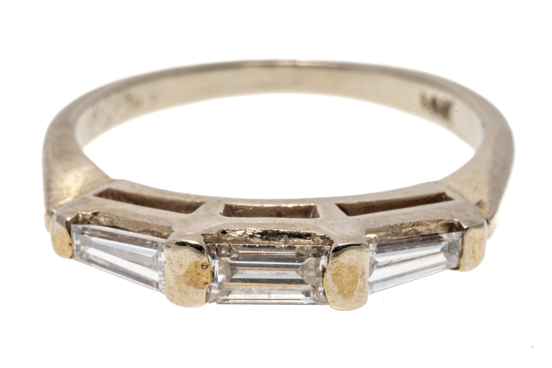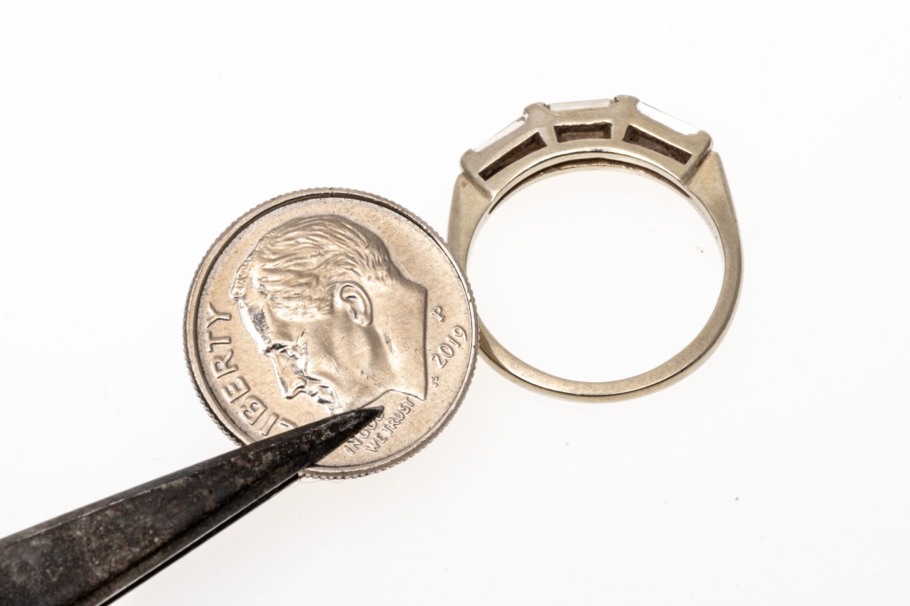 14k white gold classic bar set baguette diamond band ring, app. 0.25 TCW, finished with high polished shoulders