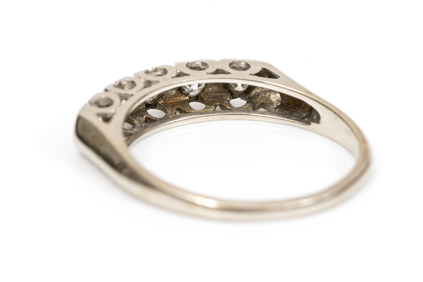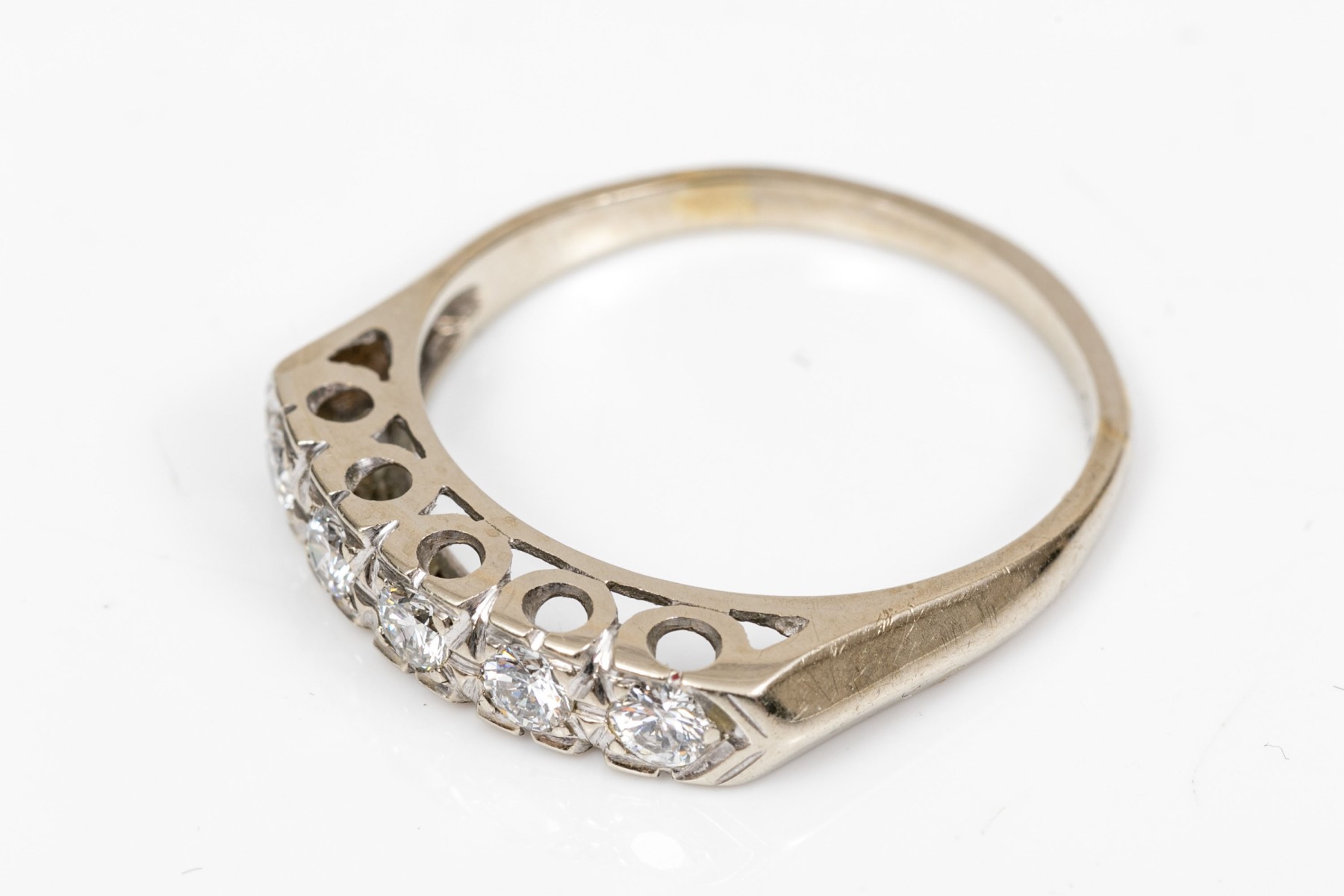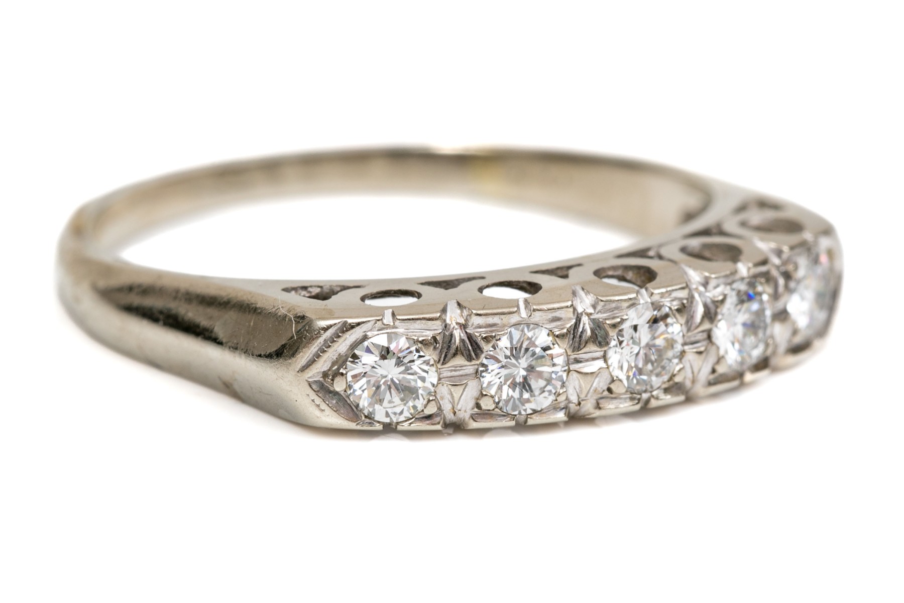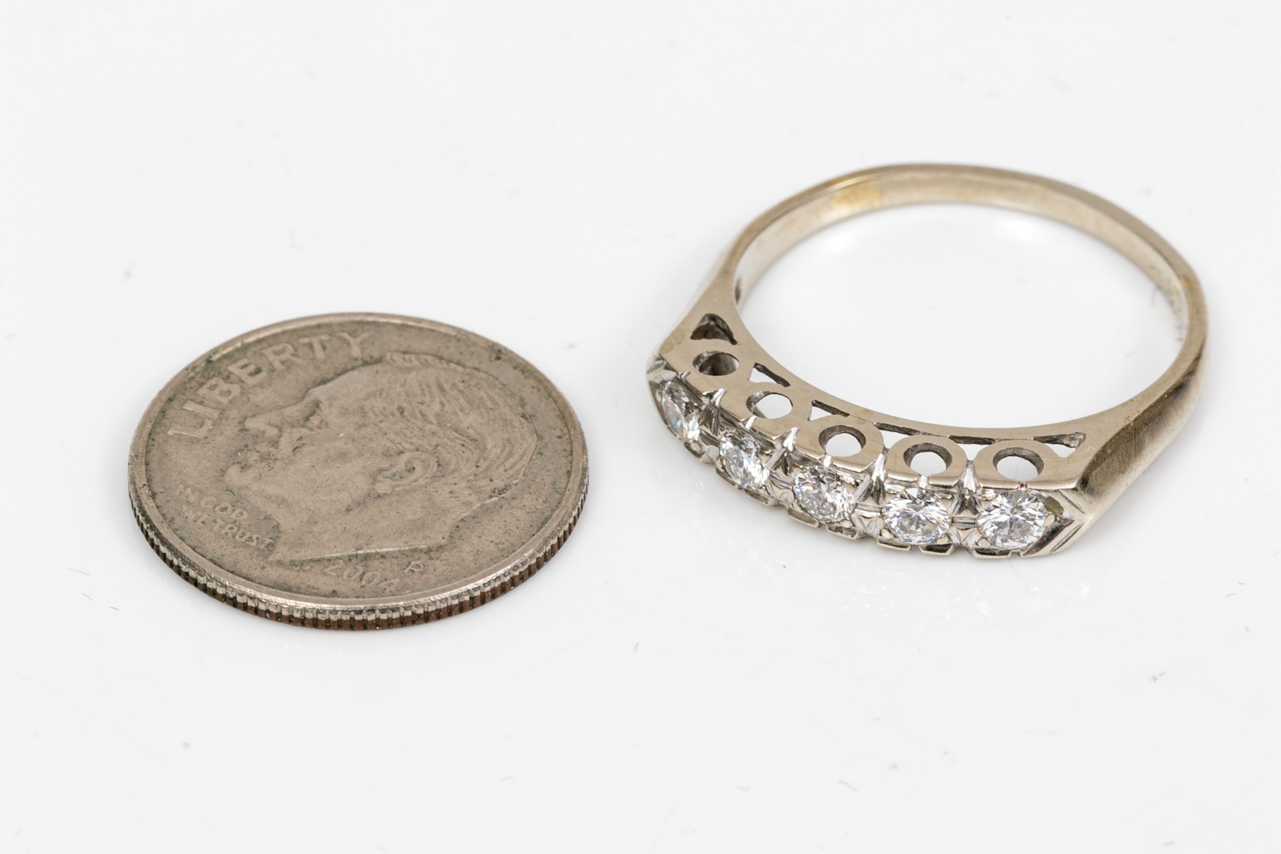 14k white gold classic five stone diamond band ring, app. 0.25 TCW, size 7.5, prong set
