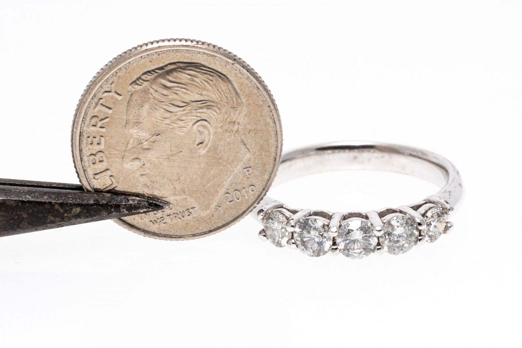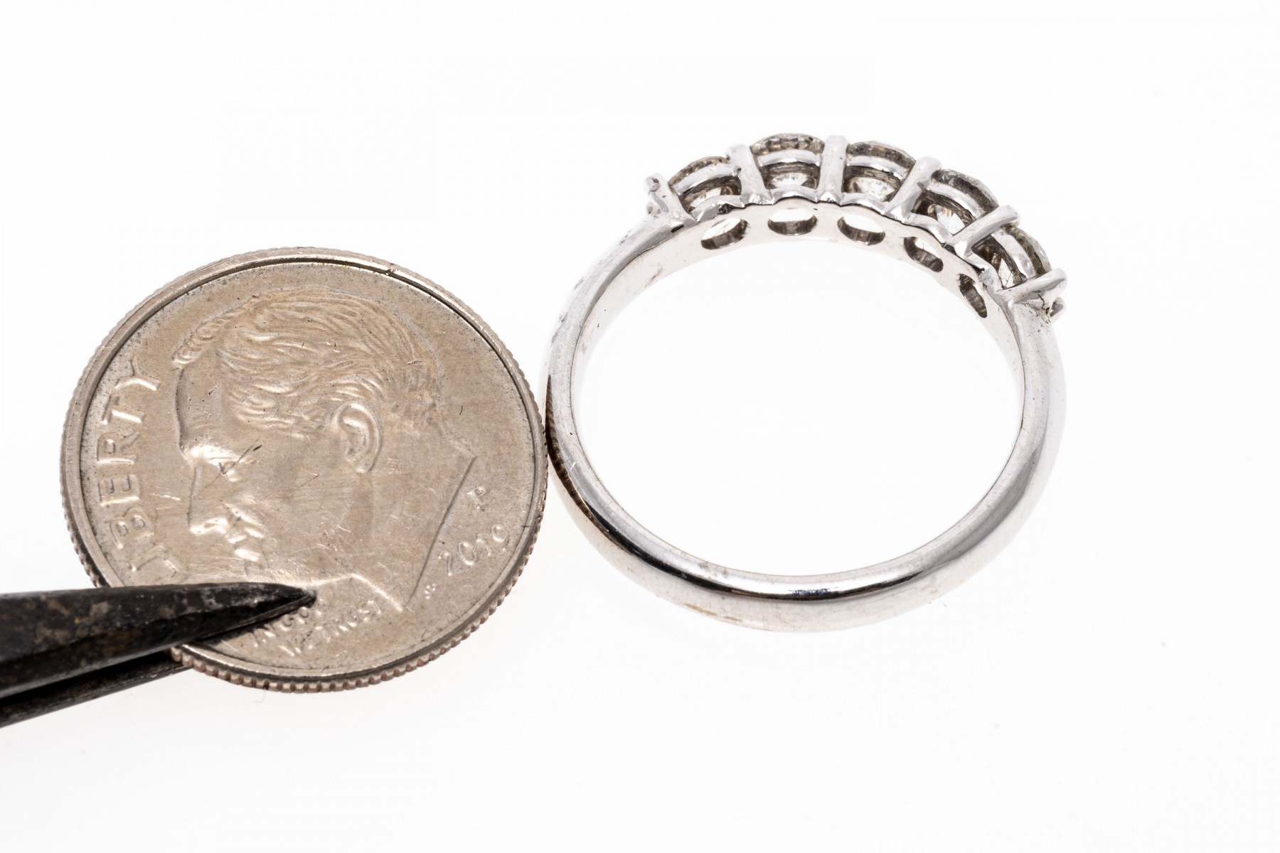 14k White Gold Classic Five Stone Diamond Band Ring, App. 0.80 TCW, Size 5.75 #237573. Black Rock Galleries provides high end estate liquidation services through online estate auctions and a 50,000 sq ft designer showroom. estate liquidator, estate sale, online auction, antiques, fine art, liquidation, clean outs, auction, consignment, interior design, fine jewelry, collectibles, appraisals, estate appraisals, estate services, decor, furniture, furniture consignment, antique center, consignment shop. We offer appraisal services and specialize in fine art, jewelry, antiques and decorative arts. Sell with us. Black Rock Galleries is the tri-state's largest estate liquidator serving New England and the greater New York City area. We are the trusted source for expert appraisals, auction services, estate sales, and consignments. Black Rock Galleries is the east coast's largest and most trusted estate liquidator, with locations in Connecticut, greater Boston, MA and Raleigh, NC, Fairfield, Southport, Apex, TX. We are the best source for expert appraisals, auction services, estate sales and consignments. We have served thousands of families and estates with compassion, professionalism and expertise. BRG works with attorneys, executors, realtors and families to bring the greatest return on personal and estate property in the current market. Our unique combination of services make us the easy choice to get the job done in a timely and stress-free manner. We are with you from the initial consultation to the final clean out. Our house-built online auction software platform offers clients a dynamic approach to liquidating their personal property. This venue is most successful in bringing the best return with the least amount of disruption for our clients. See our services page for a complete description of this offering. 14k White Gold Classic Five Stone Diamond Band Ring, App. 0.80 TCW, Size 5.75 #237573