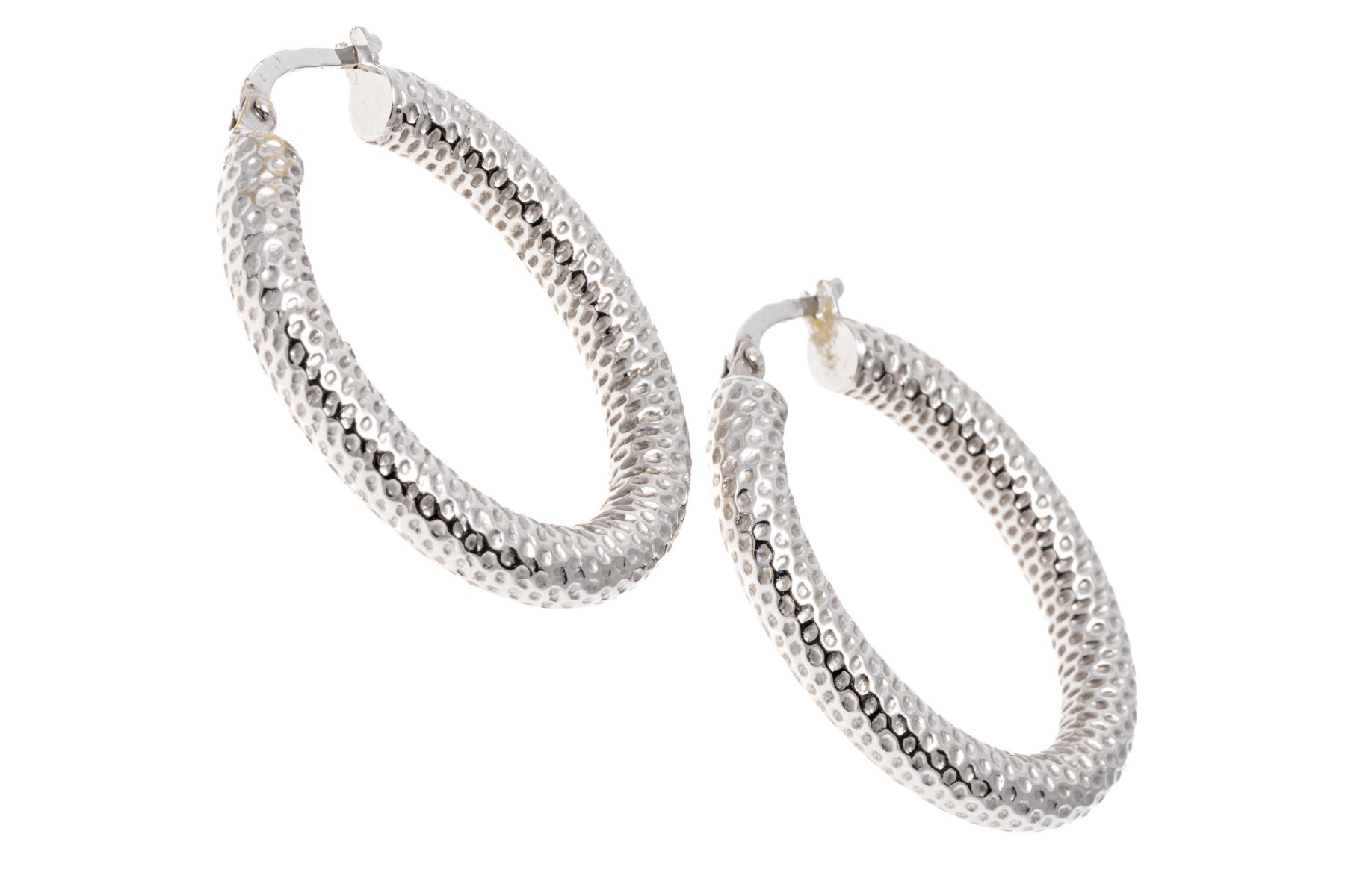 14K White Gold Dimpled Hoop Earrings #306430. Black Rock Galleries provides high end estate liquidation services through online estate auctions and a 50,000 sq ft designer showroom. estate liquidator, estate sale, online auction, antiques, fine art, liquidation, clean outs, auction, consignment, interior design, fine jewelry, collectibles, appraisals, estate appraisals, estate services, decor, furniture, furniture consignment, antique center, consignment shop. We offer appraisal services and specialize in fine art, jewelry, antiques and decorative arts. Sell with us. Black Rock Galleries is the tri-state's largest estate liquidator serving New England and the greater New York City area. We are the trusted source for expert appraisals, auction services, estate sales, and consignments. Black Rock Galleries is the east coast's largest and most trusted estate liquidator, with locations in Connecticut, greater Boston, MA and Raleigh, NC, Fairfield, Southport, Apex, TX. We are the best source for expert appraisals, auction services, estate sales and consignments. We have served thousands of families and estates with compassion, professionalism and expertise. BRG works with attorneys, executors, realtors and families to bring the greatest return on personal and estate property in the current market. Our unique combination of services make us the easy choice to get the job done in a timely and stress-free manner. We are with you from the initial consultation to the final clean out. Our house-built online auction software platform offers clients a dynamic approach to liquidating their personal property. This venue is most successful in bringing the best return with the least amount of disruption for our clients. See our services page for a complete description of this offering. 14K White Gold Dimpled Hoop Earrings #306430
