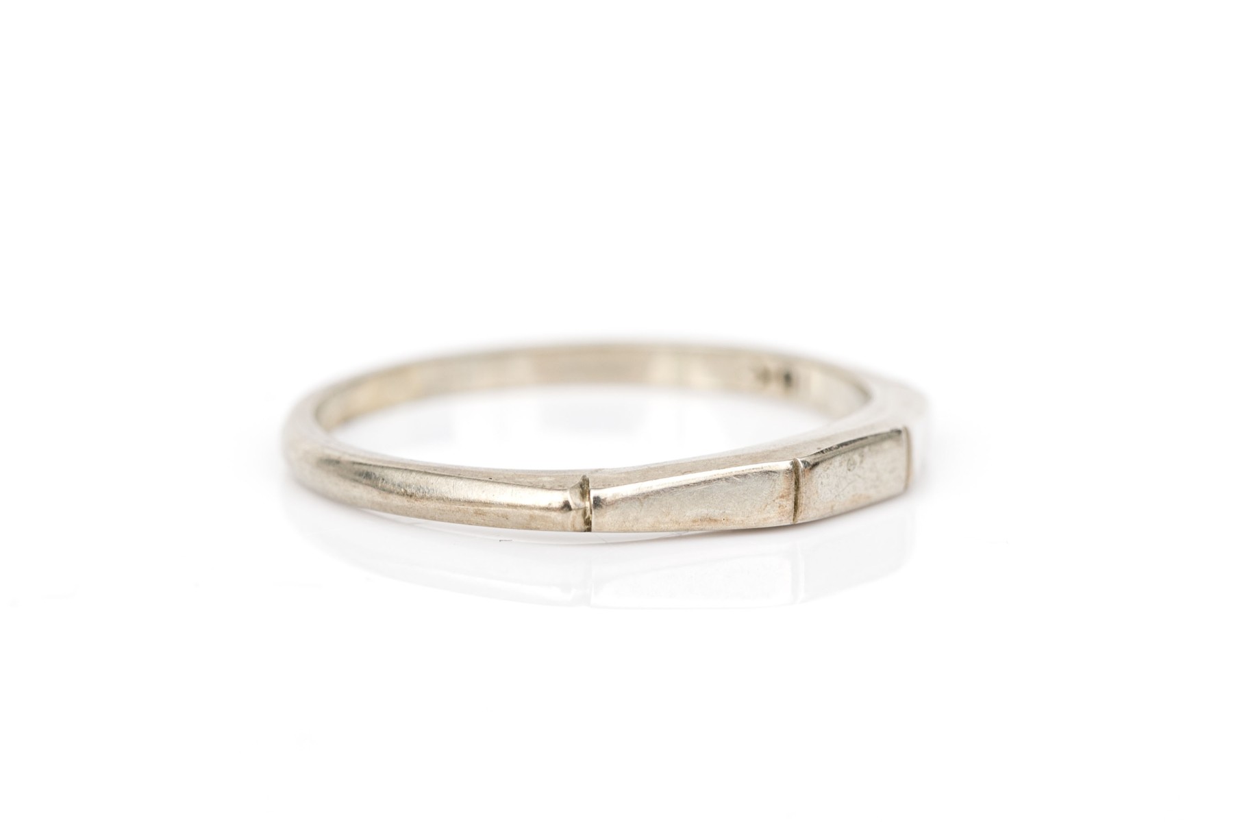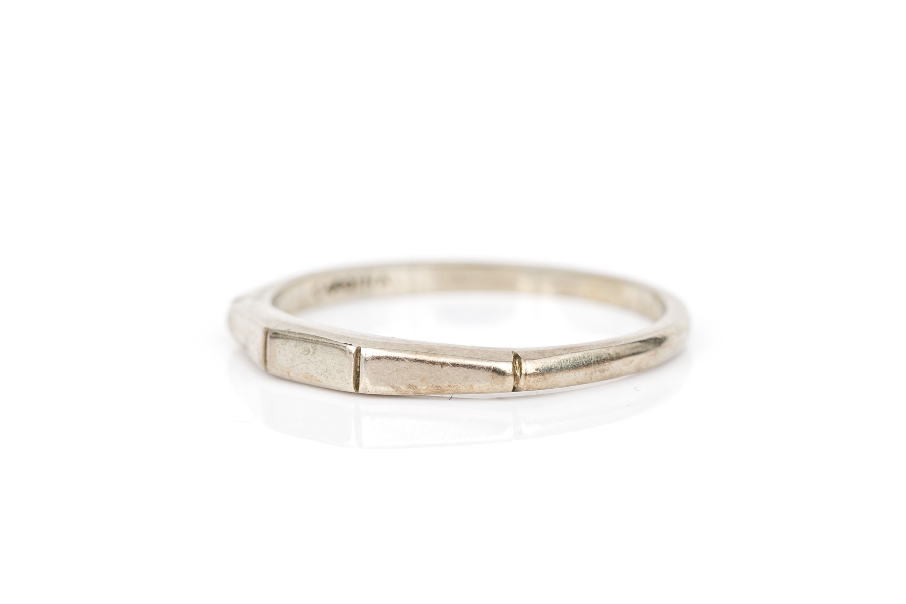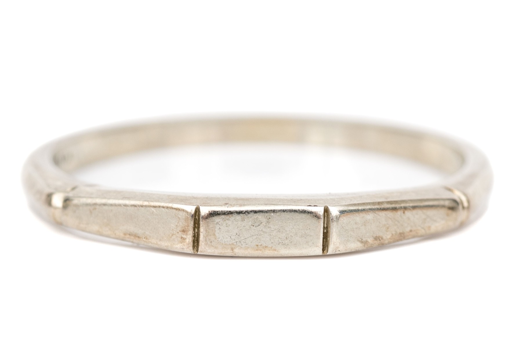 14k white gold faceted band ring, size 5.75+