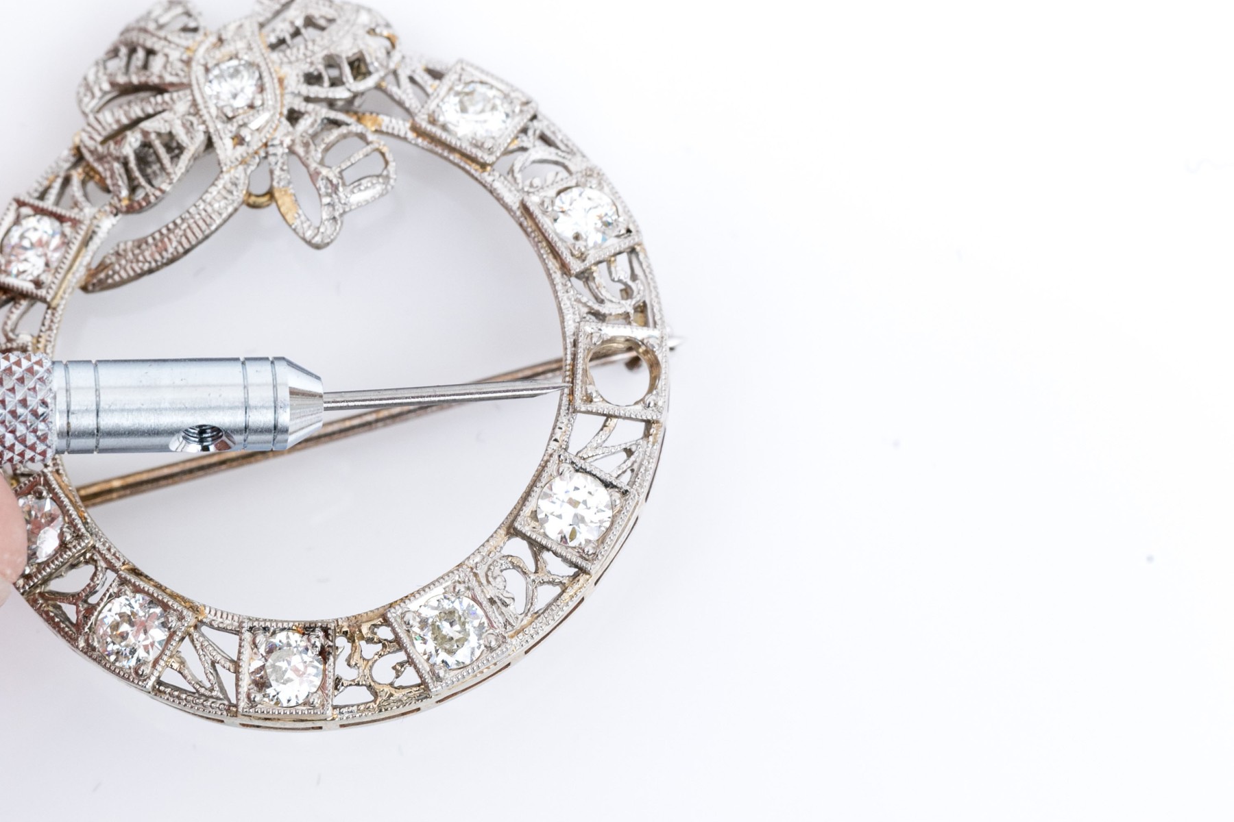 14K White Gold Filigree And Diamond Circle Brooch #307542. Black Rock Galleries provides high end estate liquidation services through online estate auctions and a 50,000 sq ft designer showroom. estate liquidator, estate sale, online auction, antiques, fine art, liquidation, clean outs, auction, consignment, interior design, fine jewelry, collectibles, appraisals, estate appraisals, estate services, decor, furniture, furniture consignment, antique center, consignment shop. We offer appraisal services and specialize in fine art, jewelry, antiques and decorative arts. Sell with us. Black Rock Galleries is the tri-state's largest estate liquidator serving New England and the greater New York City area. We are the trusted source for expert appraisals, auction services, estate sales, and consignments. Black Rock Galleries is the east coast's largest and most trusted estate liquidator, with locations in Connecticut, greater Boston, MA and Raleigh, NC, Fairfield, Southport, Apex, TX. We are the best source for expert appraisals, auction services, estate sales and consignments. We have served thousands of families and estates with compassion, professionalism and expertise. BRG works with attorneys, executors, realtors and families to bring the greatest return on personal and estate property in the current market. Our unique combination of services make us the easy choice to get the job done in a timely and stress-free manner. We are with you from the initial consultation to the final clean out. Our house-built online auction software platform offers clients a dynamic approach to liquidating their personal property. This venue is most successful in bringing the best return with the least amount of disruption for our clients. See our services page for a complete description of this offering. 14K White Gold Filigree And Diamond Circle Brooch #307542