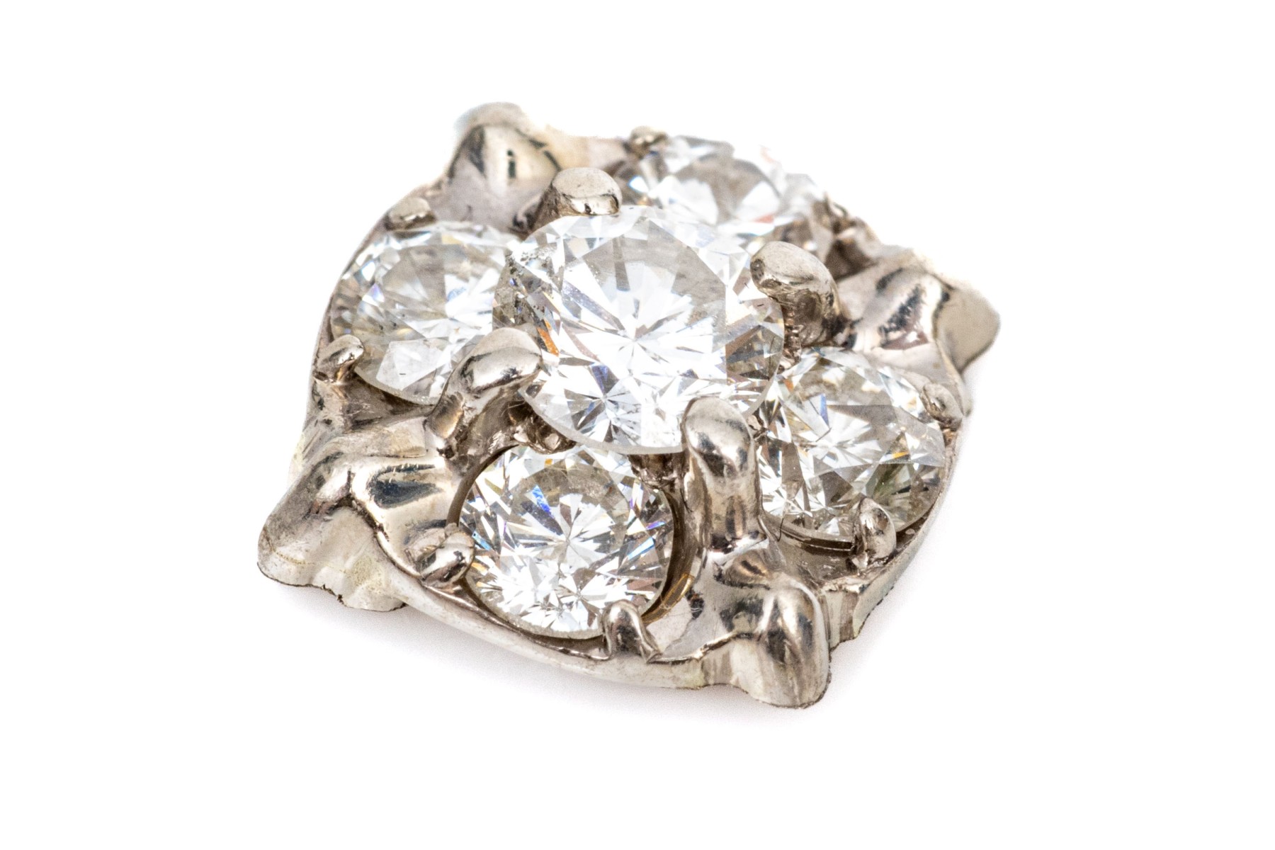 14k white gold five stone diamond cluster component, app. 1.12 TCW, unfinished