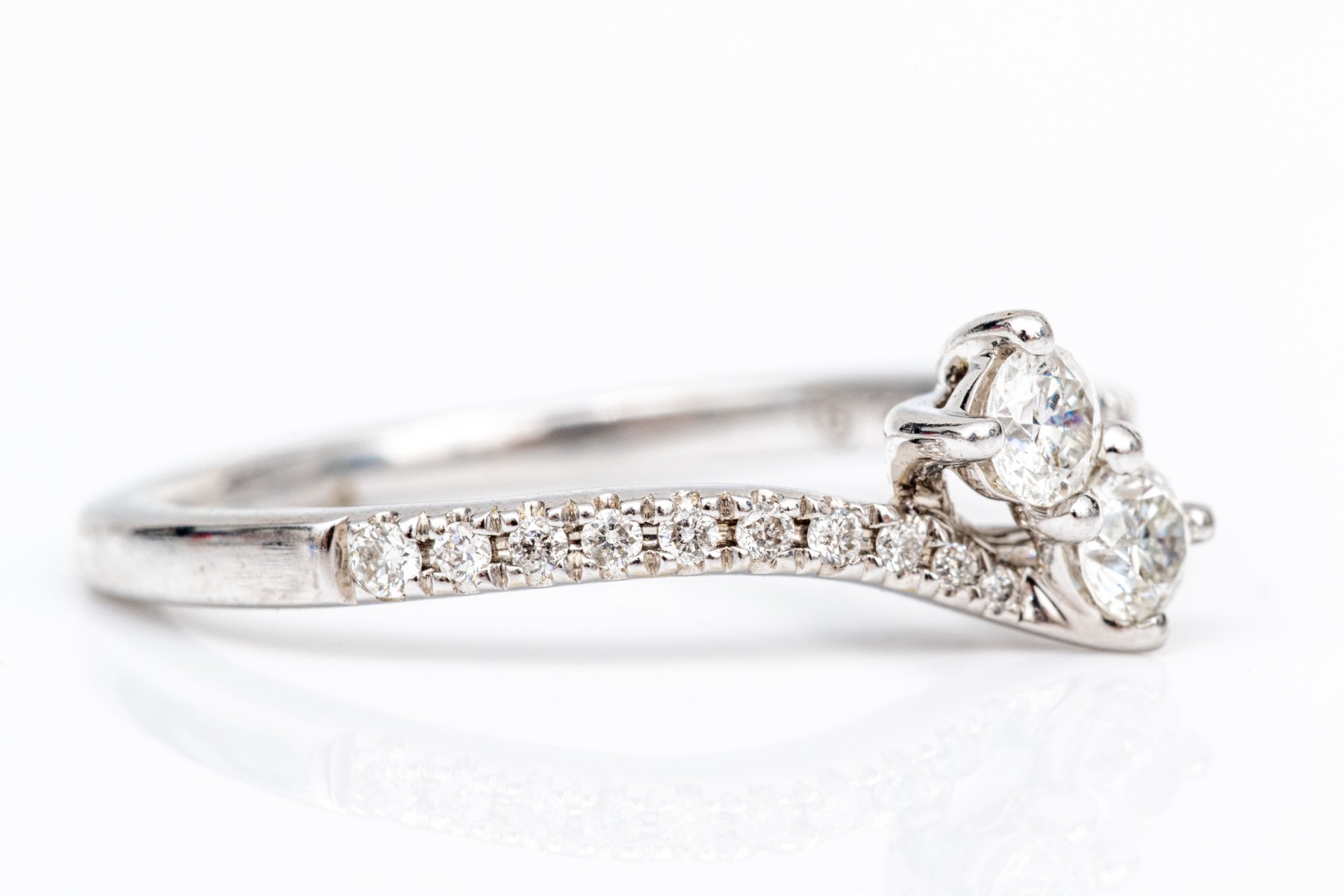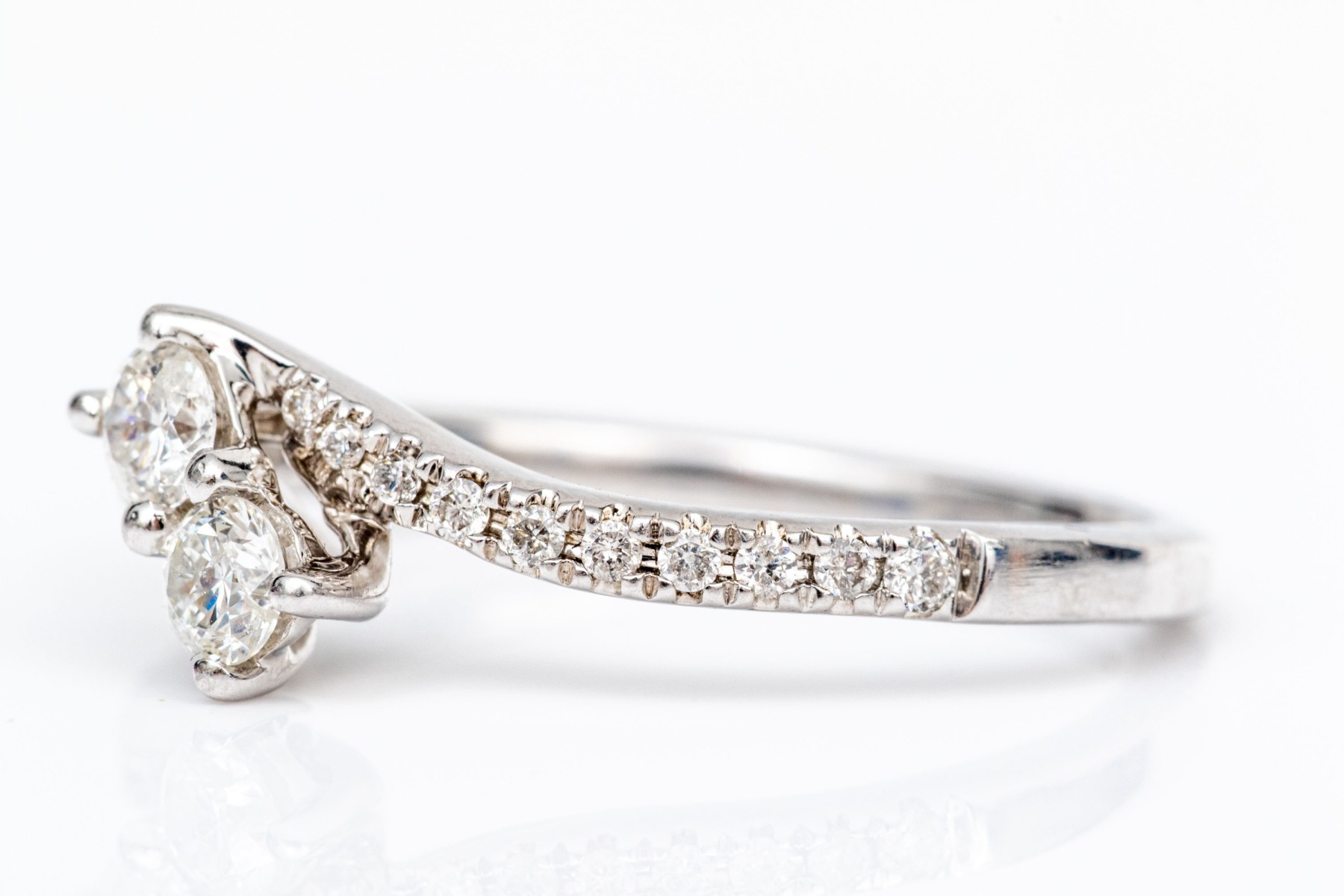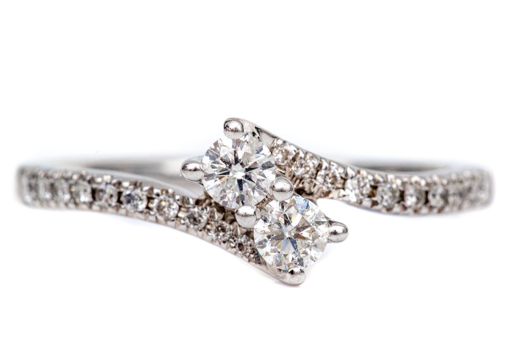 14k white gold lovely diamond set bypass ring, app. 0.42 TCW, size 8.25